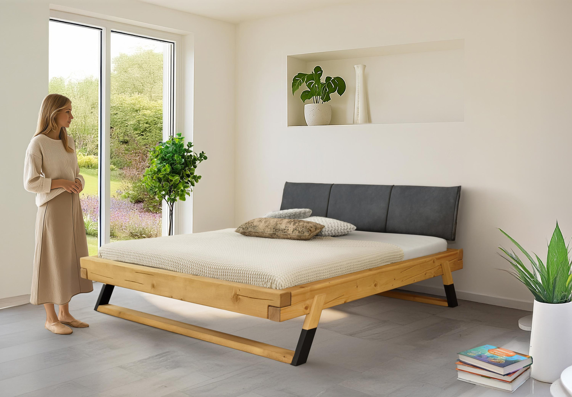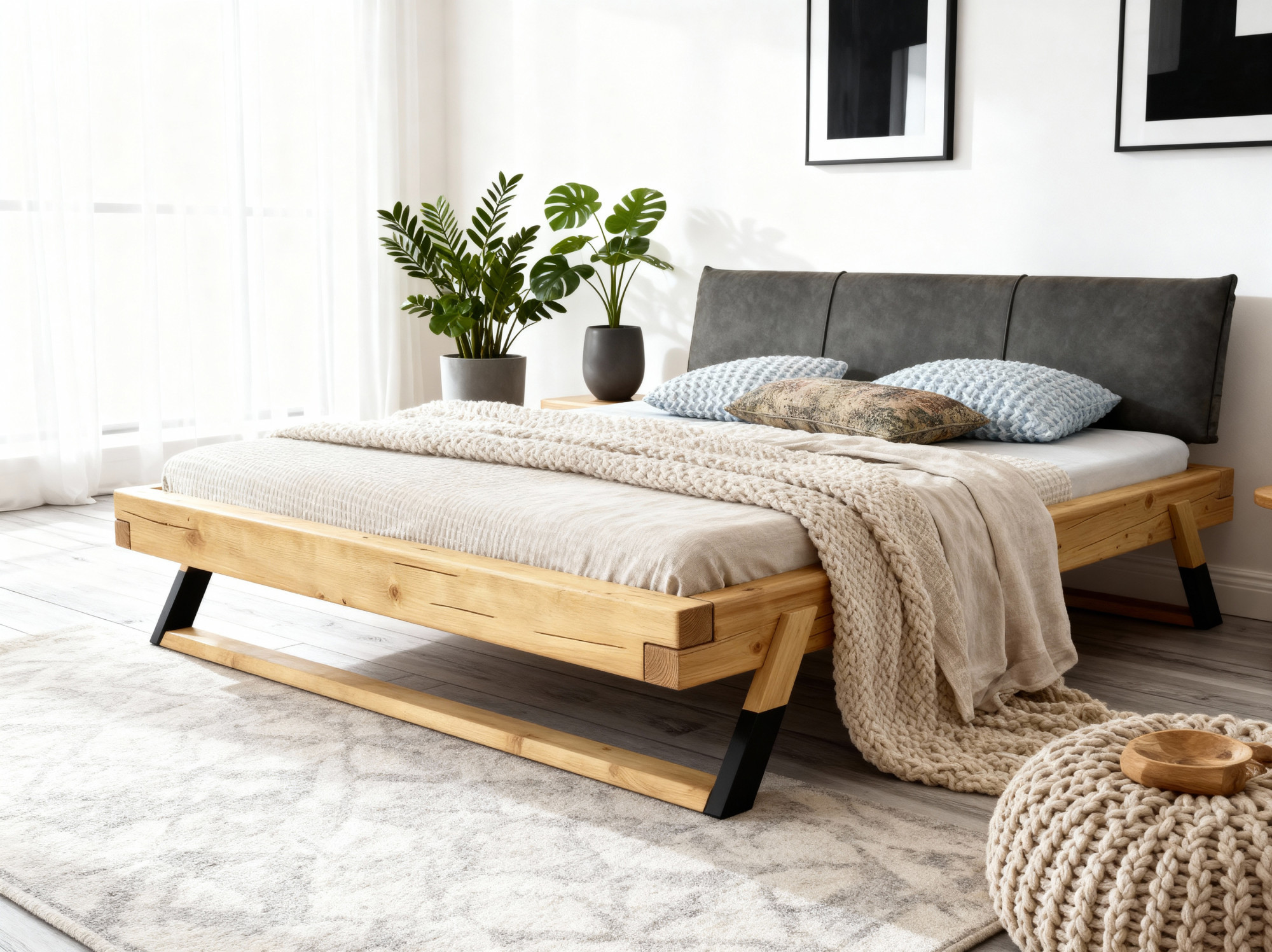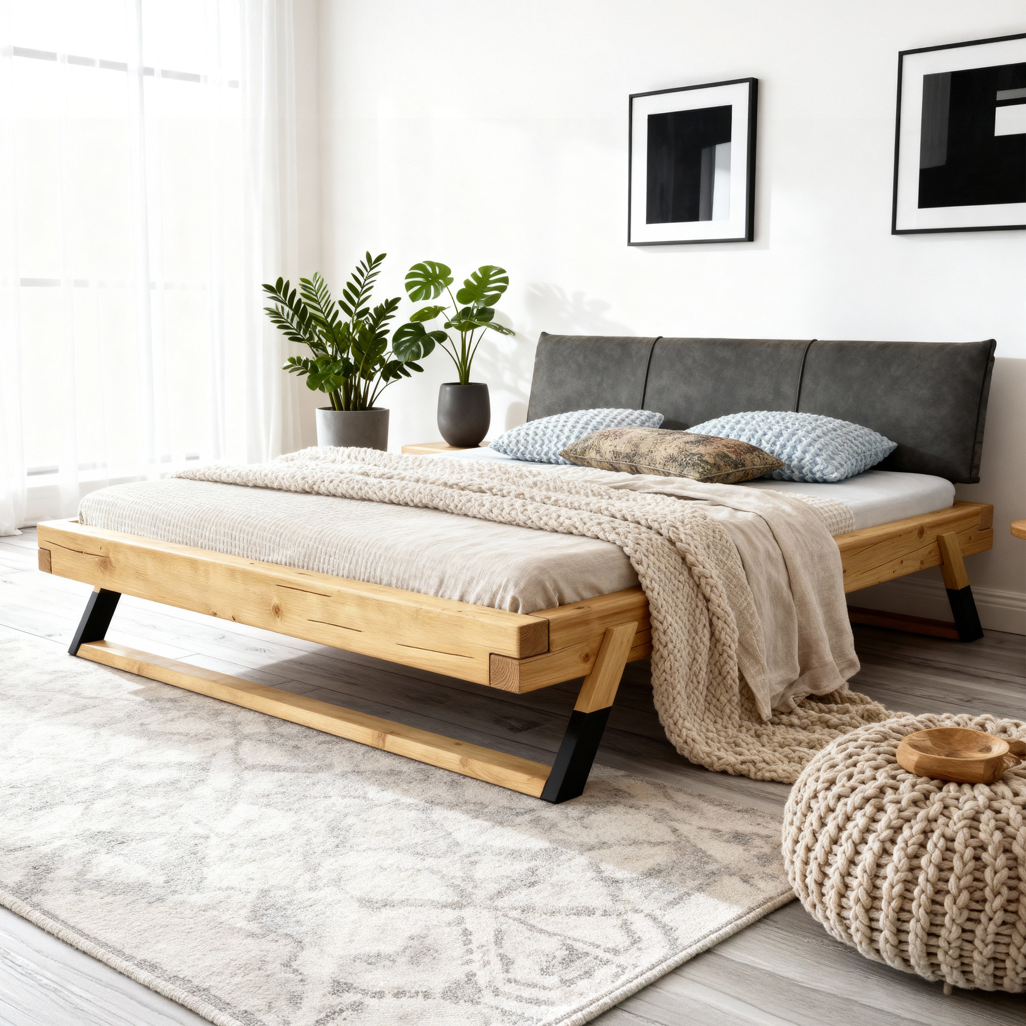 Ja, dank des neutralen industriellen Designs und des natürlichen Holzes lässt sich das Bett leicht mit verschiedenen Möbeltypen kombinieren. - Ist der Lattenrost im Preis des Bettes enthalten?