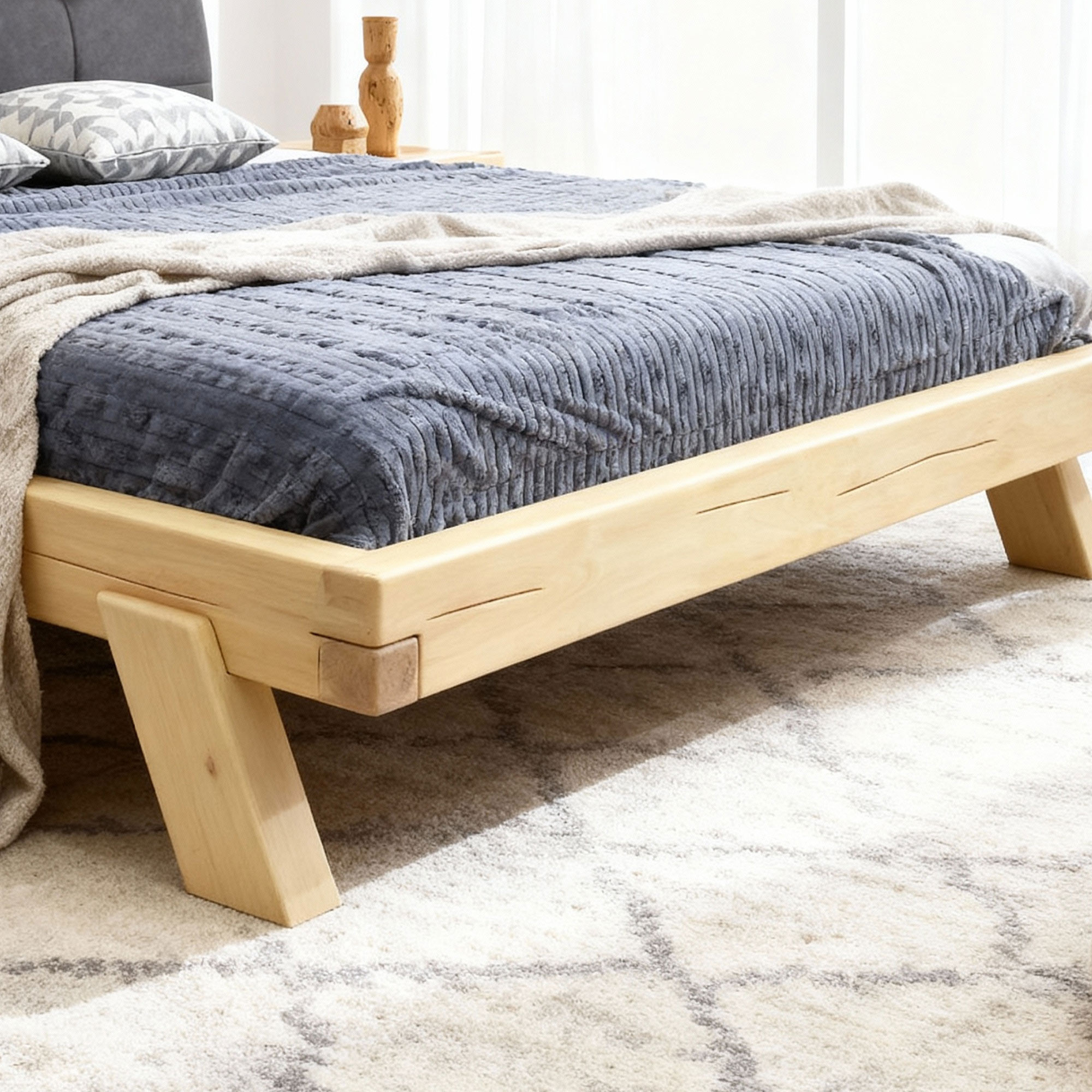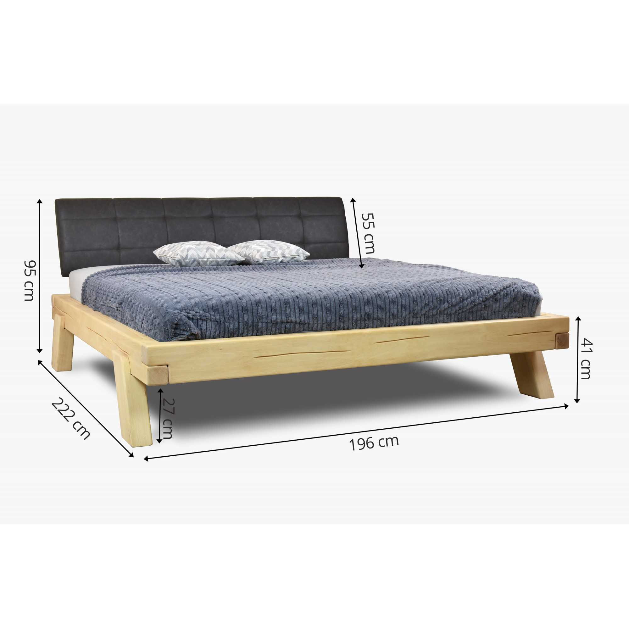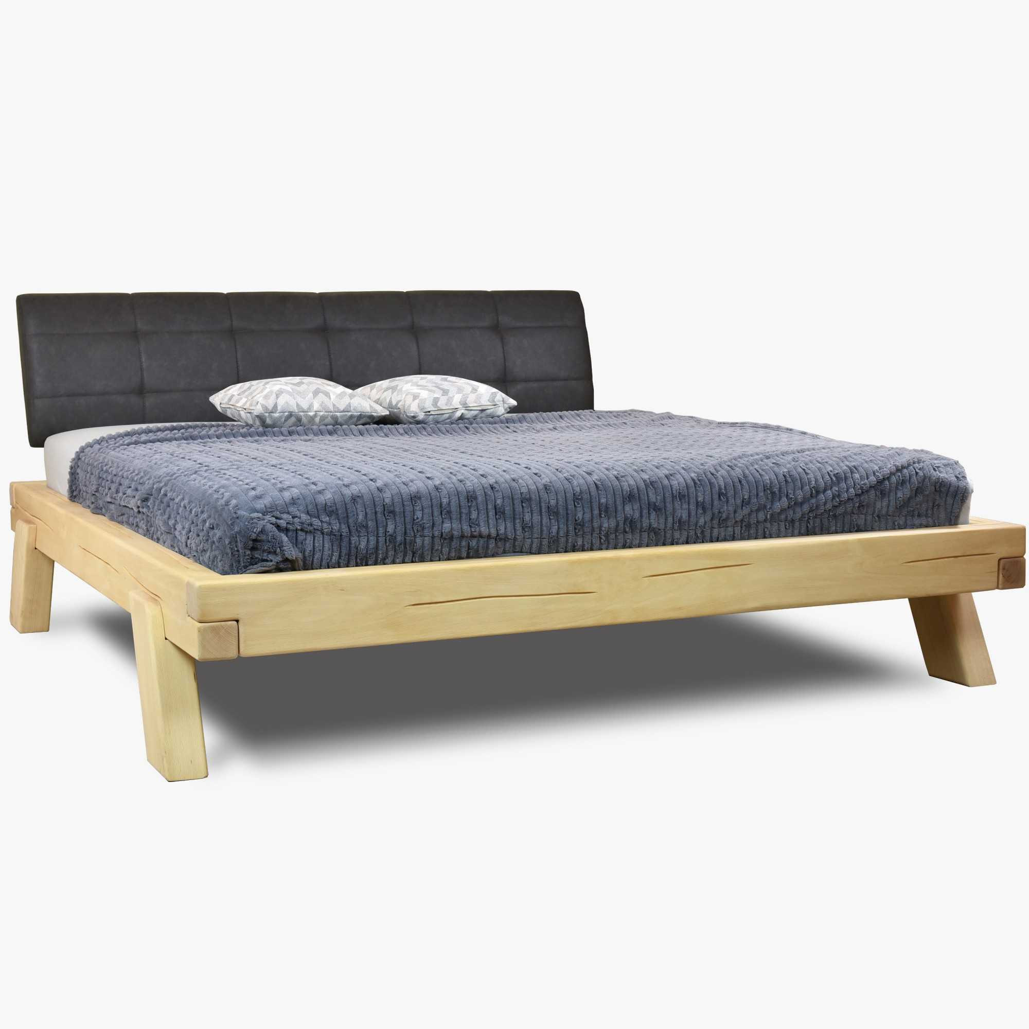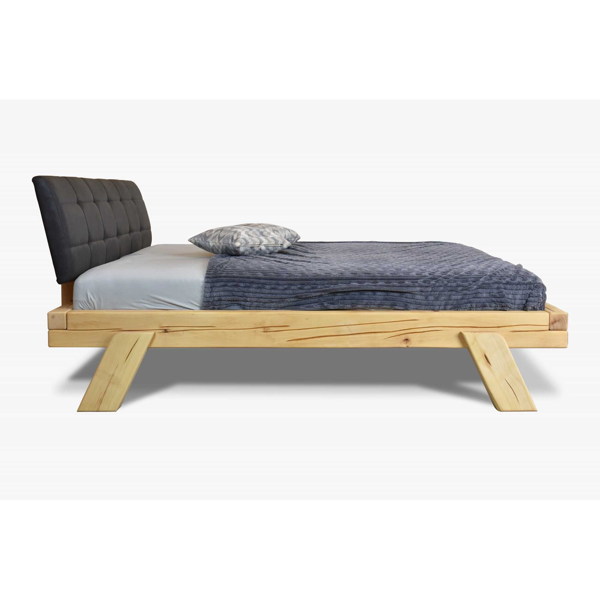 Die Konstruktion besteht aus stabilen Buchenbalken mit natürlichen und künstlich ergänzten Rissen, was dem Bett ein besonders authentisches Erscheinungsbild verleiht. Die Oberfläche ist mit umweltfreundlichem Naturöl behandelt. Das Bett wird zerlegt geliefert und kann dank einfacher Montage schnell aufgebaut werden. In den Bettrahmen lässt sich jeder beliebige Lattenrost (Lattenrost nicht im Preis enthalten) problemlos einsetzen. Die abgerundeten Füße sorgen für ein luftiges, modernes Design.