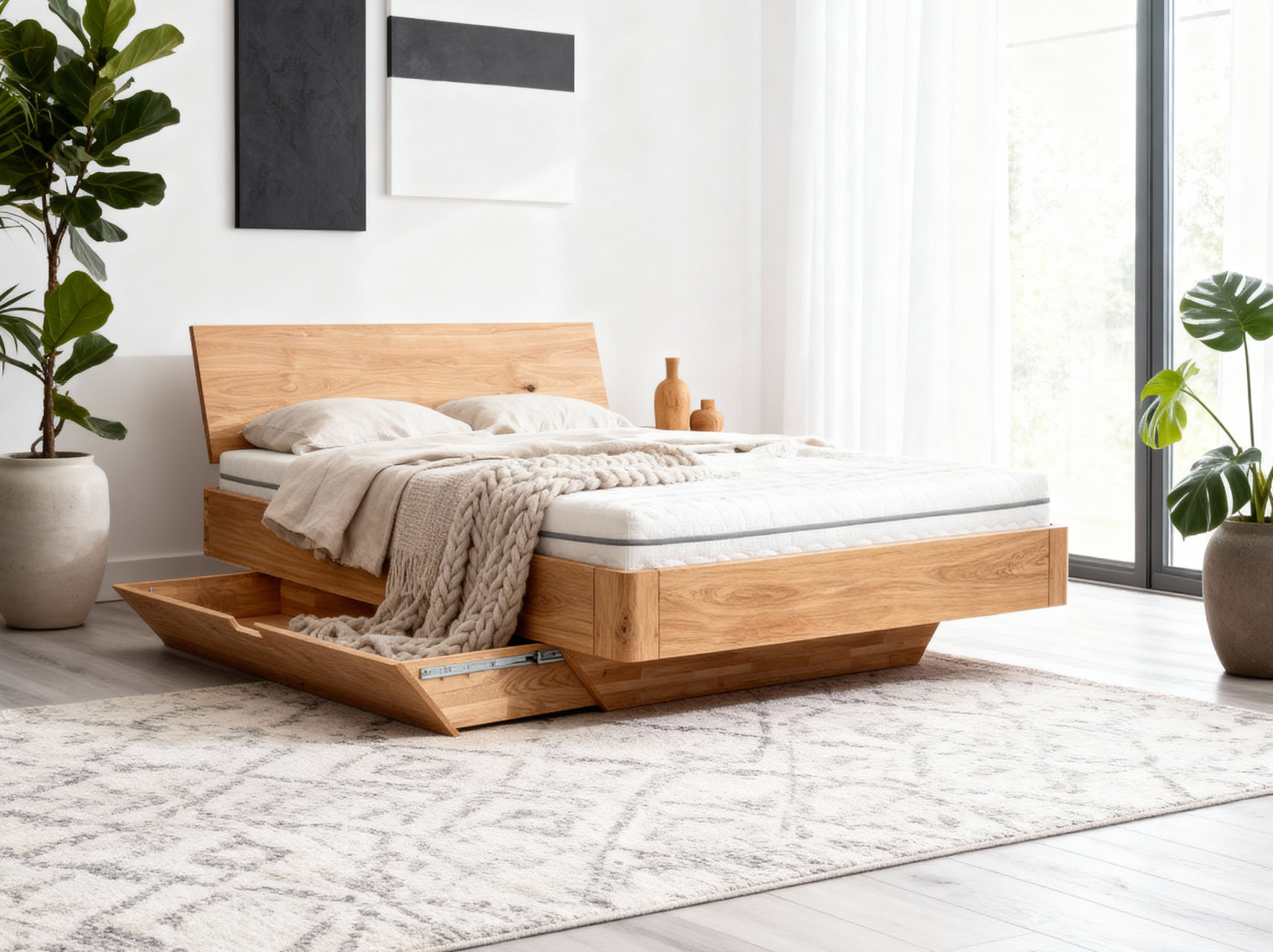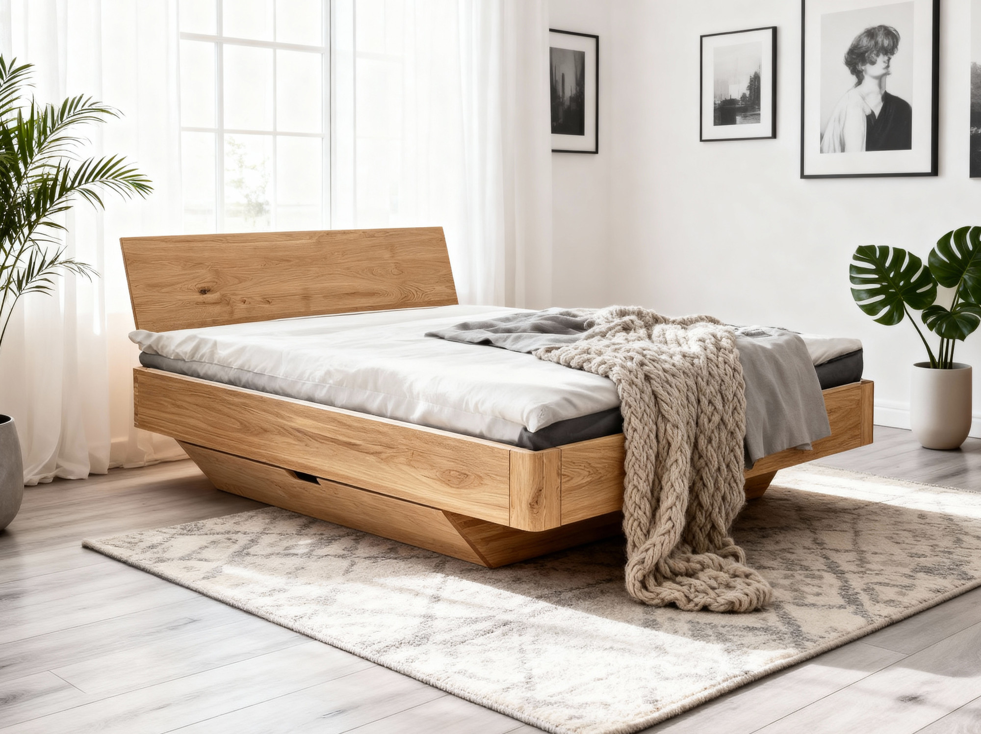 Eichenbett mit Stauraum Modell Bar 180 x 200 cm
