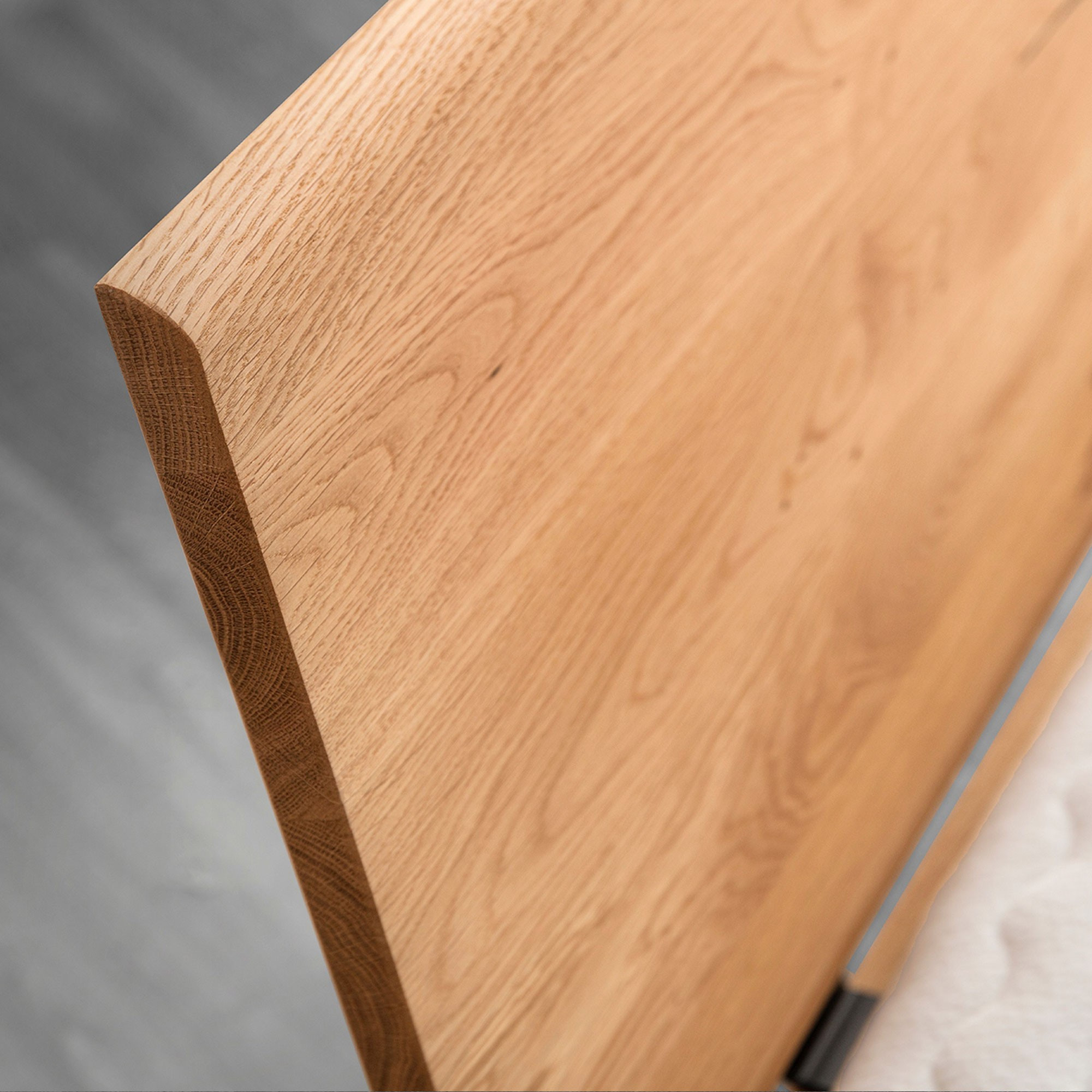 Mit seiner ergonomischen Neigung bietet es Ihrem Körper ausreichend Komfort, sodass Sie Ihren abendlichen Relaxmoment voll genießen können. Das Kopfteil ist mit Metallhalterungen am Bett befestigt, was seine Festigkeit und den Widerstand gegen Druck vervielfacht. Das Bett Bar aus Massivholz wird das Highlight und zugleich ein Kunstwerk Ihres Schlafzimmers sein. Es ist aus hochwertigem Eichenmassiv gefertigt, das auf der sichtbaren Seite mit Eichenfurnier versehen ist, was hohe Festigkeit und gleichzeitig eine perfekte einheitliche Optik garantiert. Das Bett liefern wir ohne Lattenrost, aber gegen Aufpreis können Sie bei uns einen hochwertigen Lattenrost aus unserem Angebot nachbestellen.