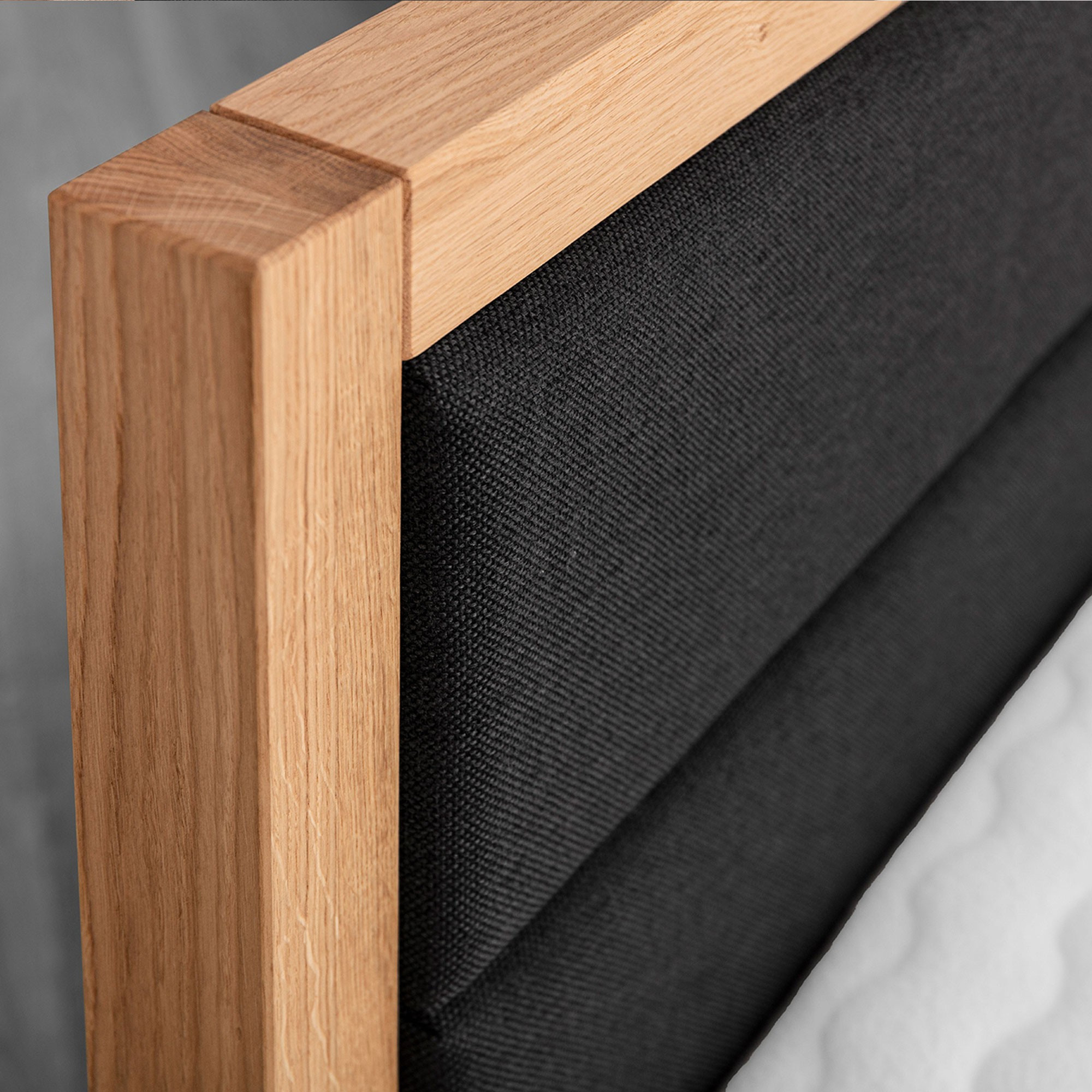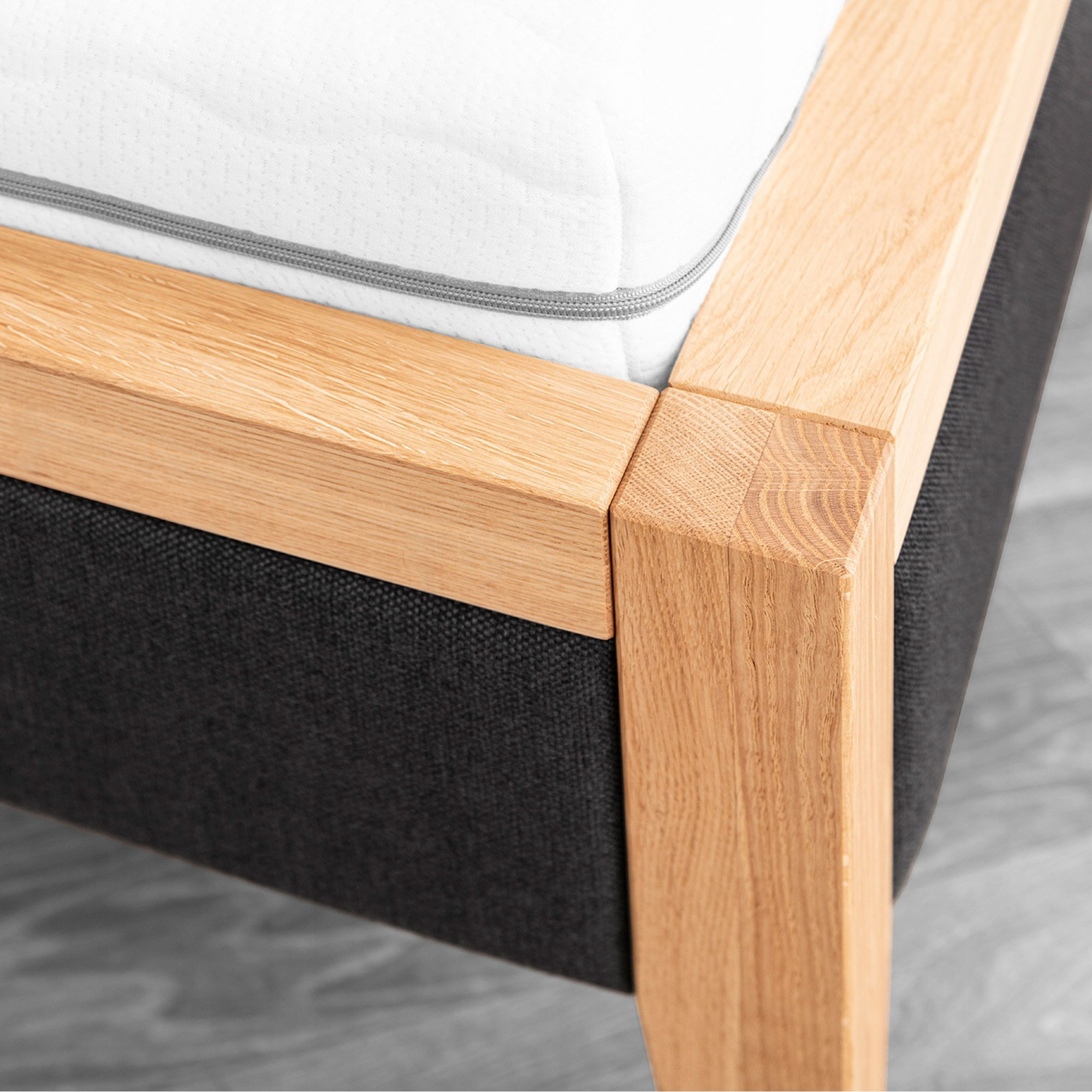 Postbett Eichenholz mit Stoffbezug 180x200 cm robust elegant