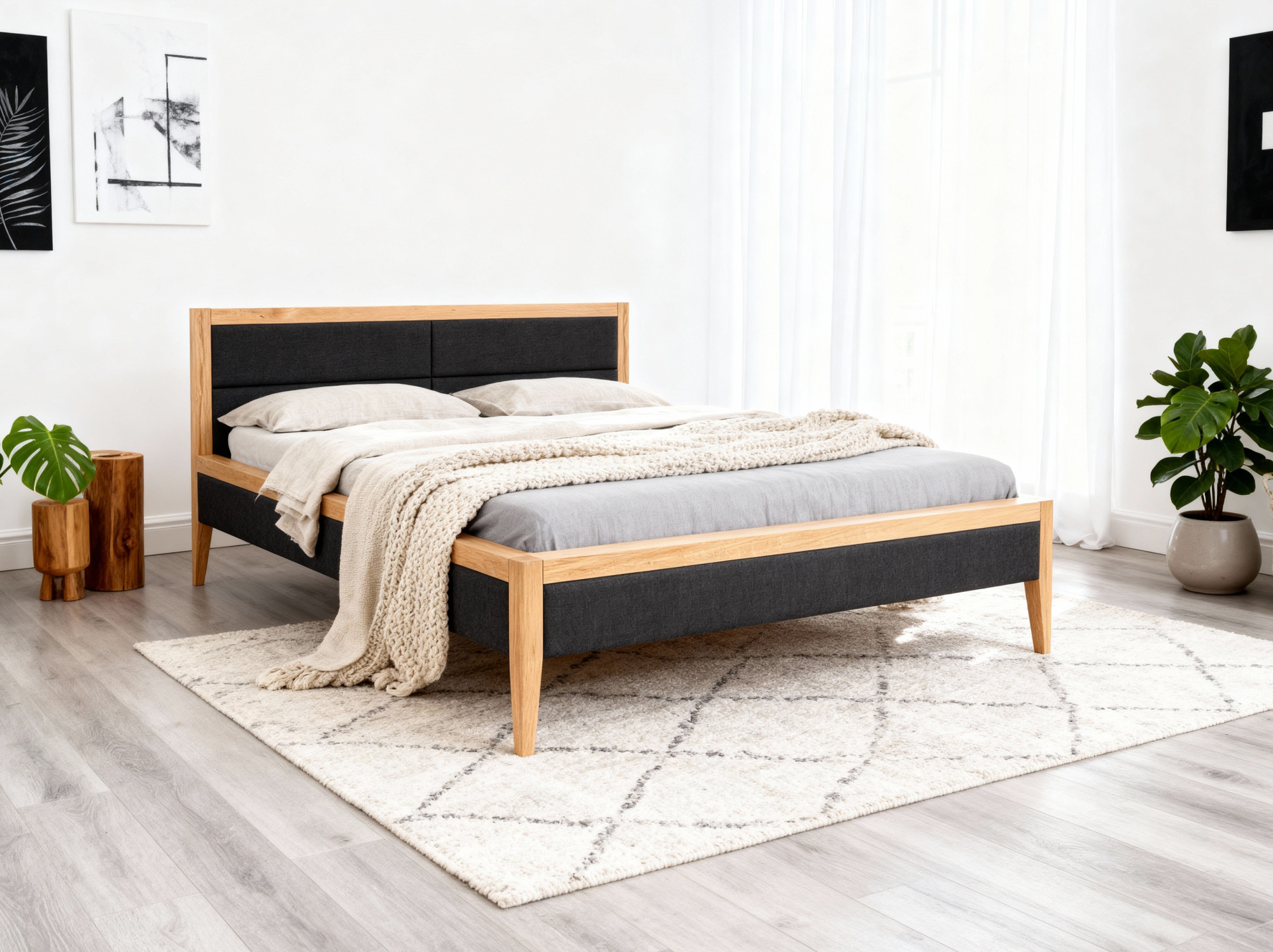 Postbett aus Eichenholz mit Stoffbezug – 180 x 200 cm, langlebig und elegant