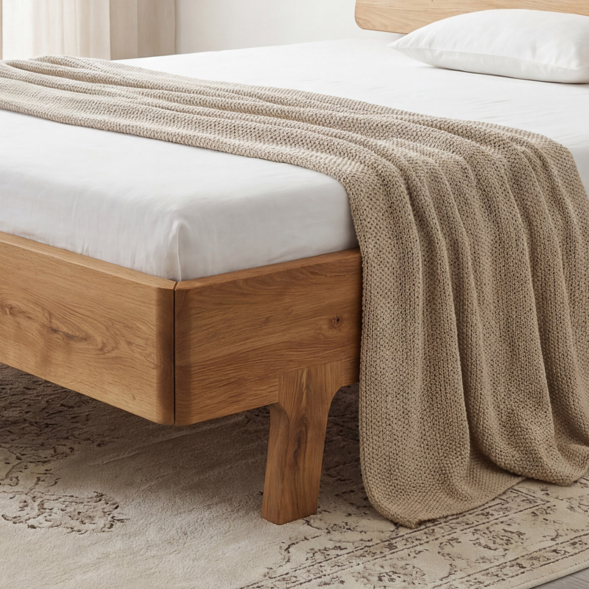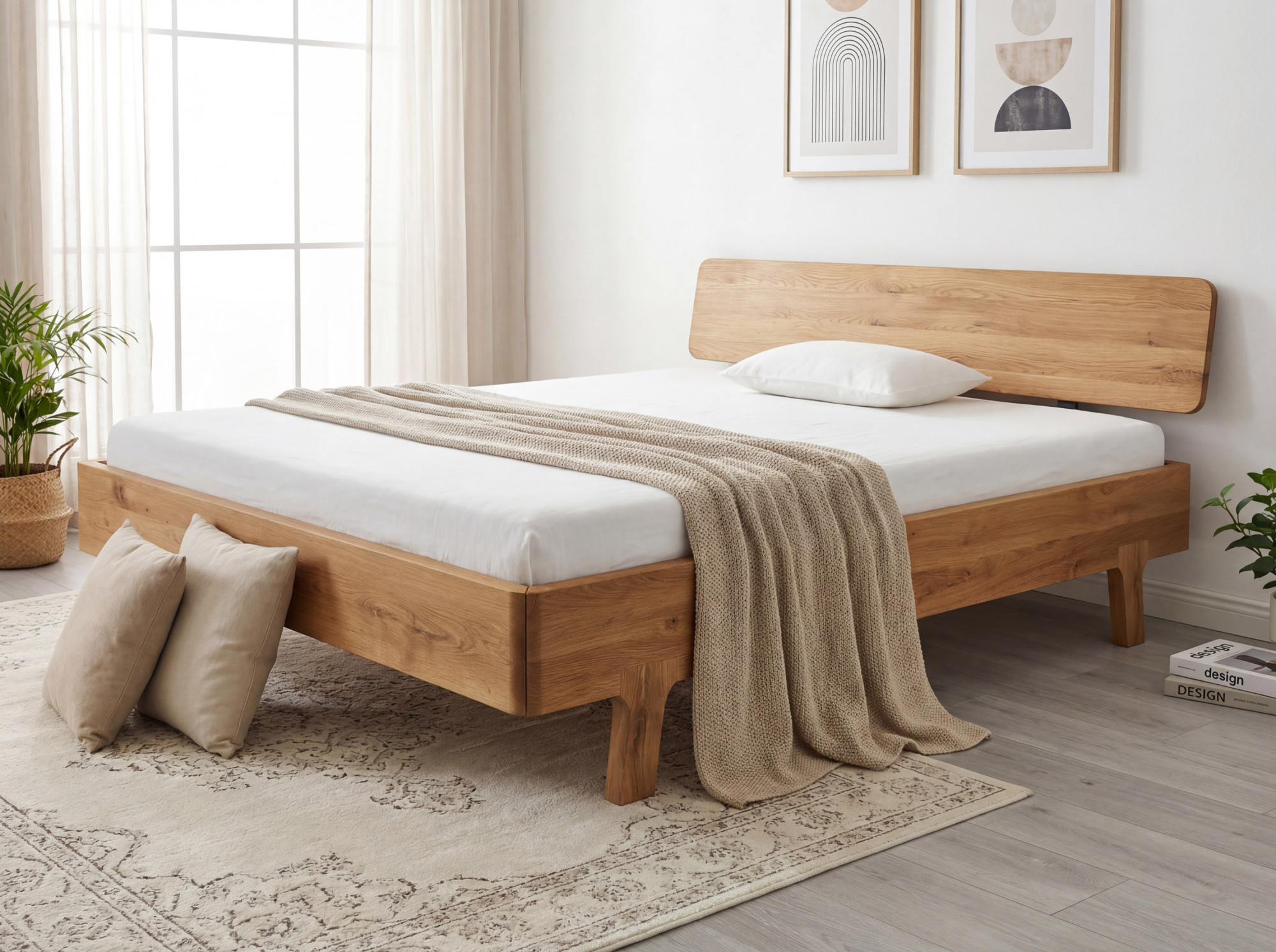 Abgerundetes Doppelbett aus massivem Wild-Eichenholz 180 x 200 cm – Bett aus Wildeiche mit einzigartigem Design