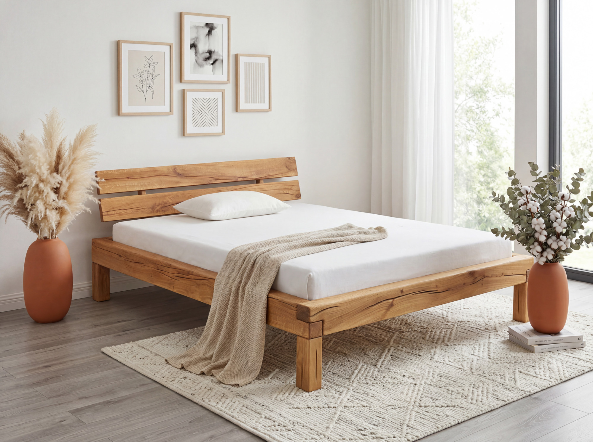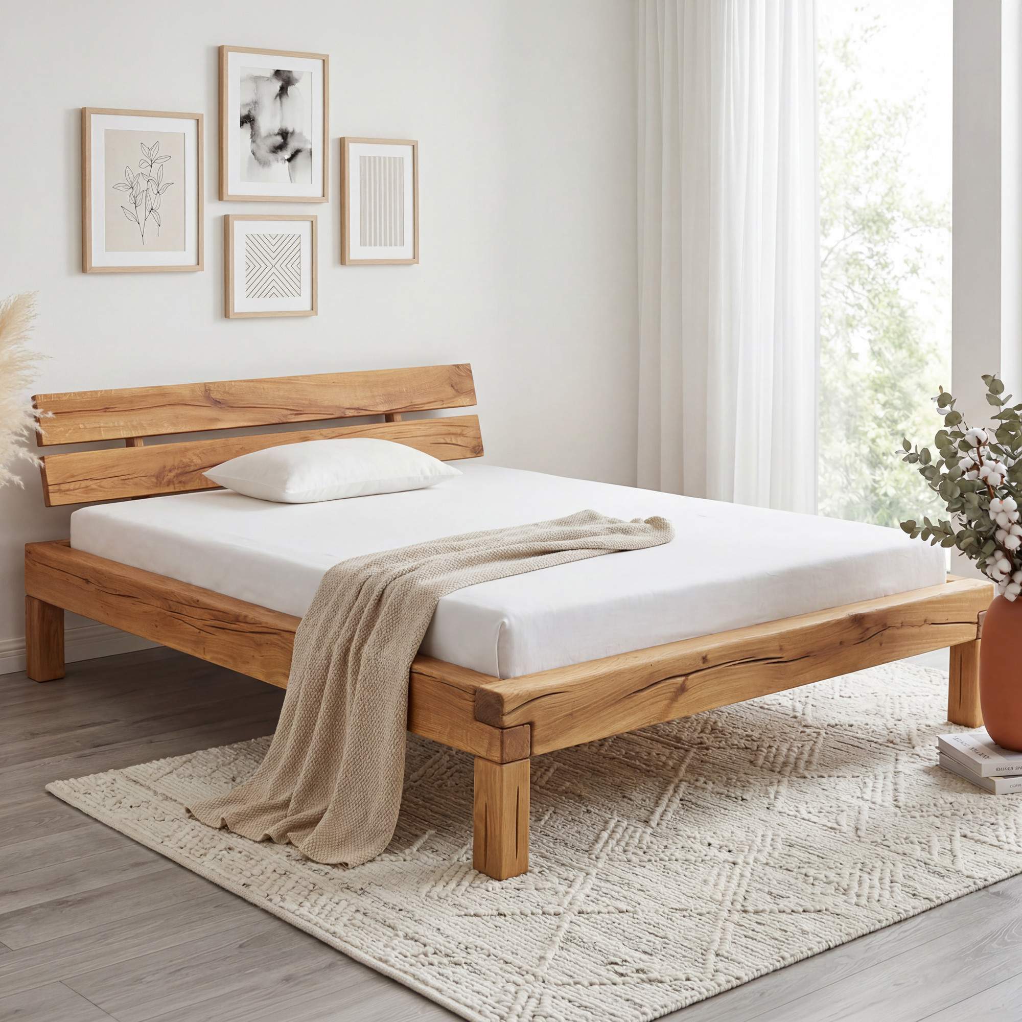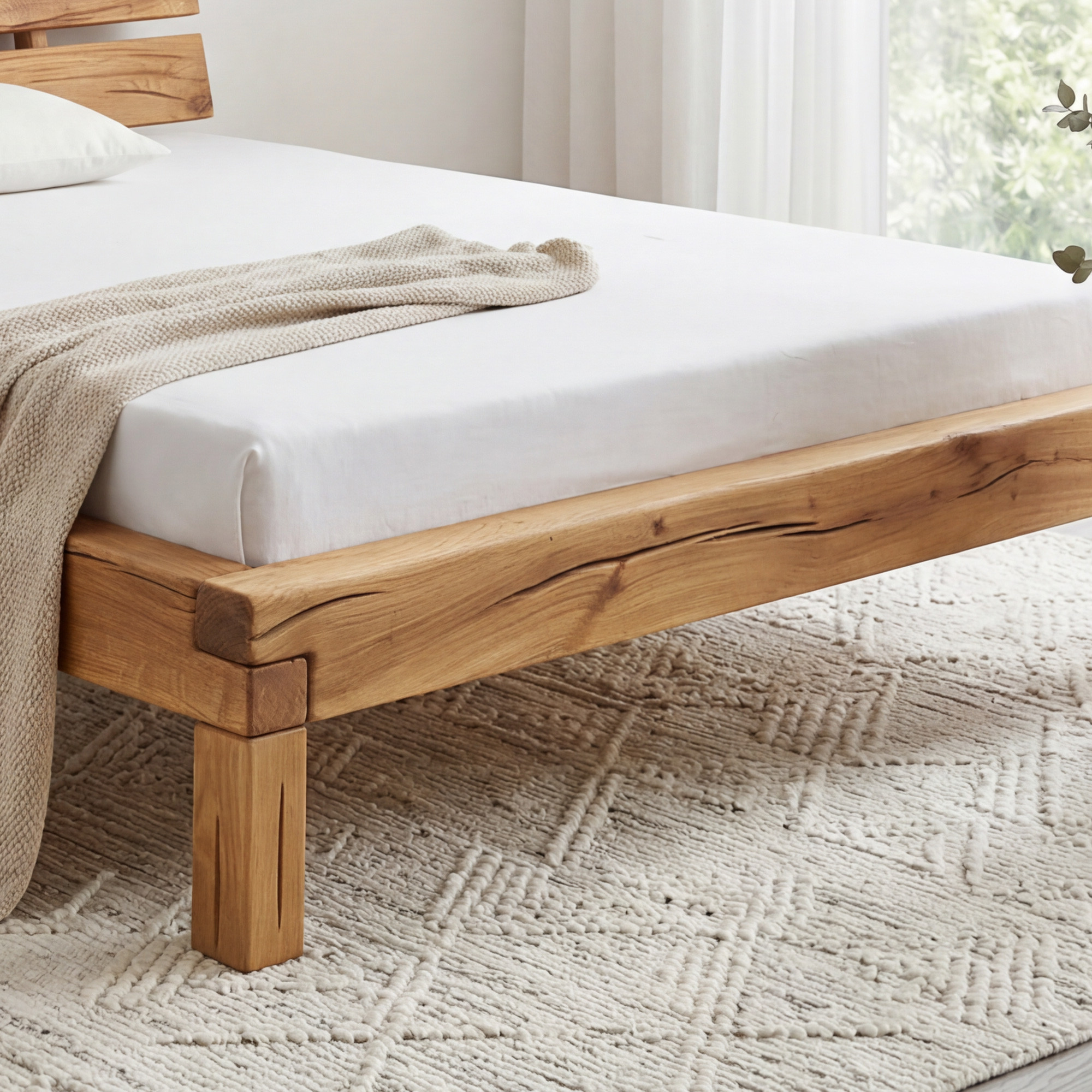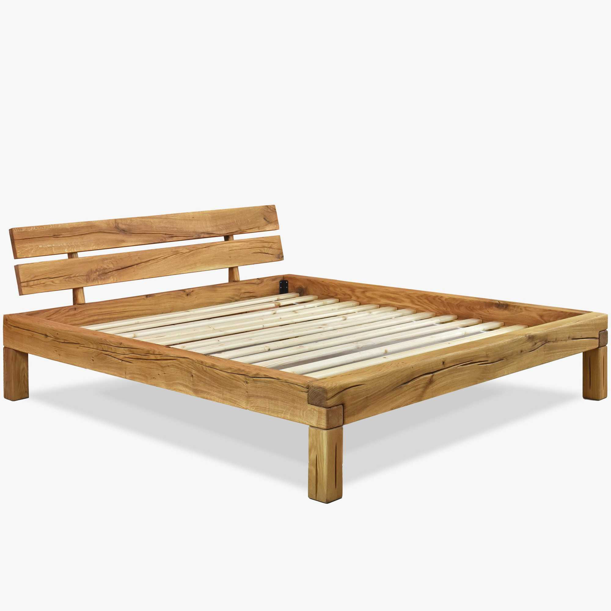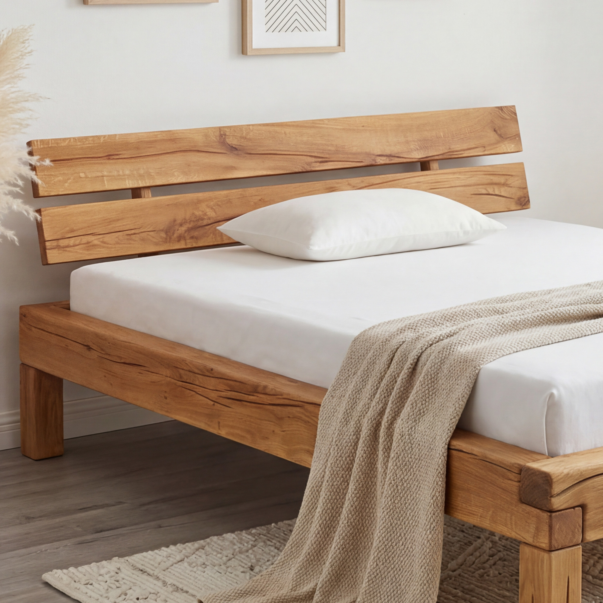 Massiv-Eichenbett 180 x 200 cm aus Eichenbalken, Ernad III