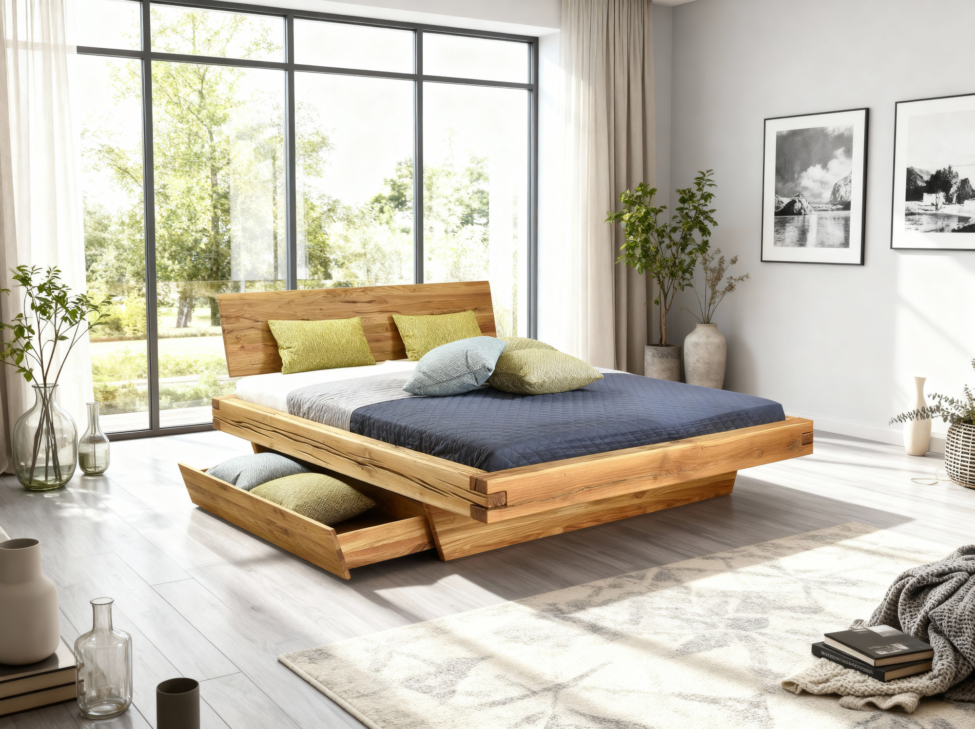 Ja, das Bett harmoniert perfekt mit anderen Eichenmöbeln aus unserem Sortiment in naturbelassener Ausführung wie Nachttischen, Kommoden oder Schränken. - Ist ein Lattenrost im Preis enthalten?