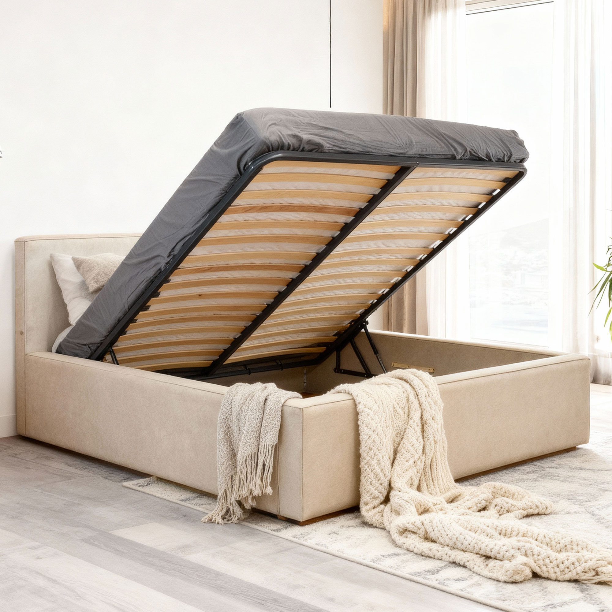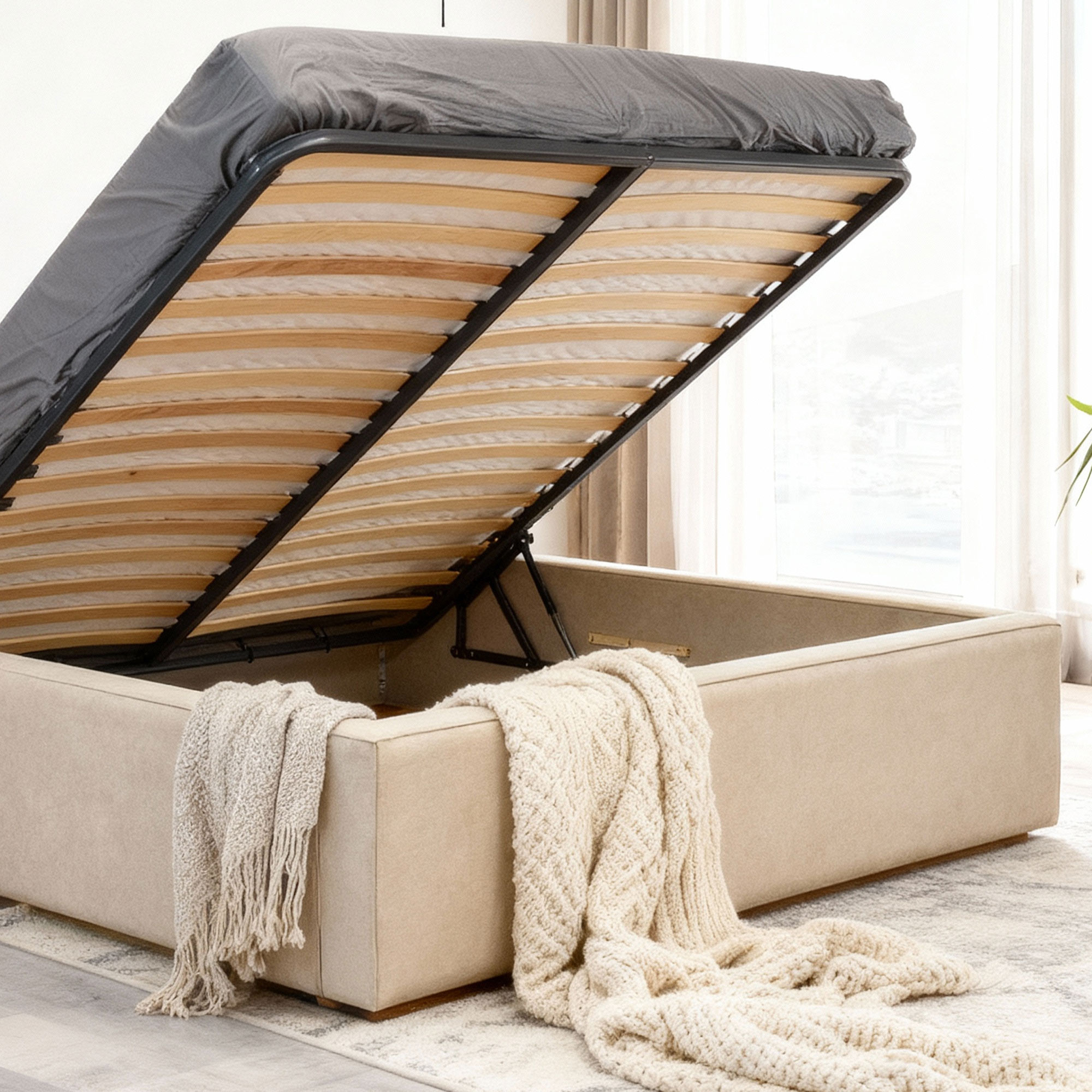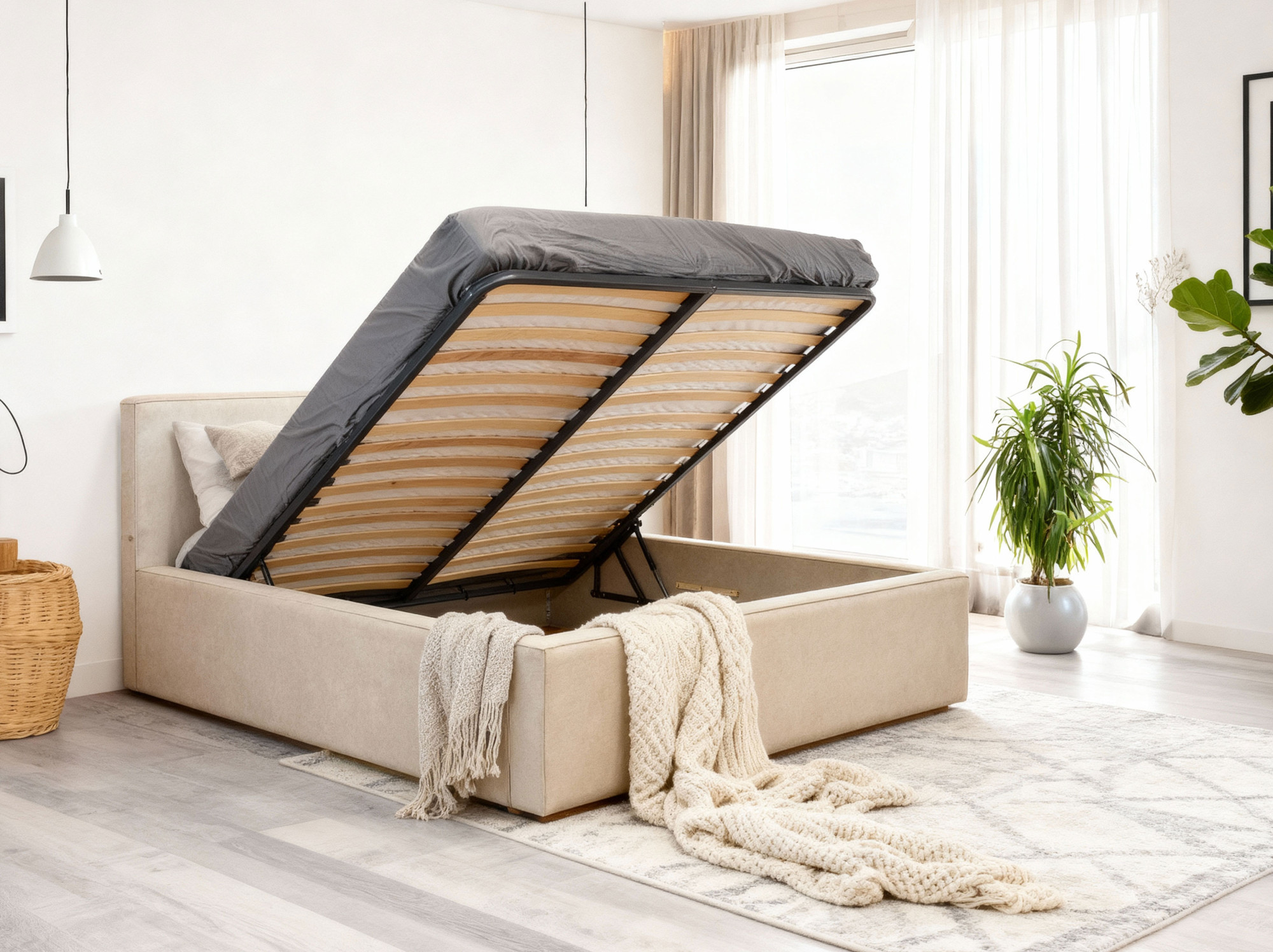 - Das Bett verfügt über einen großen Stauraum und einen hochwertigen Lattenrost.