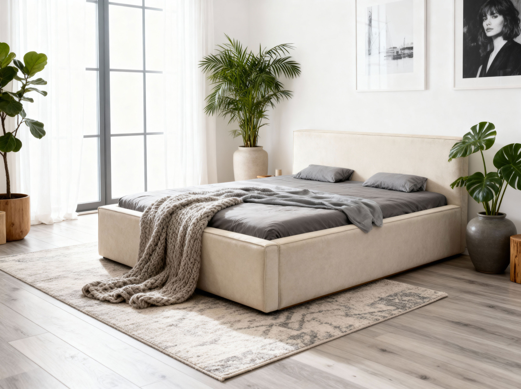 - Bequemes Stoffkopfteil des Bettes.