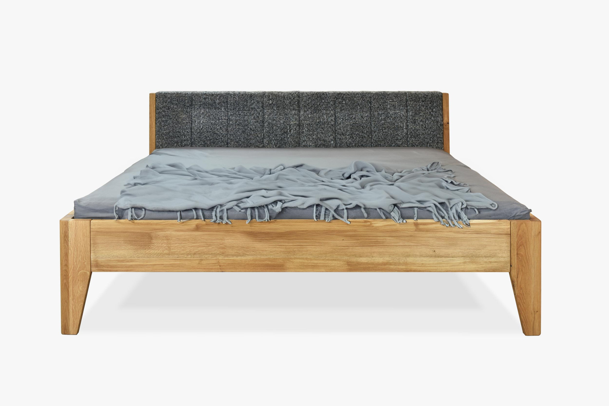Massivholz Eiche Bett 180x200 cm mit Stoffkopfteil und