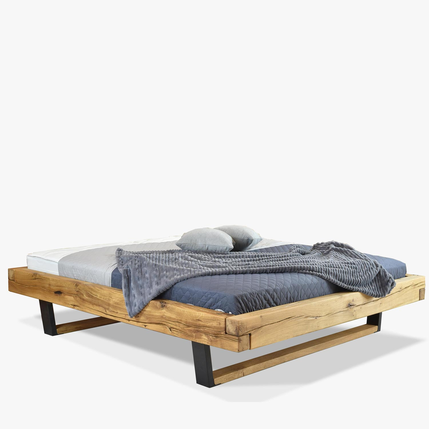 Massives Bettgestell Laura mit Metallbeinen, Eiche, 160 x 200 cm