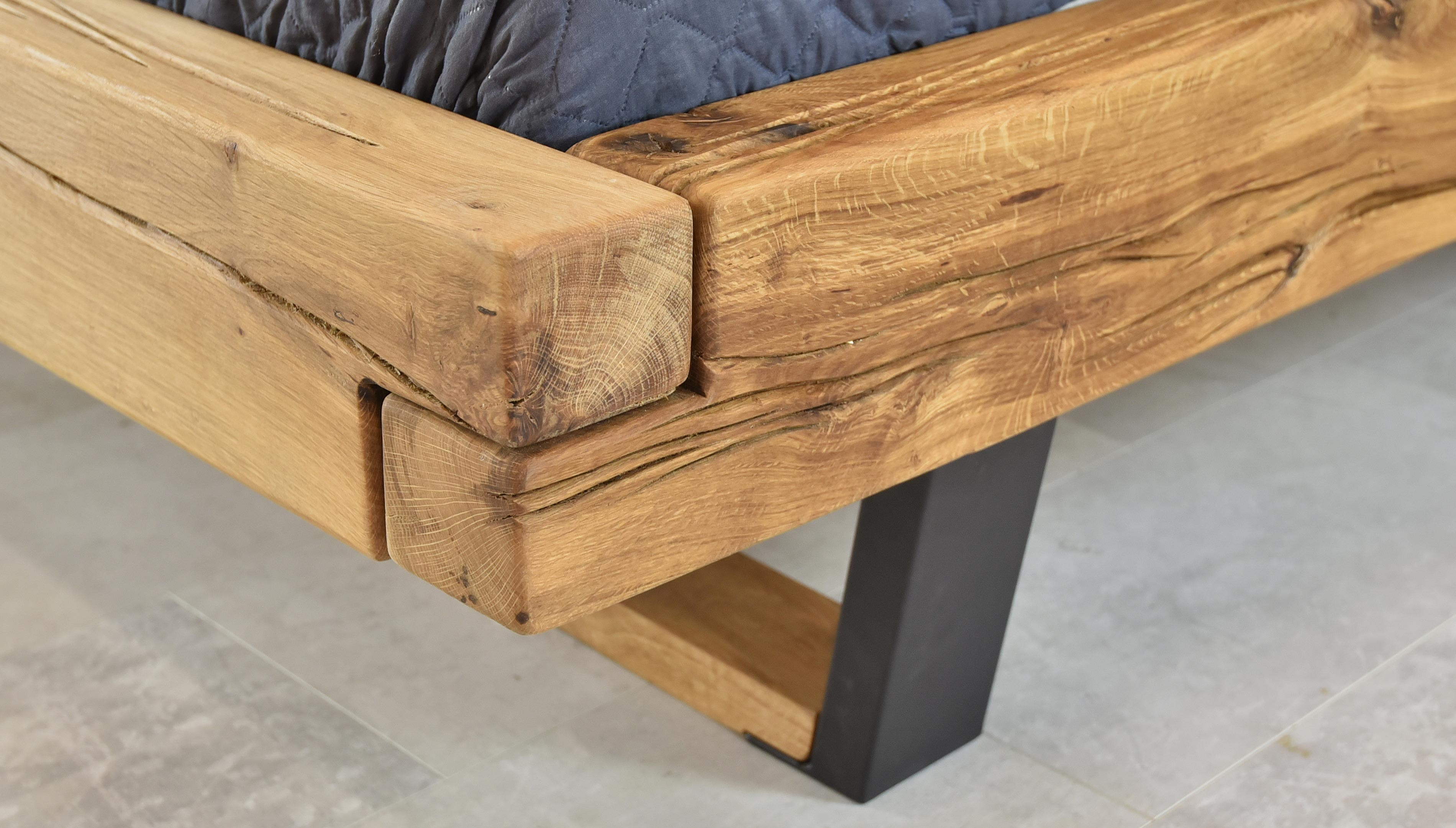 Die Konstruktion des Bettrahmens ist besonders stabil und langlebig. Das Holz ist mit natürlichem Öl behandelt, was die Oberfläche schützt und die natürliche Maserung hervorhebt. Jedes Bett ist ein Unikat, da künstliche Risse dem Holz eine authentische Optik verleihen. Das Bett wird zerlegt geliefert und ist einfach zu montieren. Es lässt sich hervorragend mit anderen Eichenmöbeln kombinieren. Der Rahmen kann mit jedem beliebigen Lattenrost verwendet werden, der separat erhältlich ist.