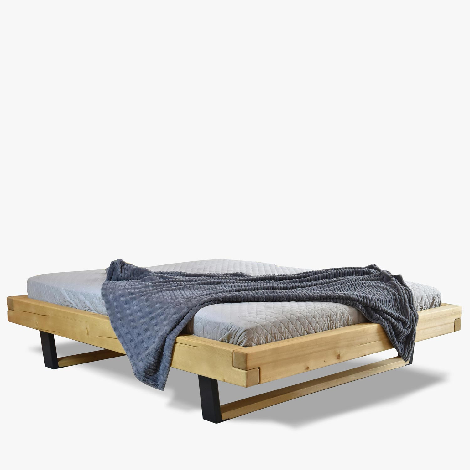 Massiver Bettrahmen aus Fichte 200x200 cm mit Metallbeinen