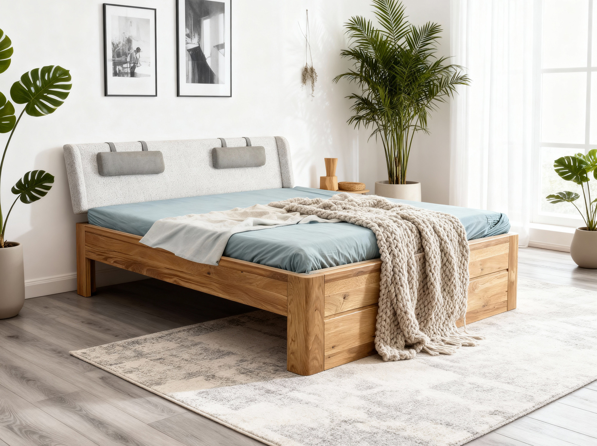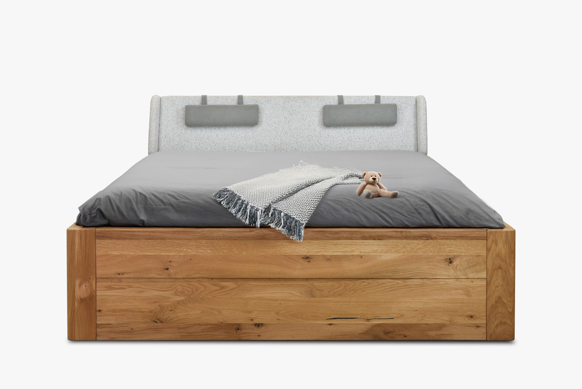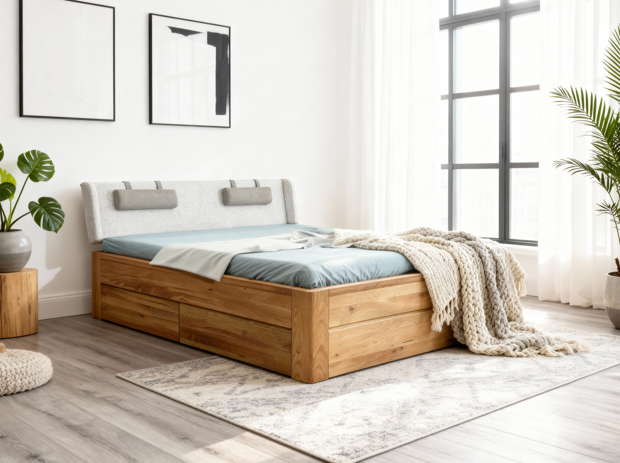 Holzbett Eiche natur mit Stauraum und Lattenrost