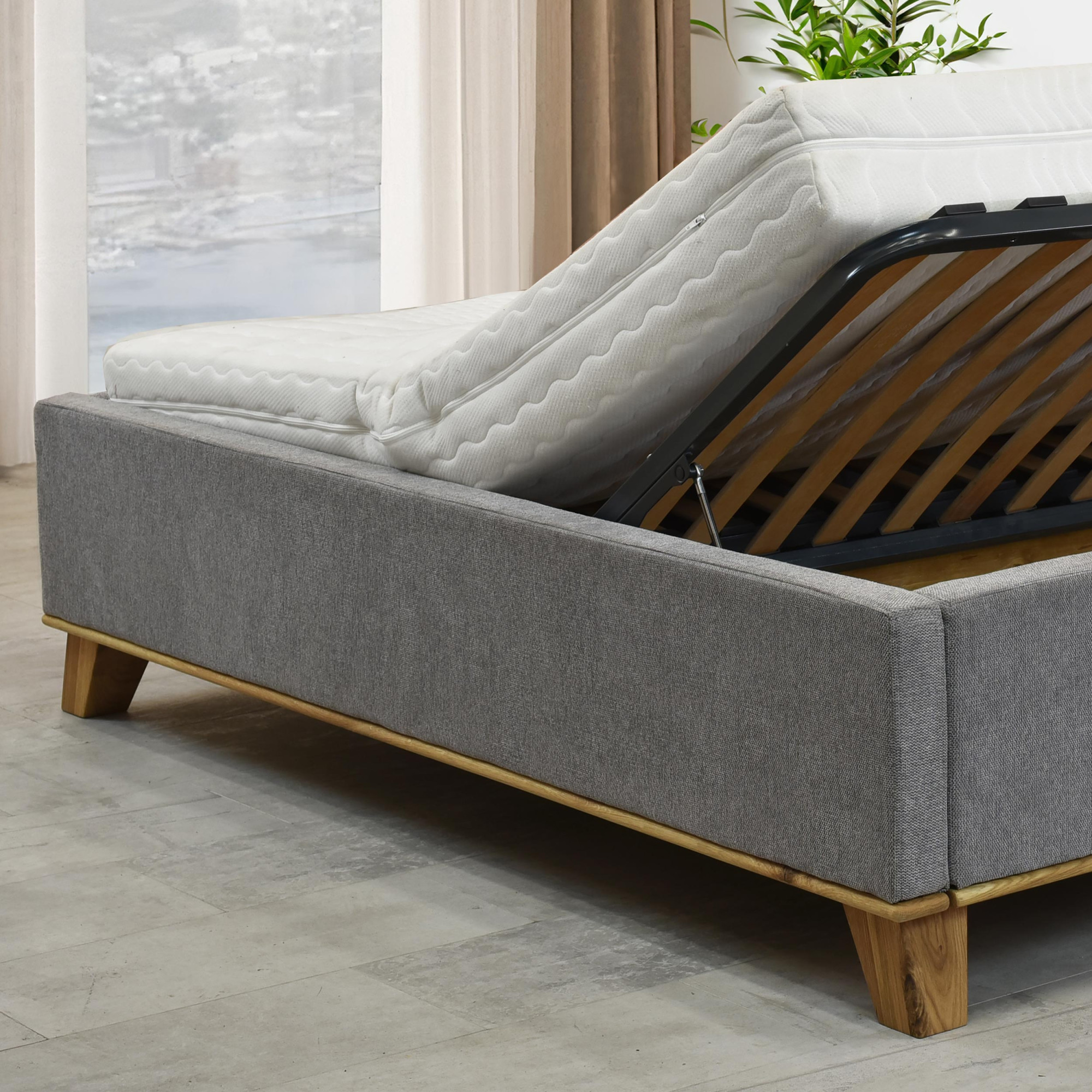 Doppelbett 180x200 mit Stauraum Grau-Braun Holzfüße