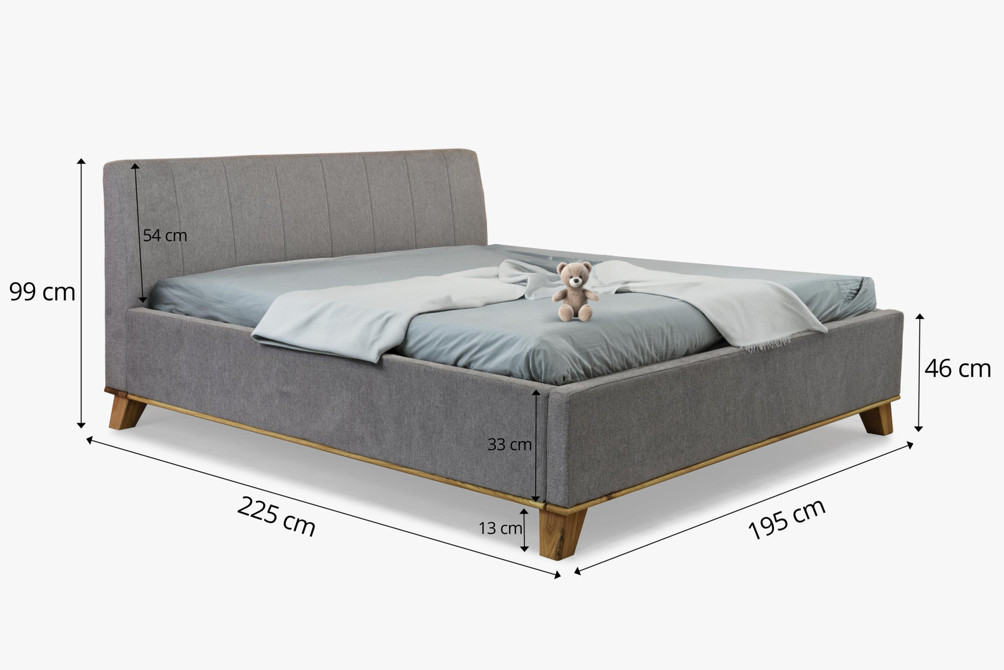 Ein hoher Mehrwert dieses Möbelstücks entsteht durch die natürlichen Materialien, insbesondere Eichenholz mit FSC-Zertifikat, das seine ökologische und nachhaltige Herkunft bestätigt. Das Bett lässt sich außerdem gut mit weiteren Produkten aus Eichenholz kombinieren, sei es Nachttische, Kommoden oder Schränke. Der Bezugsstoff kann mit neutraler Seife und lauwarmem Wasser gereinigt werden, ohne Einsatz aggressiver Mittel. Im Folgenden finden Sie 7 wichtige Eigenschaften, die den Wert dieses Doppelbetts auf Füßen unterstreichen: