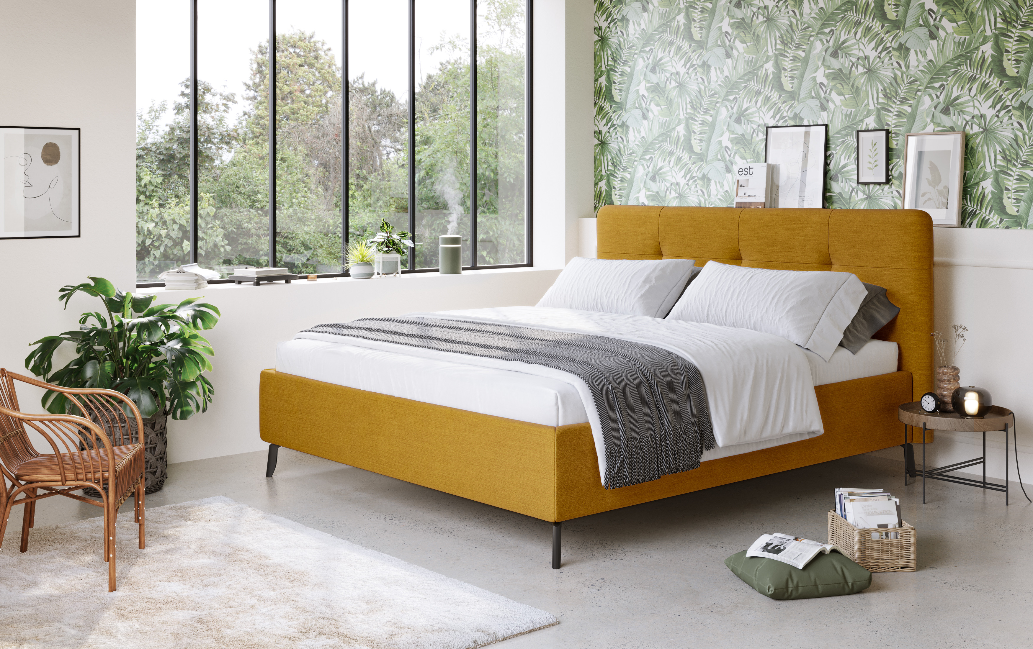 Bett im FINE FLATWEAVE Stoff – gelb