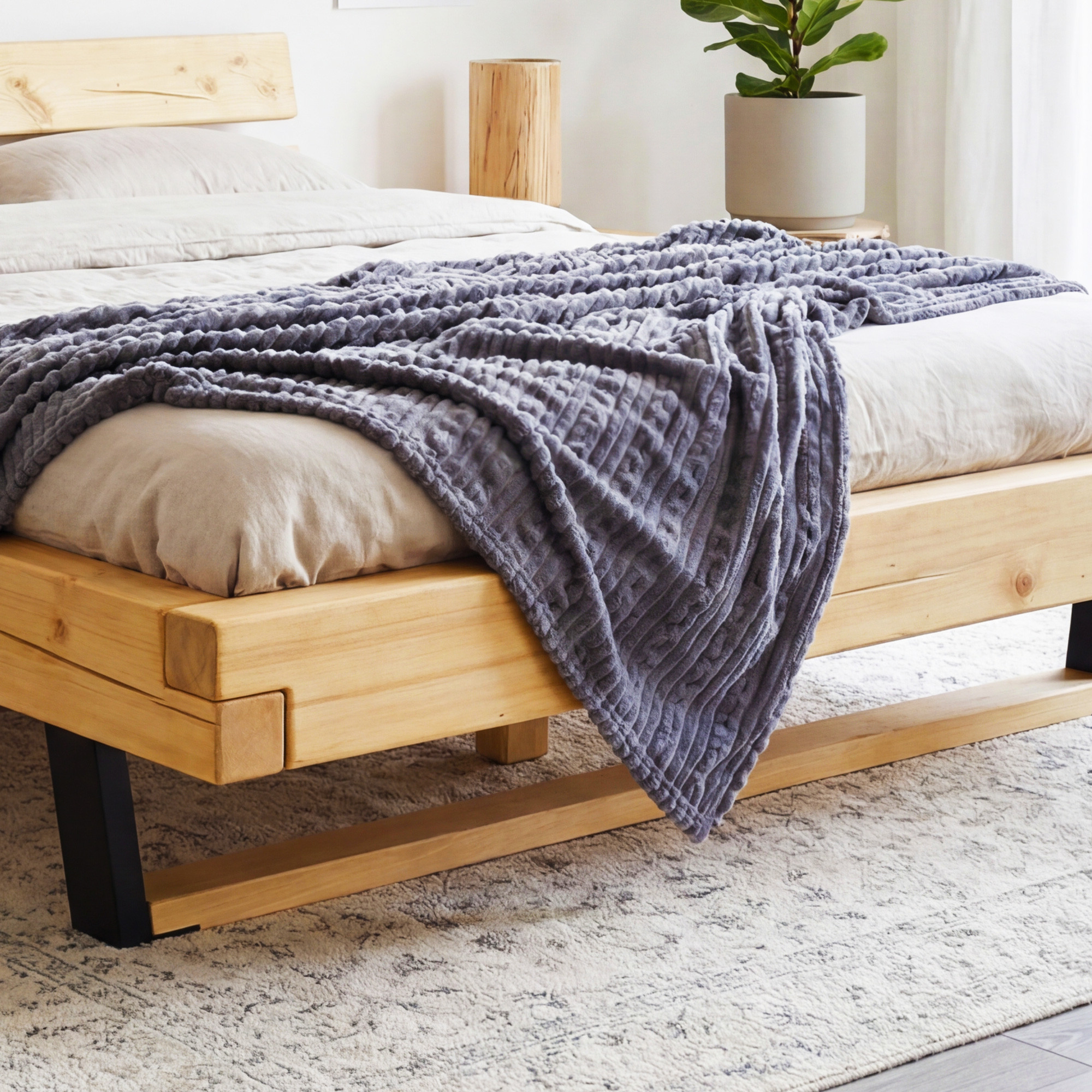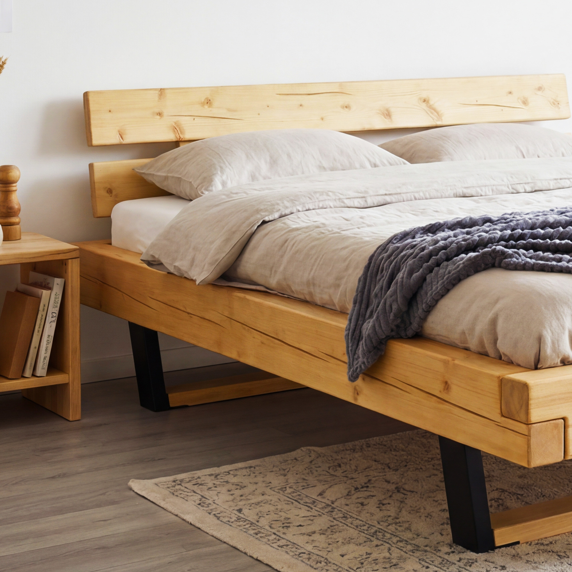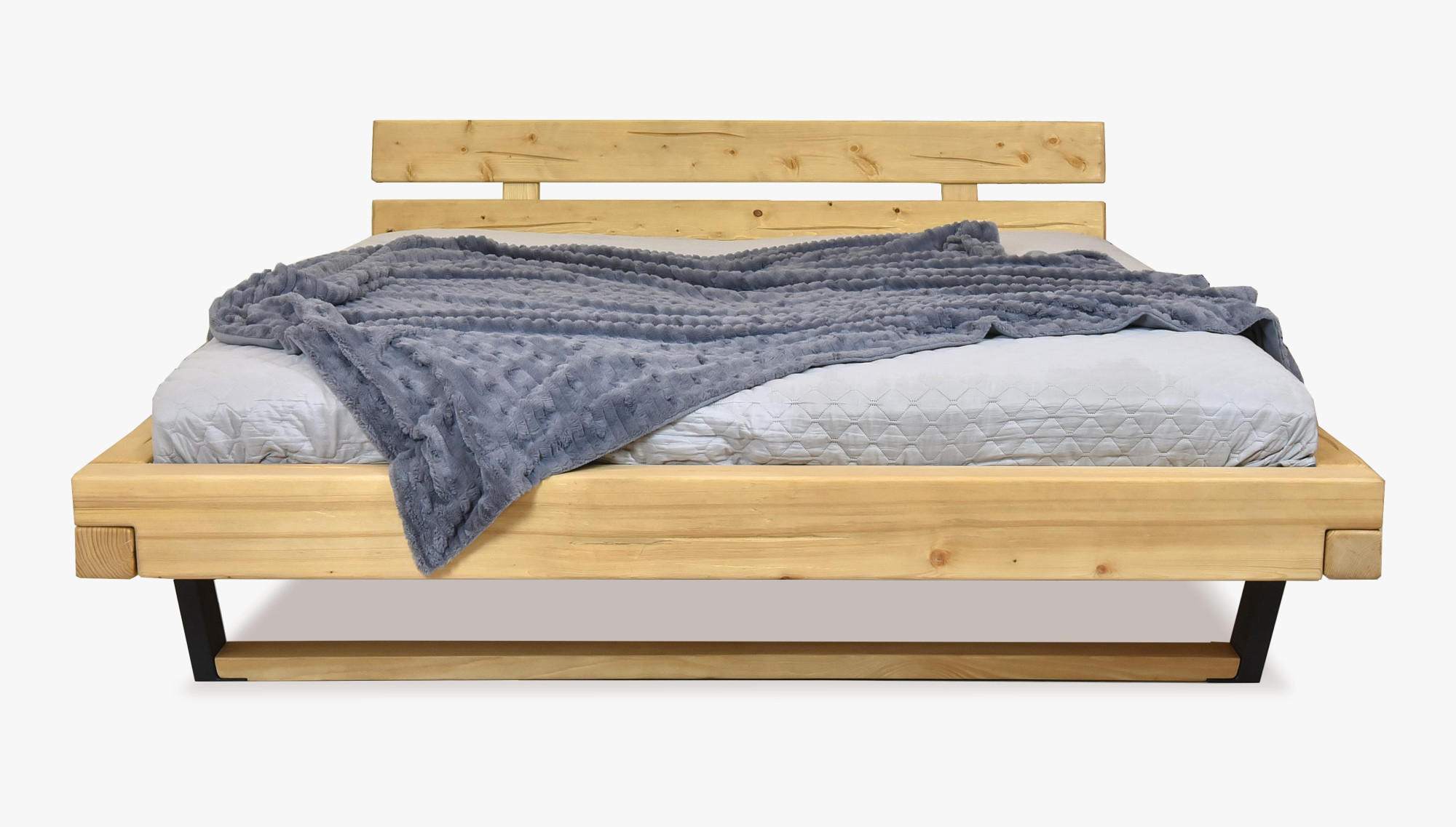 Modernes Luxusbett aus massivem Fichtenholz. Das Modell Laura steht auf mattschwarz lackierten Metallfüßen. Das Bett ist außergewöhnlich stabil und robust, die Konstruktion ist so konzipiert, dass sie jedem Ansturm standhält und für Generationen bestimmt ist. Zusätzlich zum Bett liefern wir ein stabiles Lattenrost gratis mit, das wir empfehlen, direkt am Bettrahmen festzuschrauben. Das moderne Doppelbett ist in mehreren Matratzengrößen erhältlich. Die Matratze ist nicht im Lieferumfang enthalten, aber Sie können aus unserem Angebot an Markenmatratzen Mirek wählen.