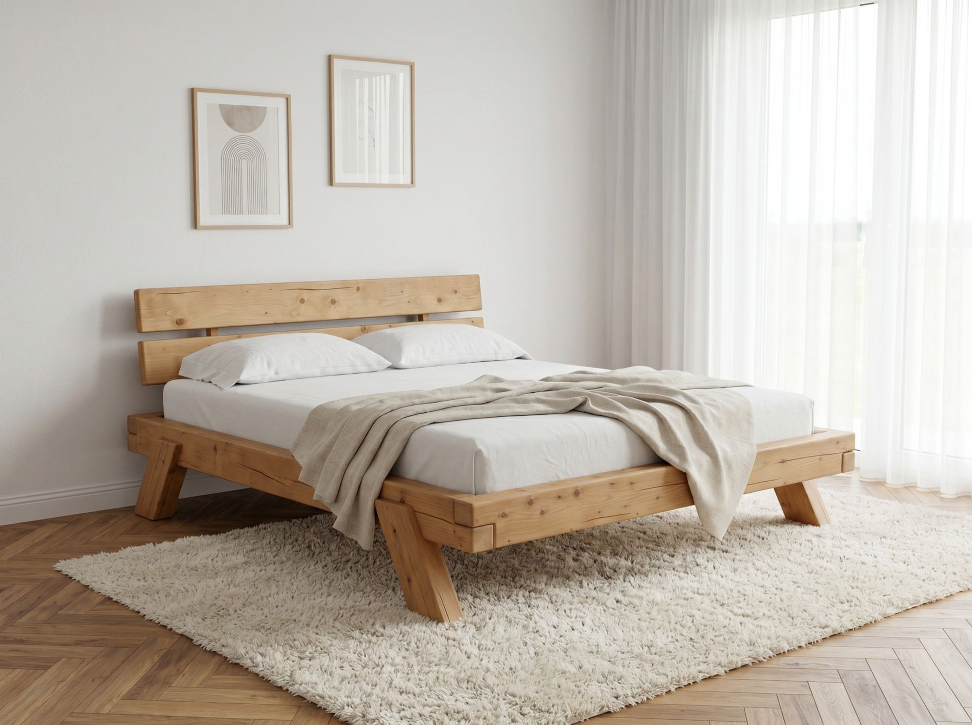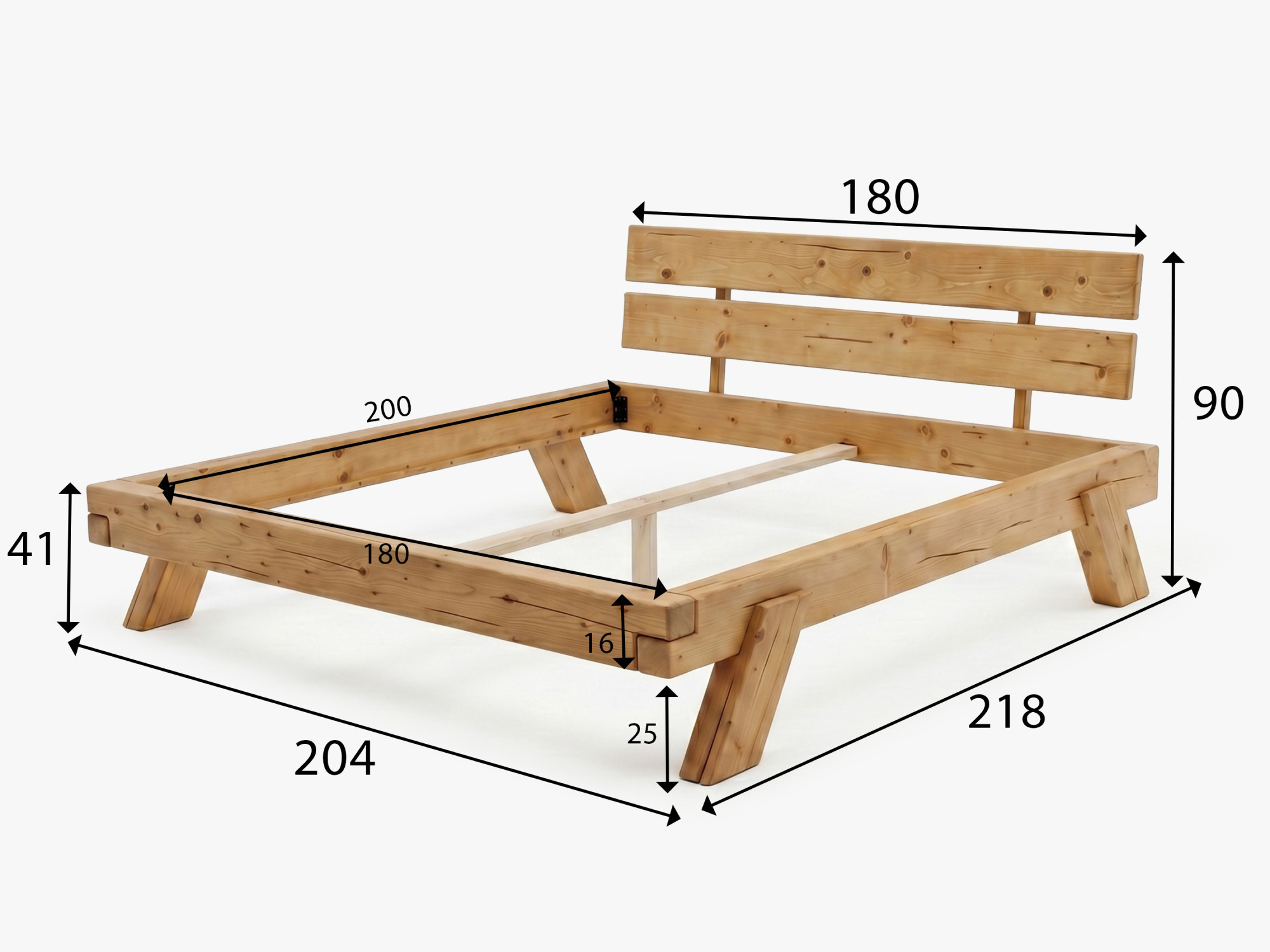Massives Fichtenbett 180 × 200 cm – robustes Holzbett