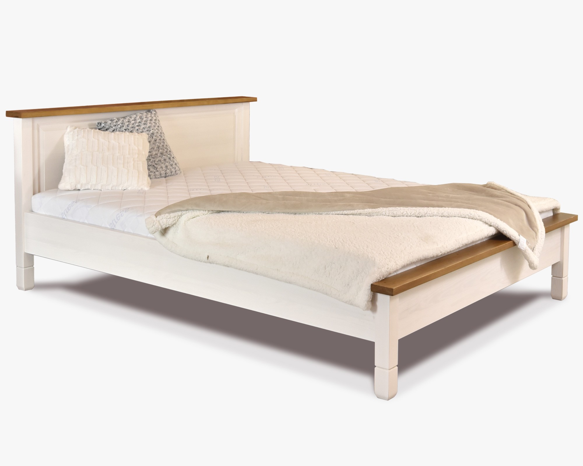 Rustikales Bett France 160x200 cm aus massivem Kiefernholz in Weiß, Landhausstil