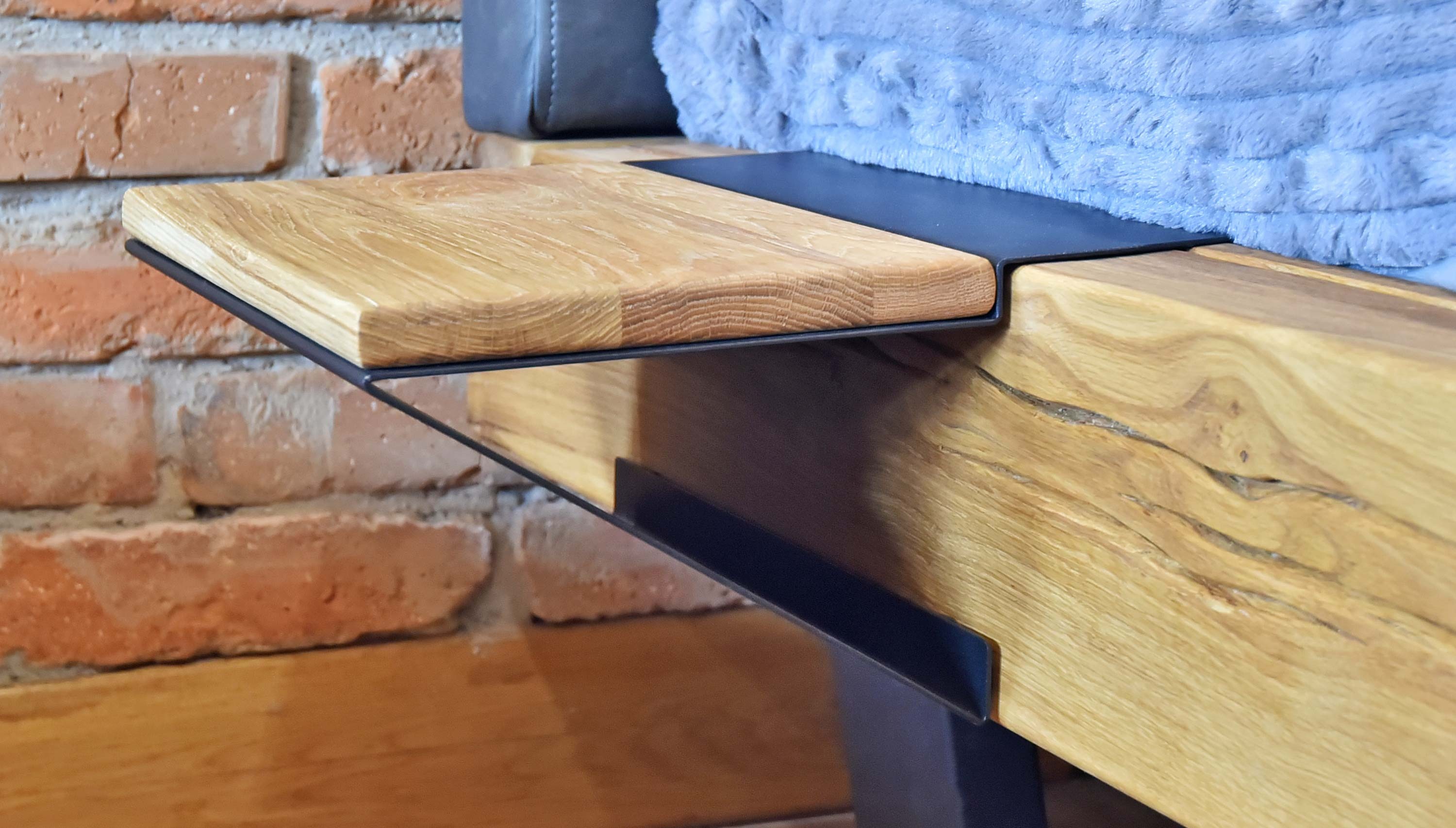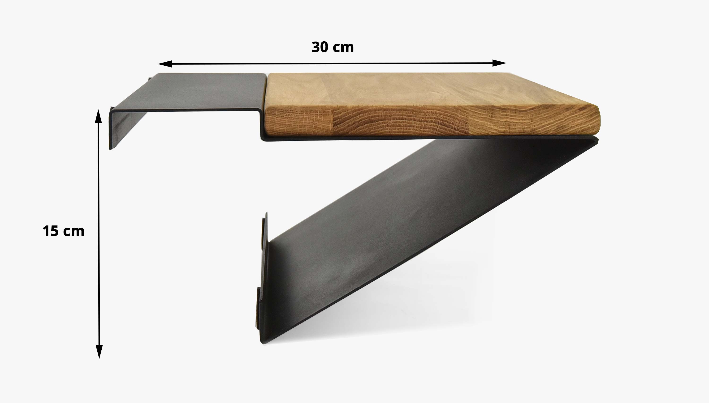 Wunderschönes einzigartiges Design und hohe Stabilität. Die Metallteile sind mit Stoffunterlagen versehen, damit das Holz nicht beschädigt wird. Der Nachttisch ist universell und für die rechte und linke Bettseite geeignet. Oben befindet sich Eichenholz, das mit einem umweltfreundlichen Öl in Naturfarbe behandelt ist.