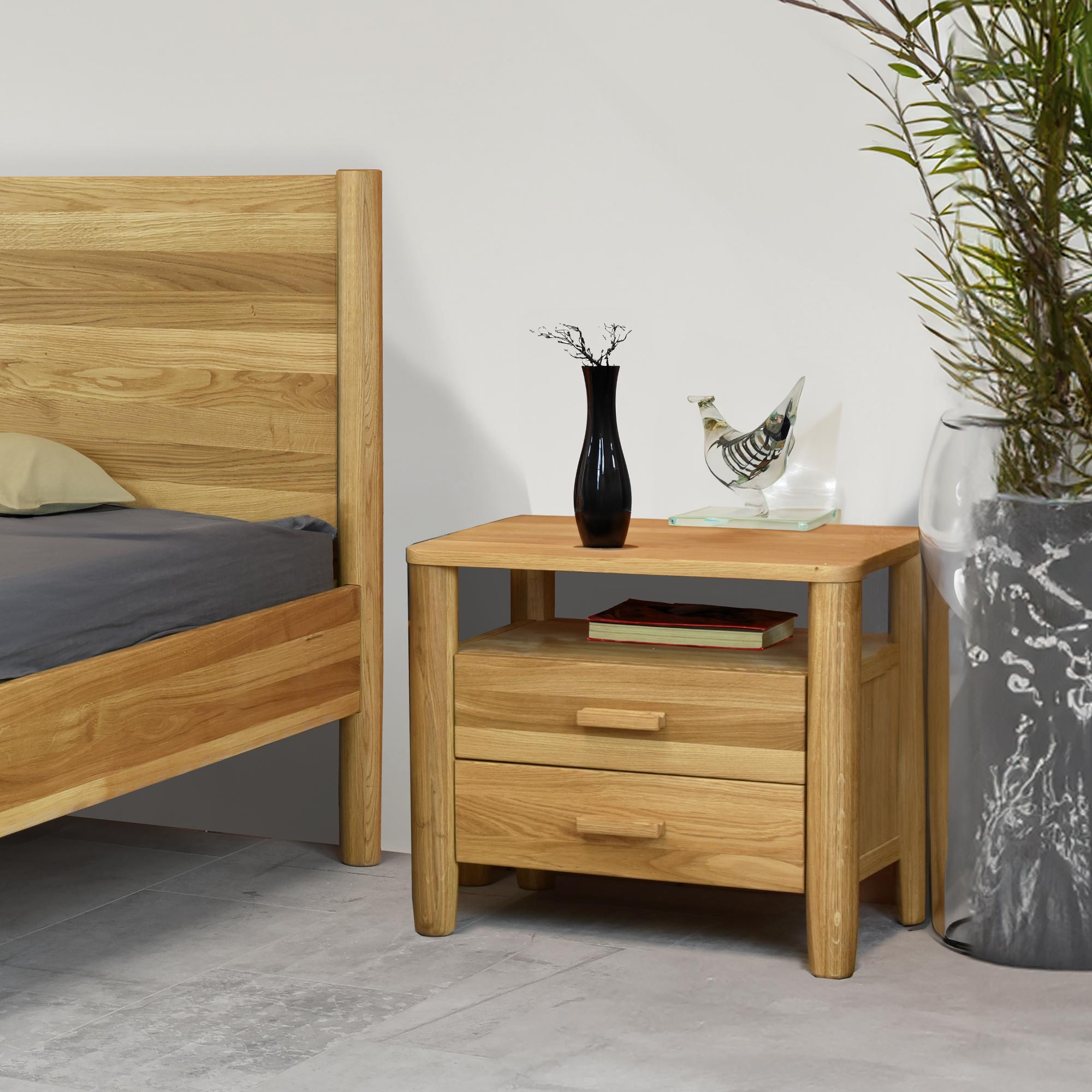 Massiver Eiche Nachttisch skandinavisch 2 Schubladen natur