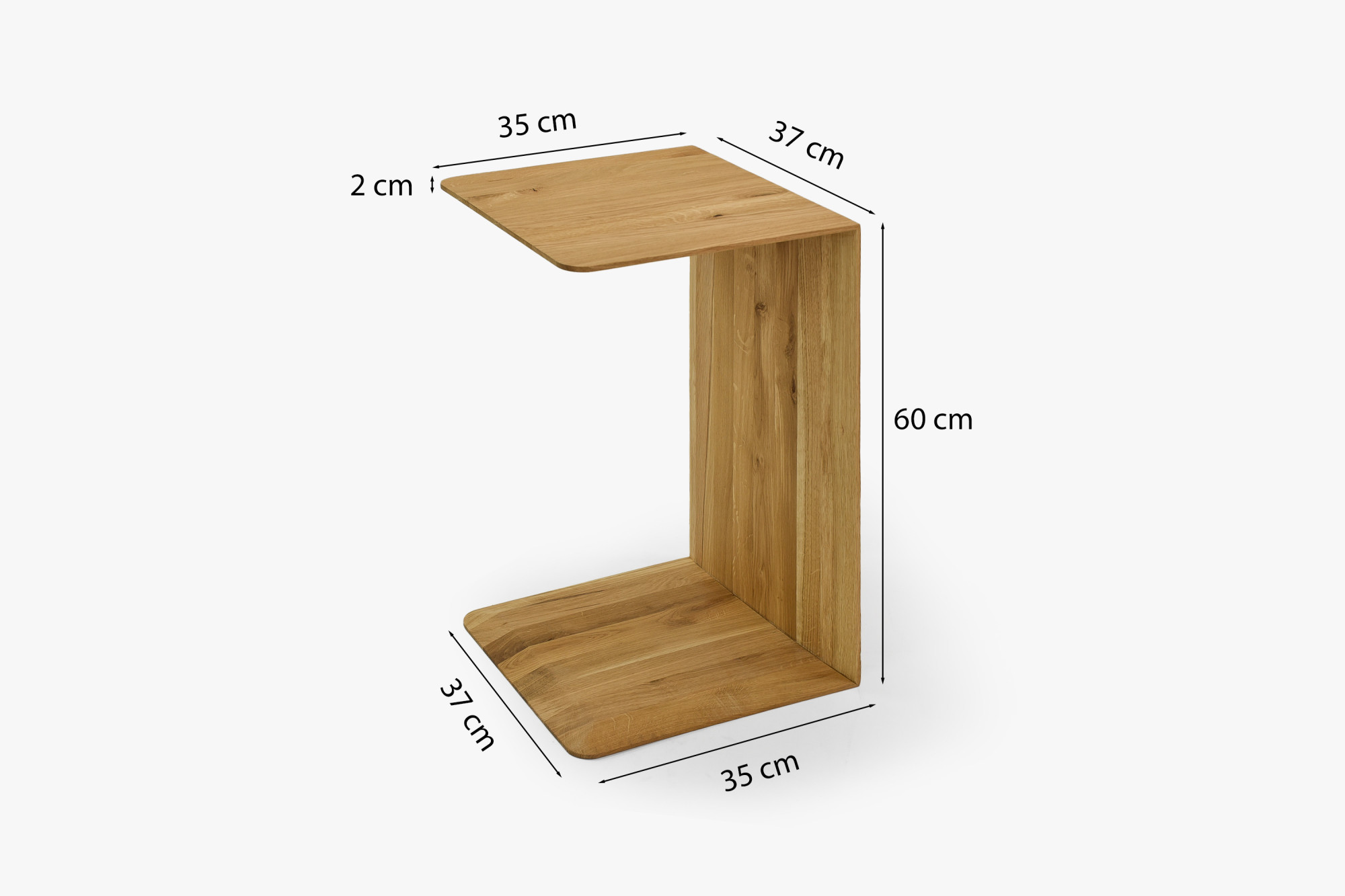 Der Beistelltisch aus Eichenholz ist ein stilvolles und praktisches Accessoire für jeden Haushalt. Dank seiner kompakten Größe und des eleganten Designs in natürlichem Eichenfarbton lässt er sich leicht neben dem Sofa, dem Bett oder im Flur platzieren. Er dient ideal als Abstelltisch, Nachttisch oder dekoratives Element für Vasen, Kerzen oder Bücher. Er ist aus massivem Eichenholz gefertigt, wobei besonderer Wert auf die Qualität der Verarbeitung und das natürliche Aussehen gelegt wird. Eiche wird für ihre lange Lebensdauer, Festigkeit und Widerstandsfähigkeit gegen mechanische Beschädigungen geschätzt.
