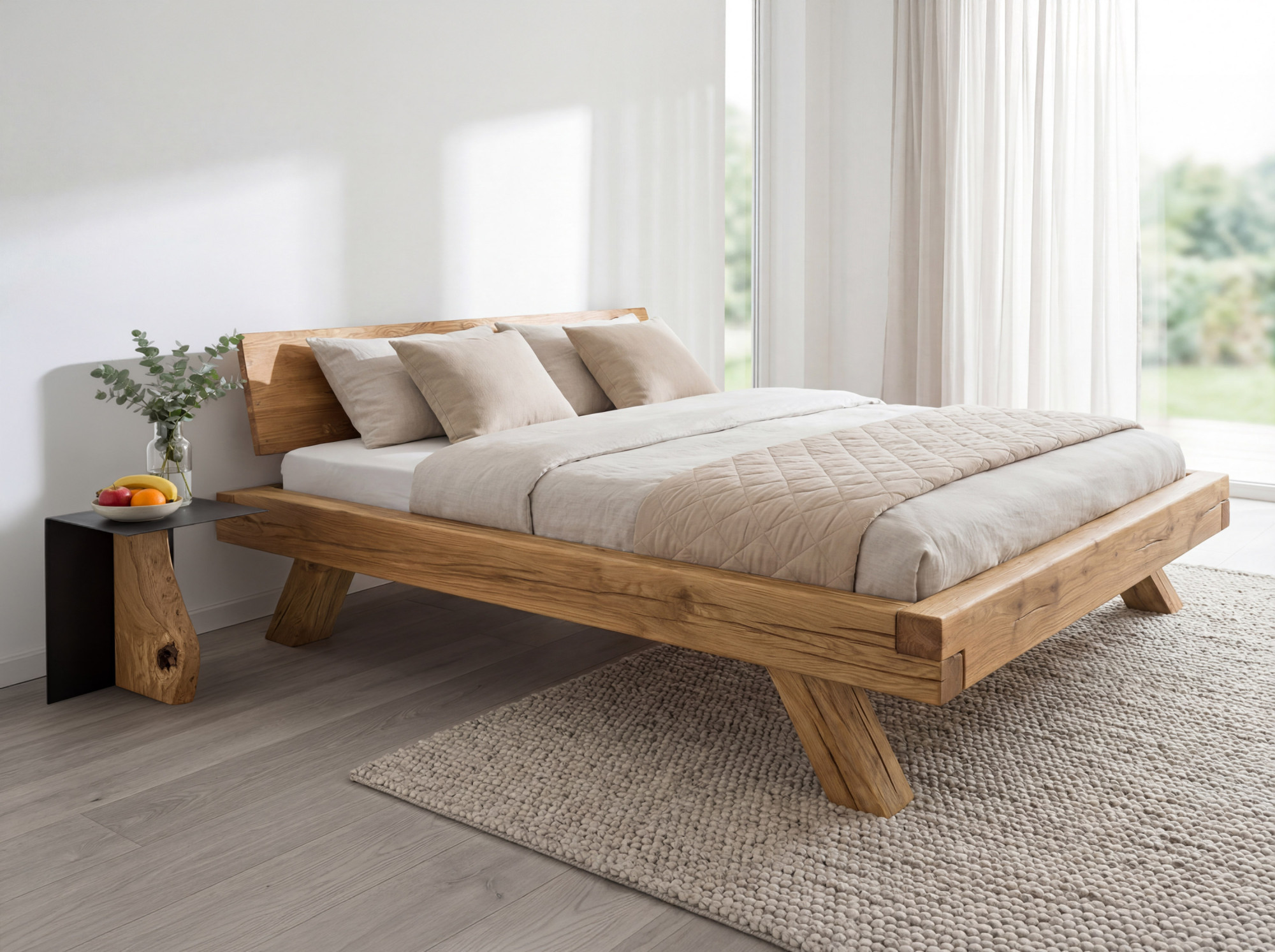 - Material der Platte: massives, geöltes Eichenholz mit natürlicher Struktur