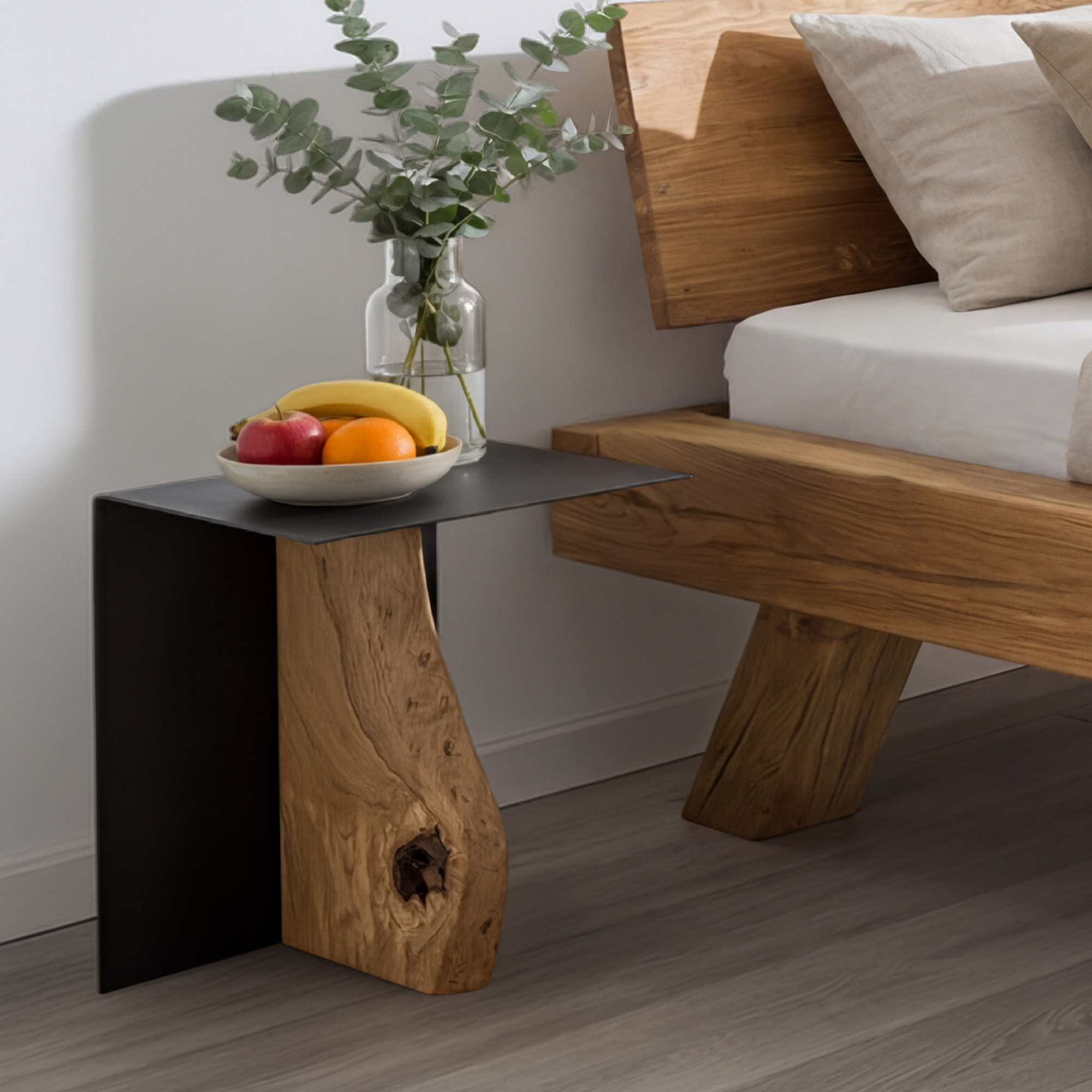 Beistelltisch aus Metall mit Eichenplatte 30 x 33 cm – Modernes Design aus echtem Massivholz