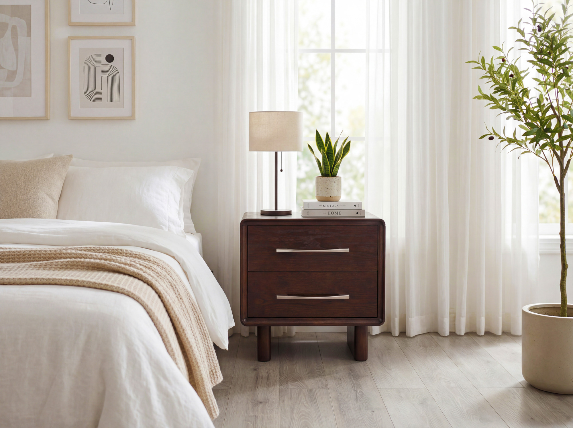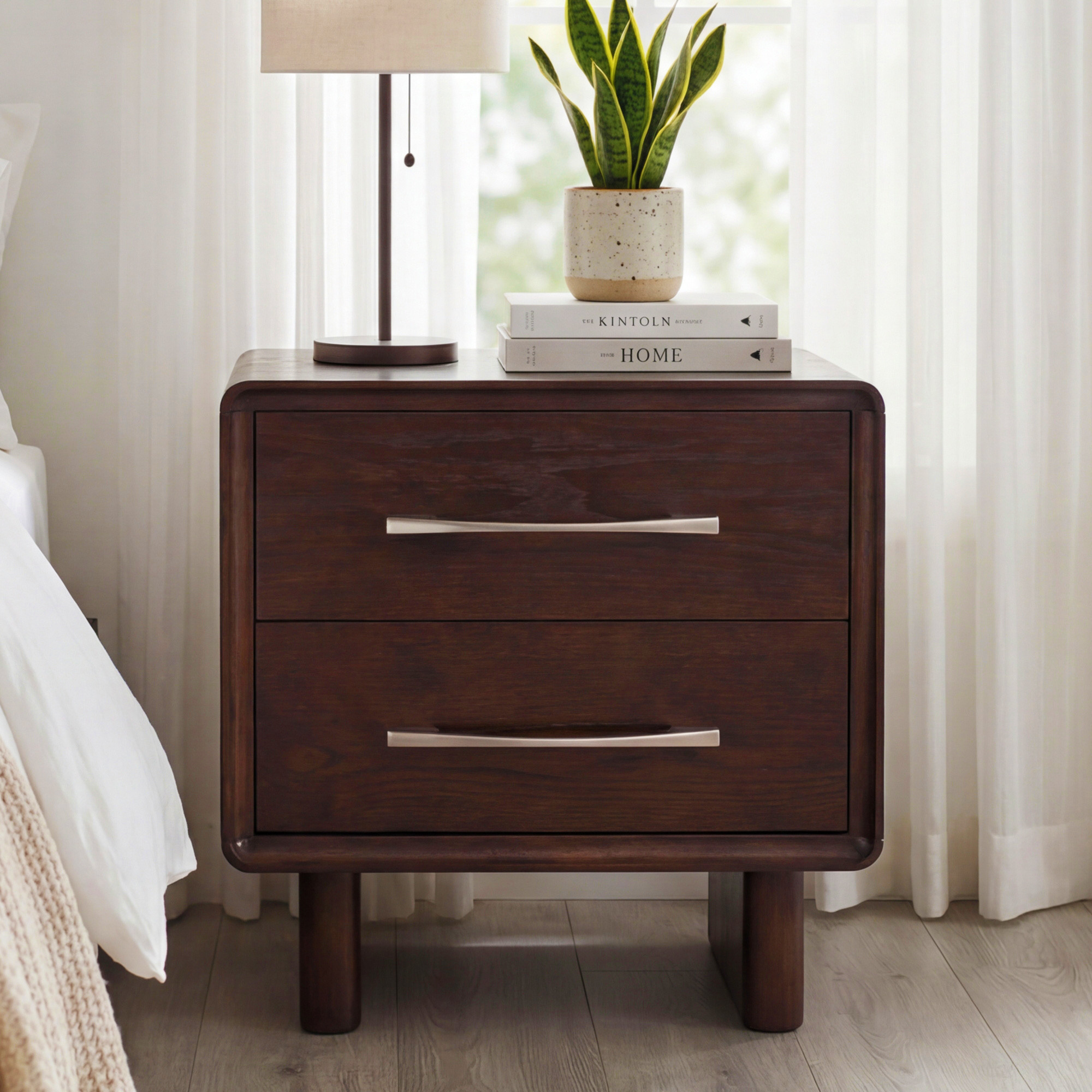 Design-Nachtisch Koper mit 2 Schubladen in Nussbaumfarbe – elegantes Accessoire für Ihr Schlafzimmer