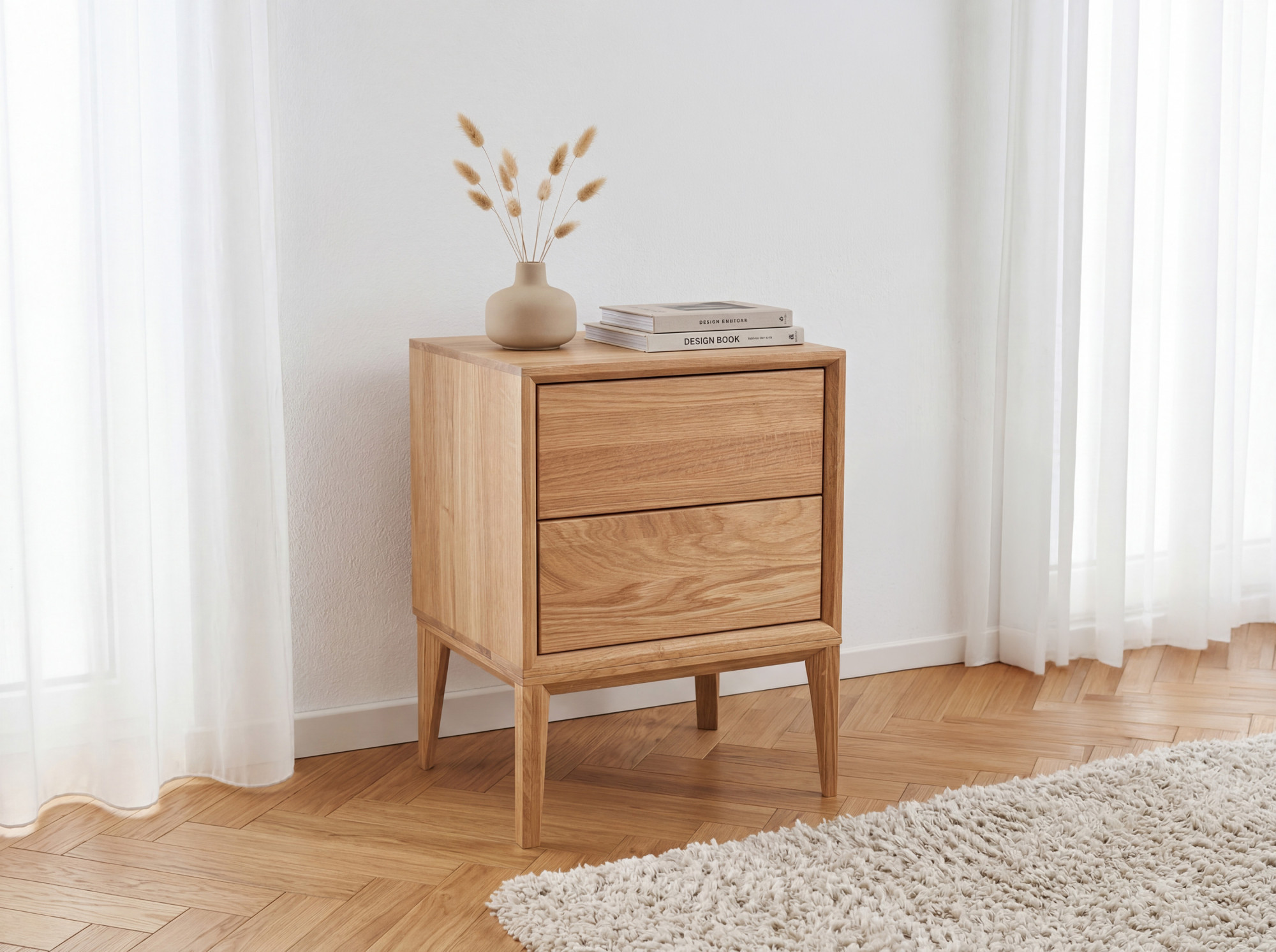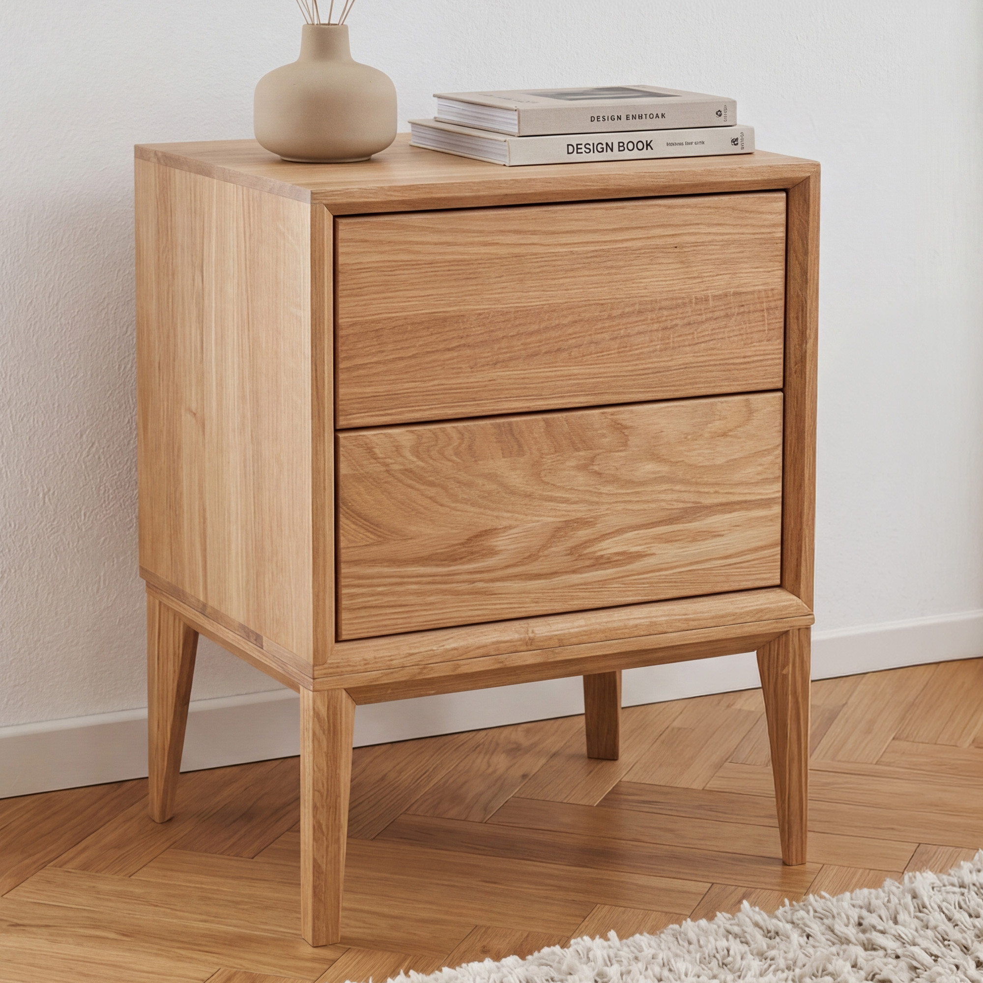 Massive Eichen-Nachtkonsole Oslo mit 2 Schubladen, geölt