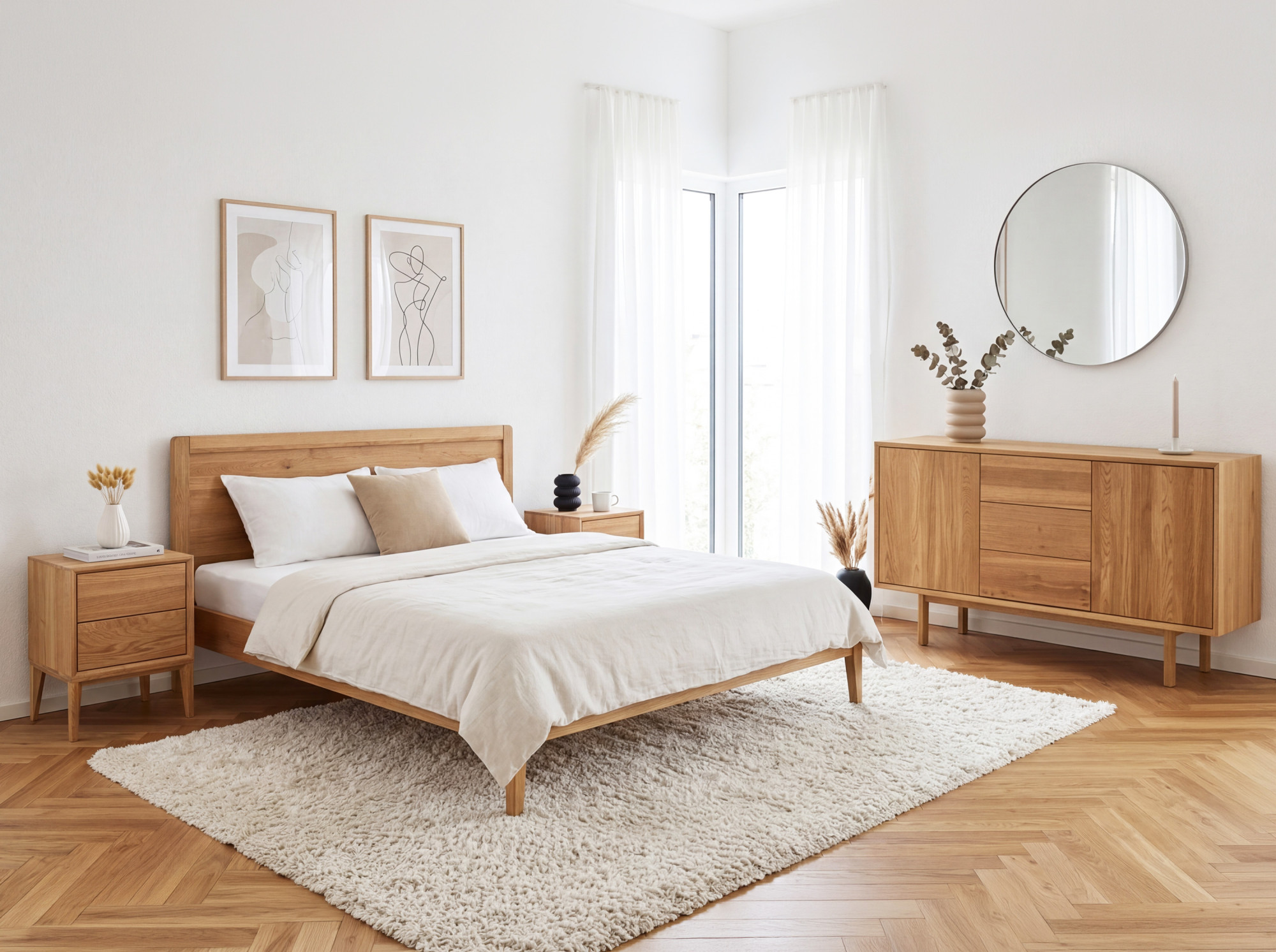 - Skandinavischer Stil mit schrägen Eichenbeinen