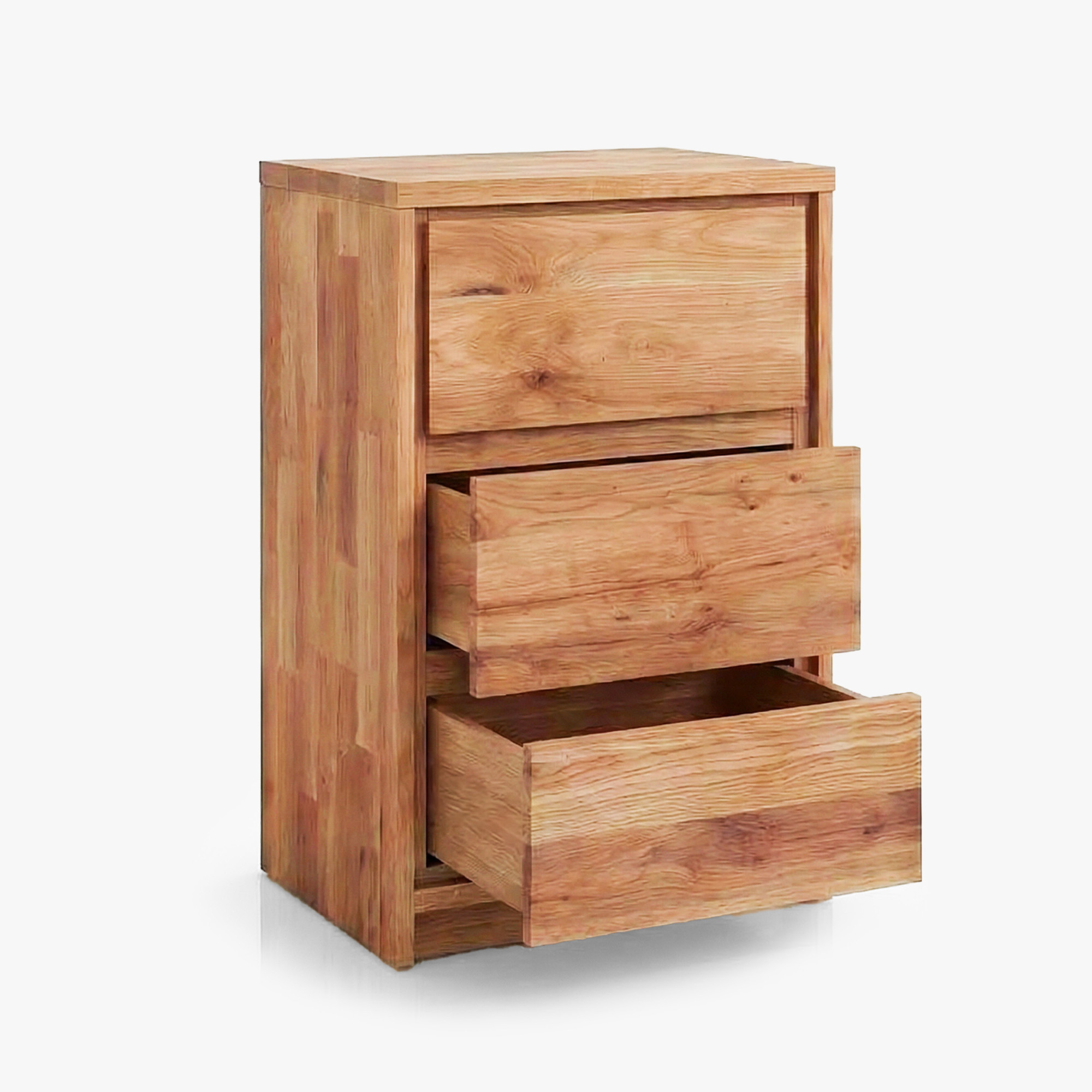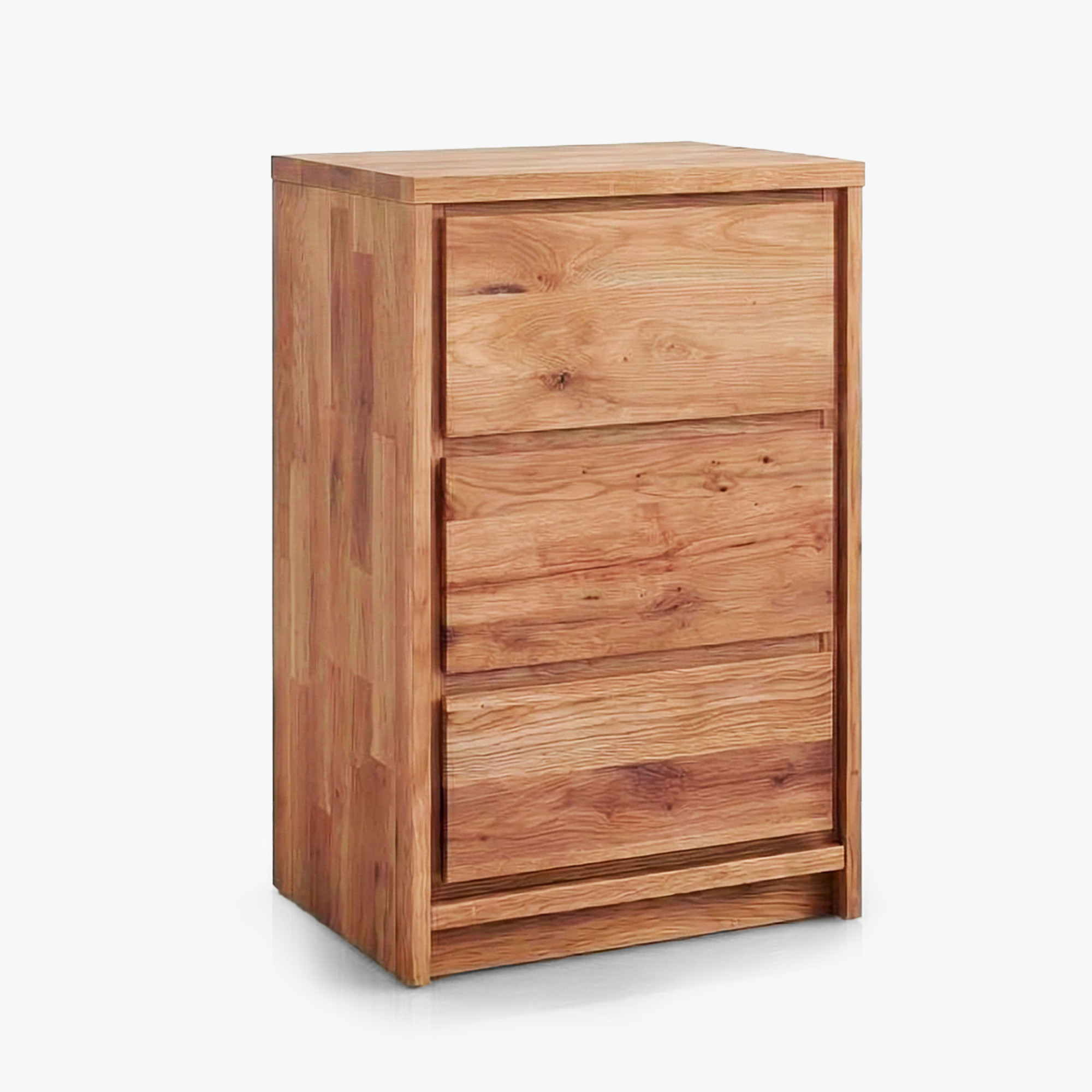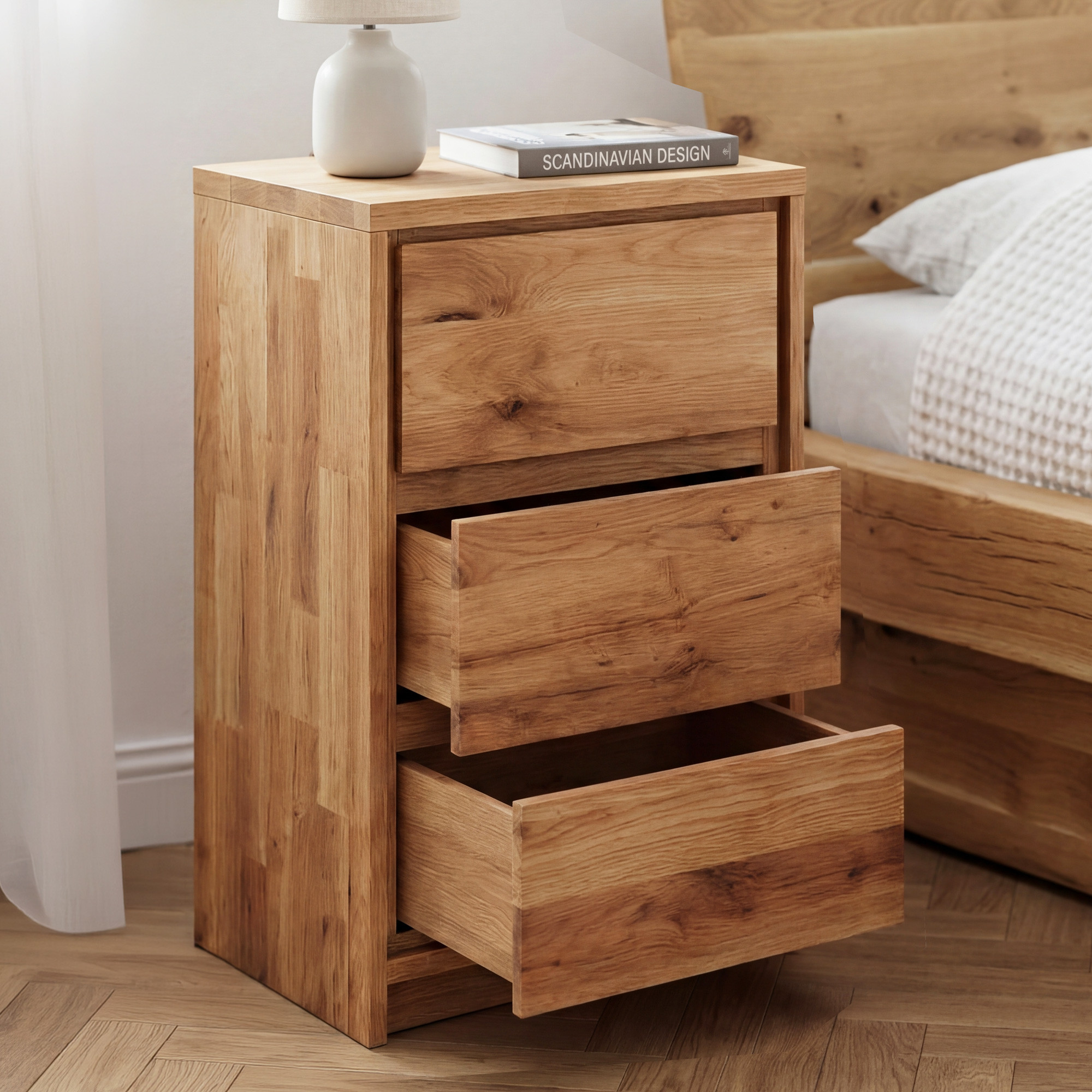 Eiche Nachttisch Oregon aus Wildeiche – 3 Schubladen, Höhe 76 cm