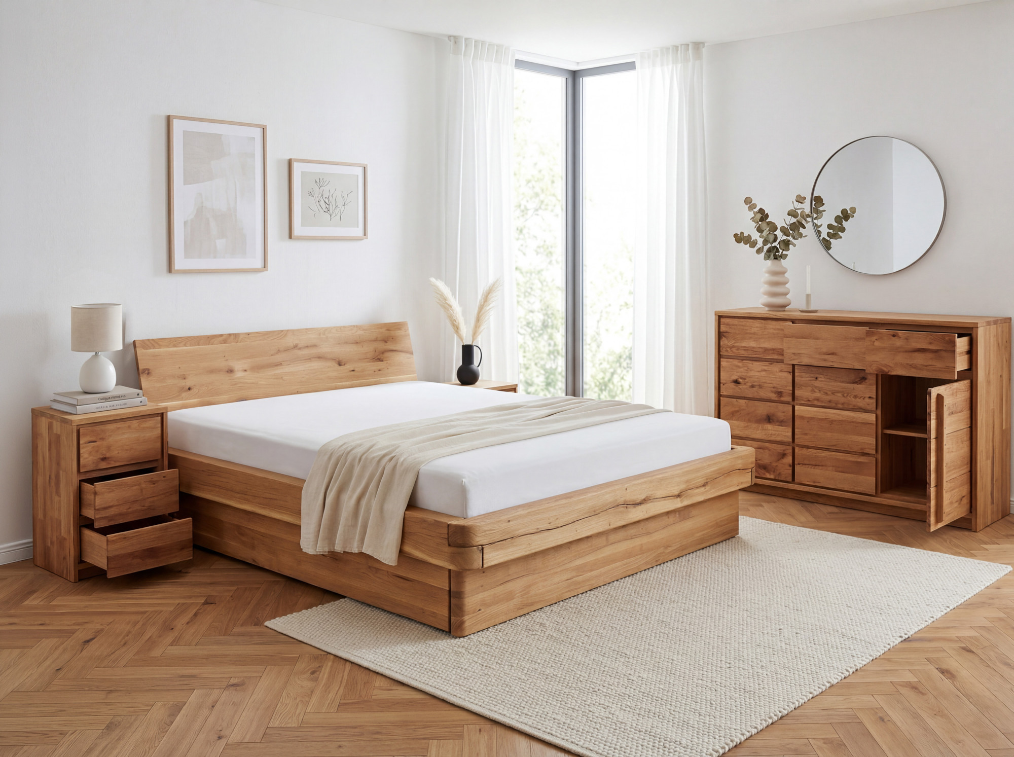 Ein Nachttisch aus Wildeiche ist eine Investition in Qualität, die Generationen überdauert. Der rustikale Charakter des Holzes bringt natürliche Wärme und Authentizität in Ihr Schlafzimmer, die keine Imitation ersetzen kann. Unser Unternehmen liefert Möbel seit 1993 und betreut jährlich über 50.000 zufriedene Kunden in der gesamten EU. Die Möbel liefern wir mit eigenem Transport direkt aus dem Lager bis zu Ihnen nach Hause – standardmäßig in CZ, SK, HU, AT und PL. Auf Wunsch organisieren wir gegen Aufpreis auch den Transport in höhere Stockwerke. Bestellen Sie diesen praktischen Nachttisch noch heute!