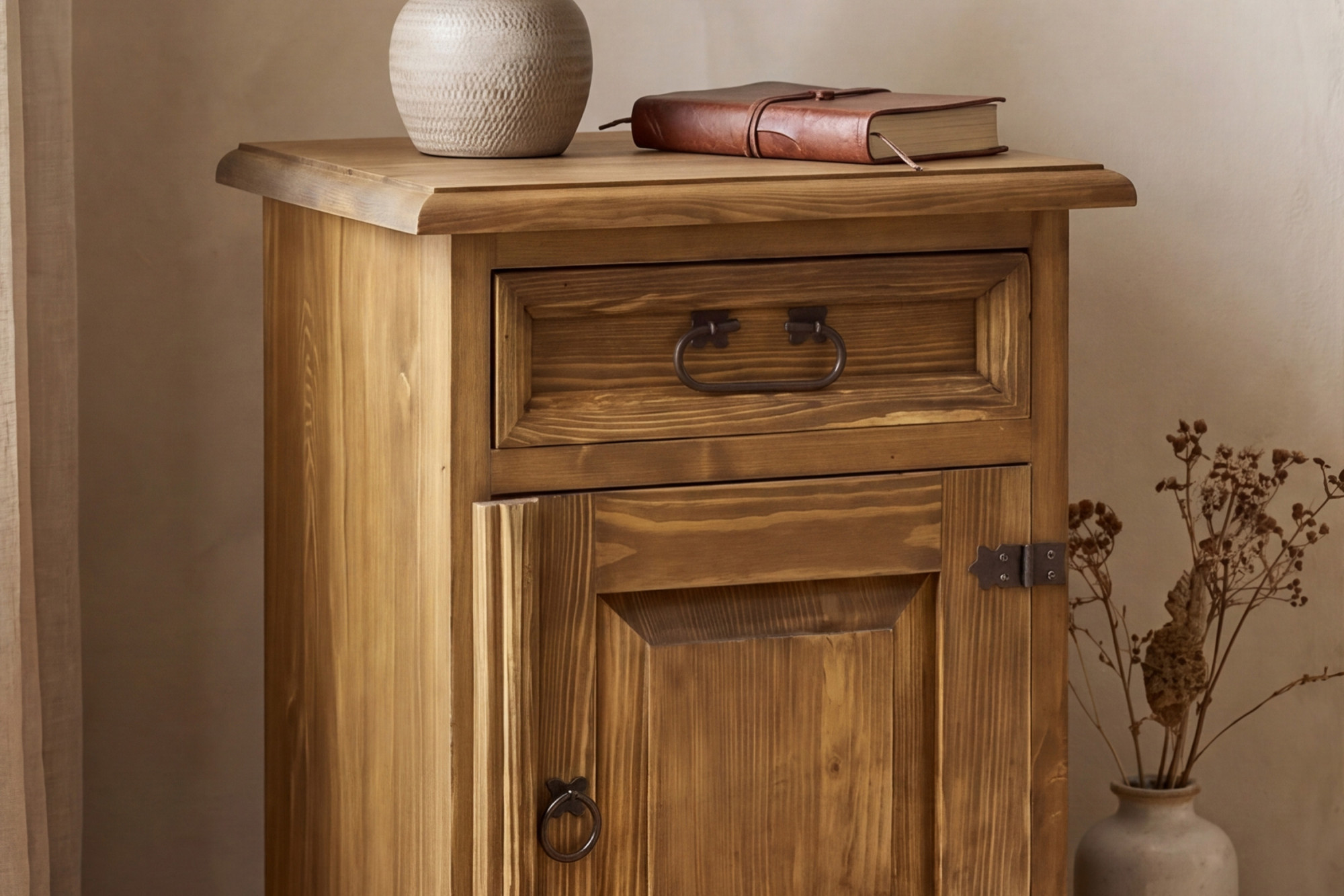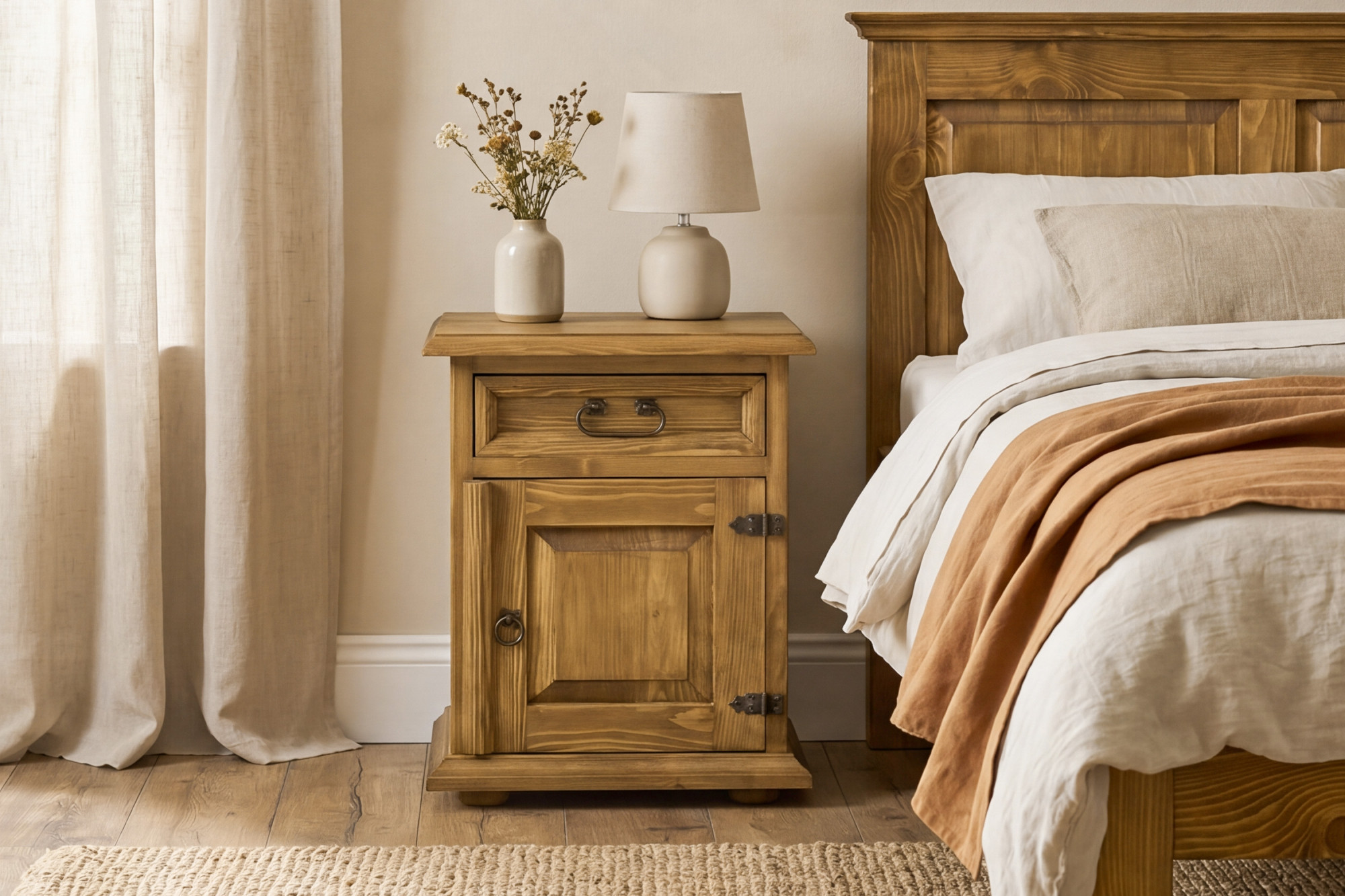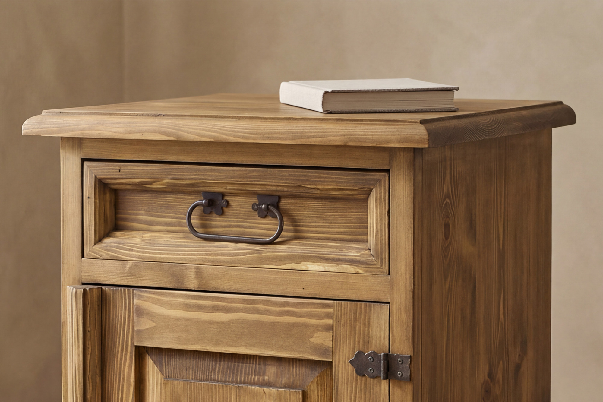 Nachtkommode im Landhausstil – massives Kiefernholz, Honigwachs, Serie Landhaus