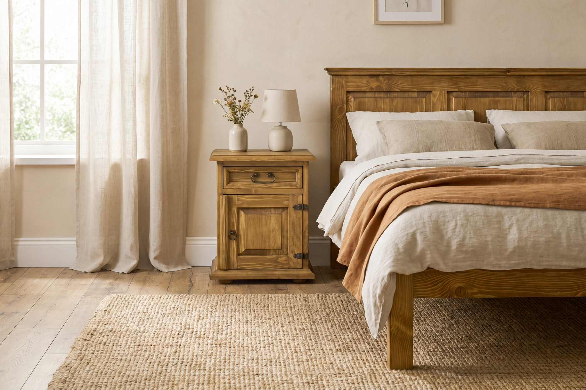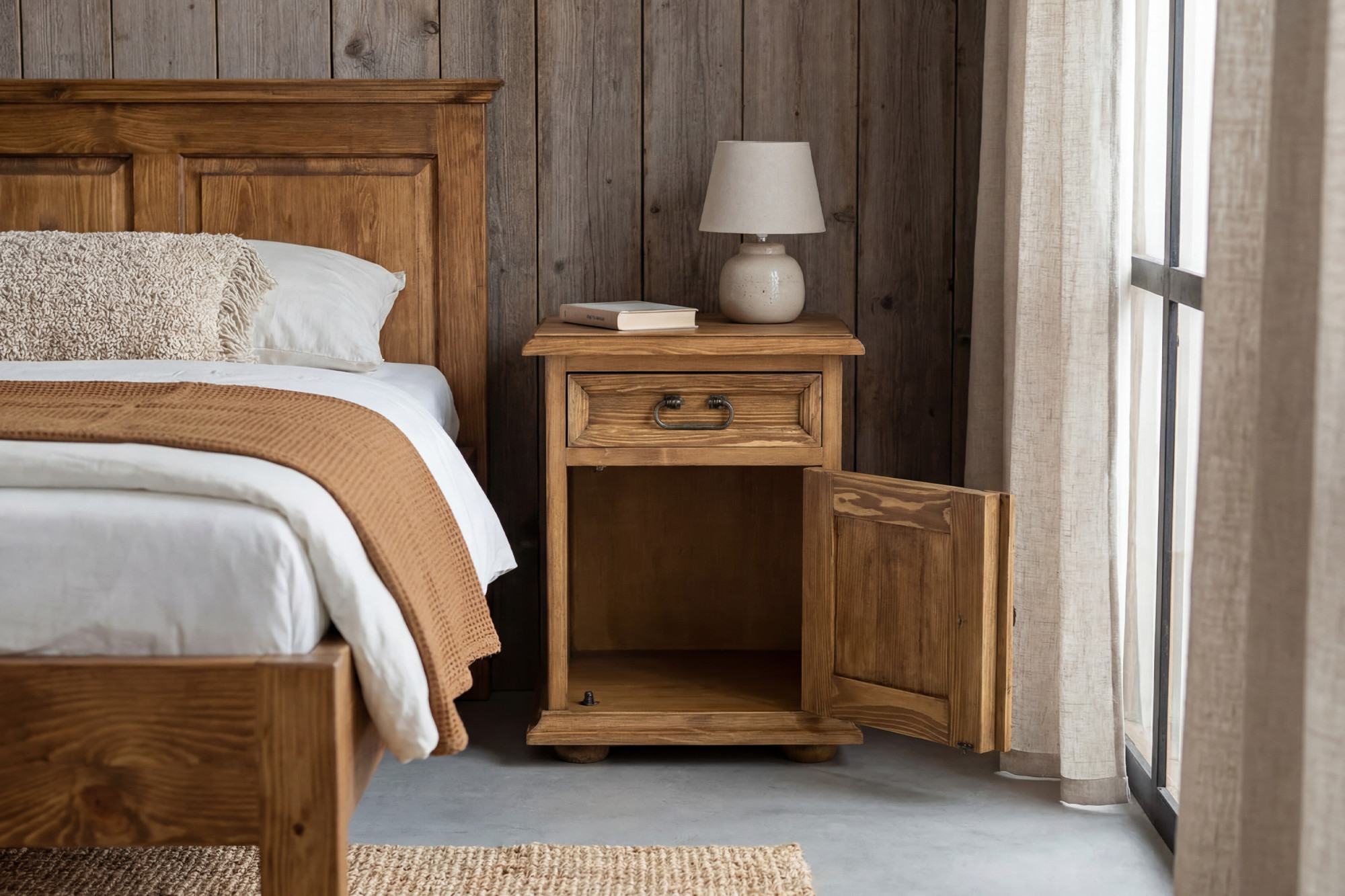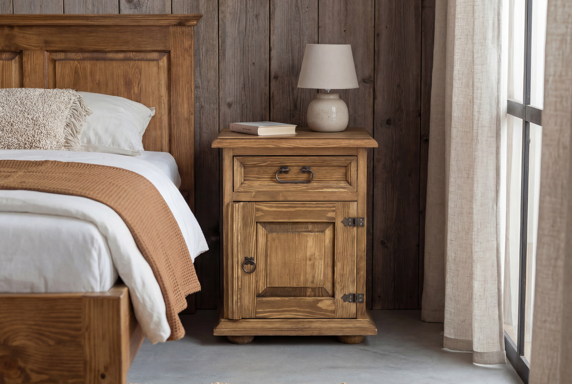 Nachtkommode im Landhausstil – massives Kiefernholz, Honigwachs, Serie Landhaus