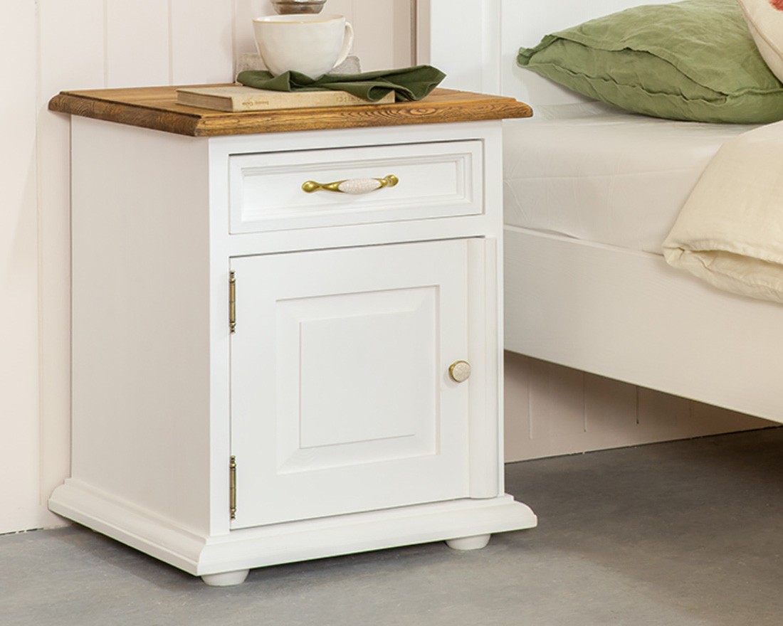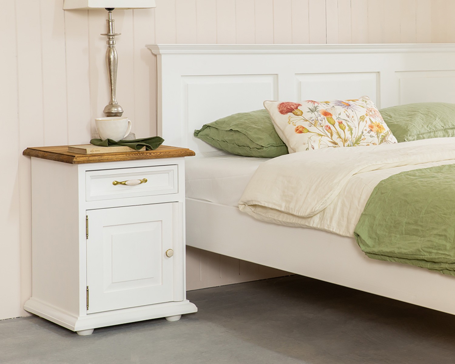 Der Nachttisch Provence ist ein unverzichtbares Accessoire zu dem Bett im gleichen Stil. Kein Schlafzimmer kommt ohne Kleiderschrank und geräumige Kommode aus! Umgeben Sie sich mit stilvollem und qualitativ hochwertigem Möbel! Aus Ihrem Schlafzimmer wird ein Raum, in dem Sie sich wohlfühlen, in dem Sie sich nach einem langen Arbeitstag bestens erholen und entspannen können. Nicht zuletzt gelingt es Ihnen, einen einheitlich eingerichteten Raum zu schaffen. Die Möbel im Provence-Stil halten Ihnen dank ihrer erstklassigen Qualitäten über viele Jahre die Treue!
