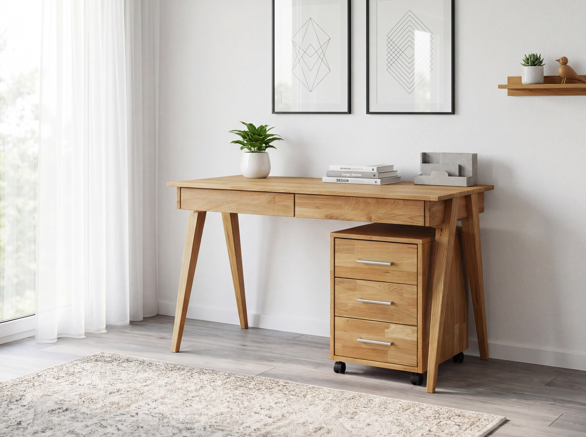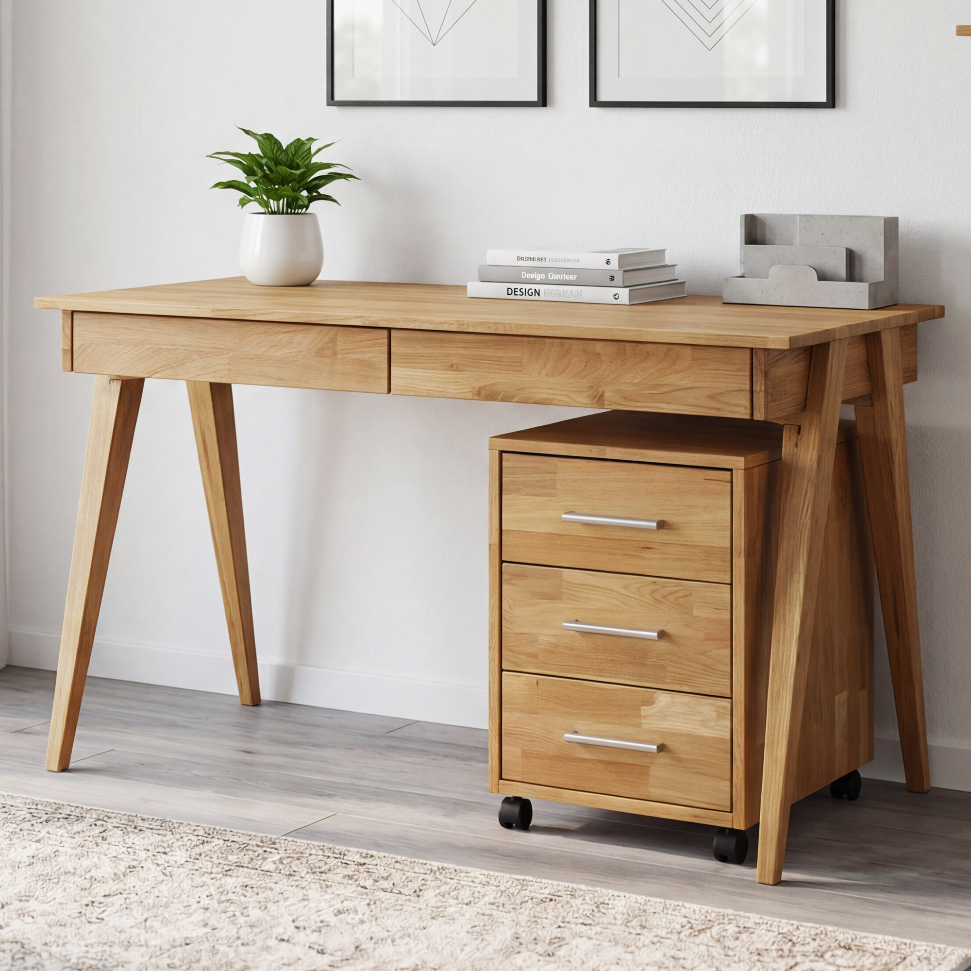 PC-Tisch aus Eichenholz Modell Katowice mit zwei Schubladen