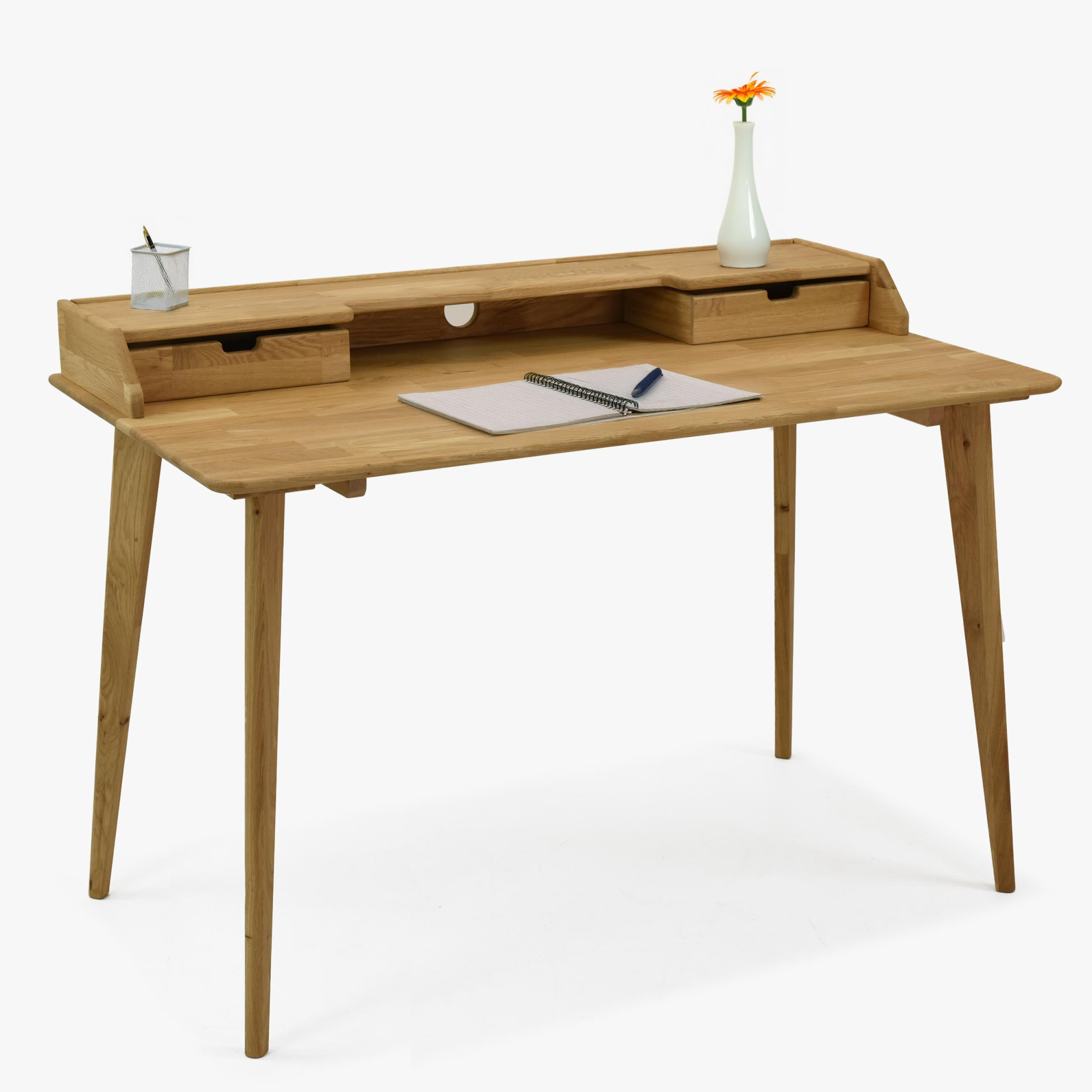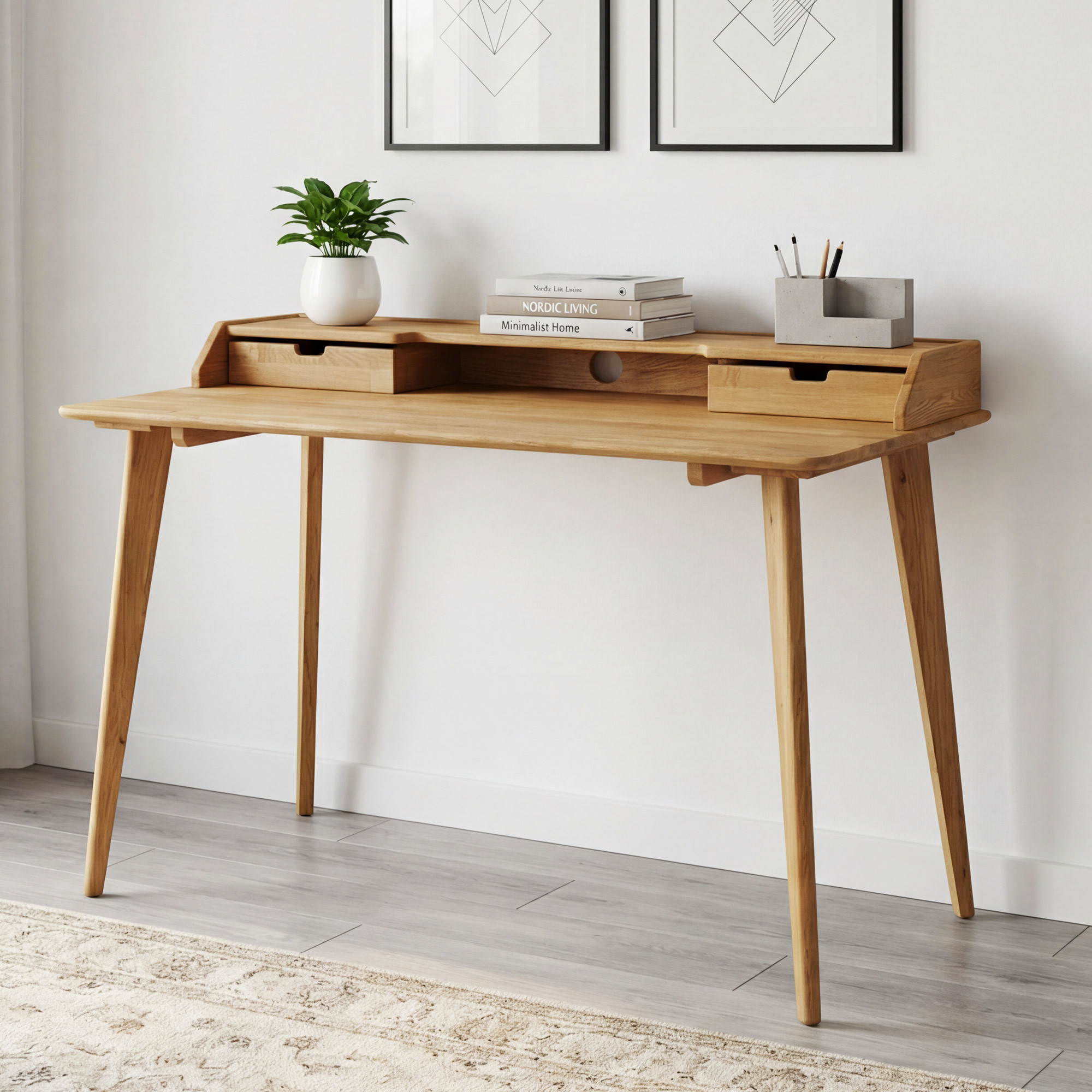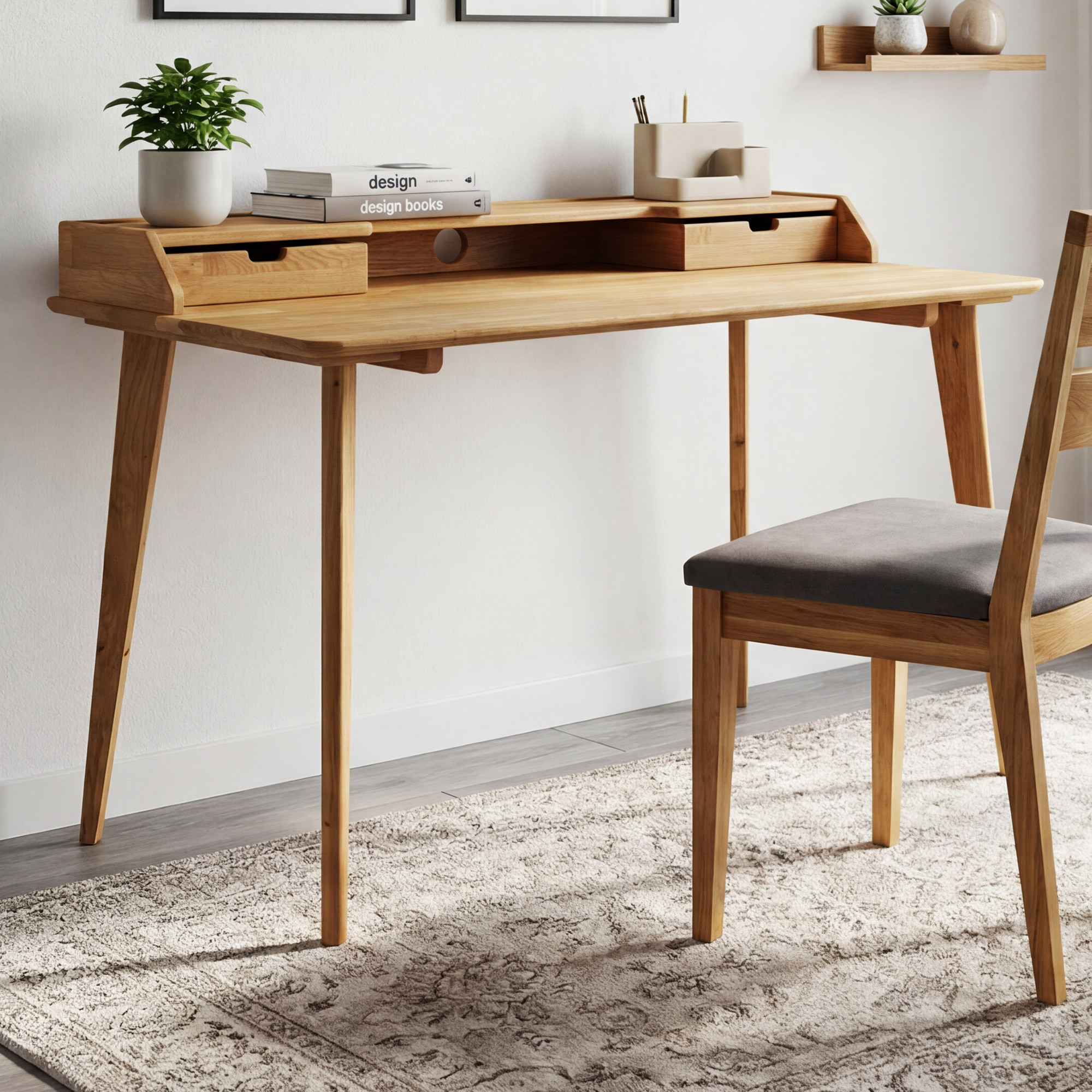 PC-Tisch aus Eichenholz mit 2 Schubladen, Naturholz