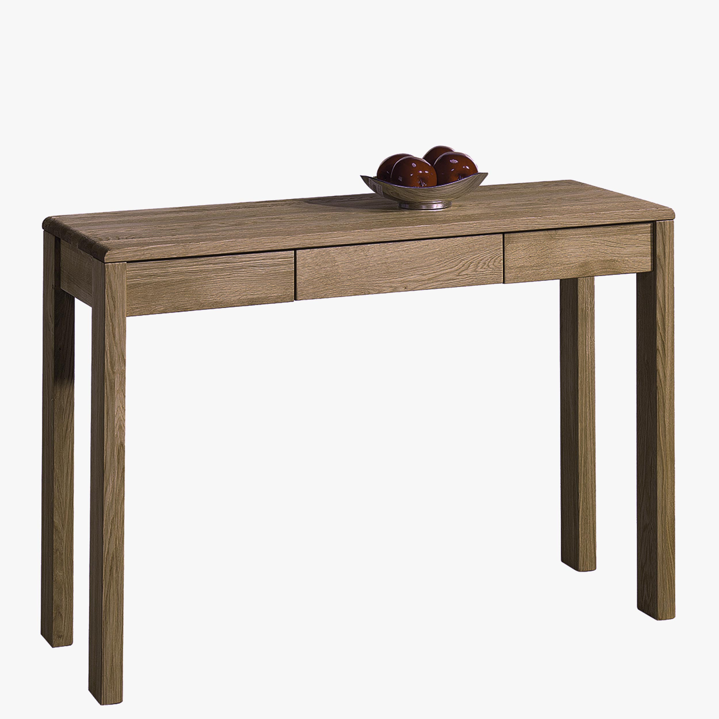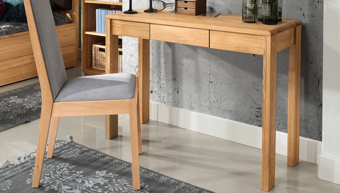 Luxuriöser PC-Tisch, gefertigt aus massivem Wild-Eichenholz, ist ein geschickter Helfer mit wunderschönem Design und erstklassiger Verarbeitung. Der elegante Arbeitstisch hat ideale Maße für die Platzierung eines Notebooks oder Computers. Die Arbeitsfläche mit den Maßen 119 x 45 cm nimmt nicht zu viel Platz im Raum ein, stört nicht und bietet gleichzeitig ausreichend Platz für Ihre Computerarbeit. Er findet sicher auch Verwendung als Abstelltisch im Flur oder als Frisiertisch im Schlafzimmer. Ergänzen Sie ihn einfach mit einem Spiegel oder einem kleinen Handspiegel, und Ihre Frau wird begeistert sein!