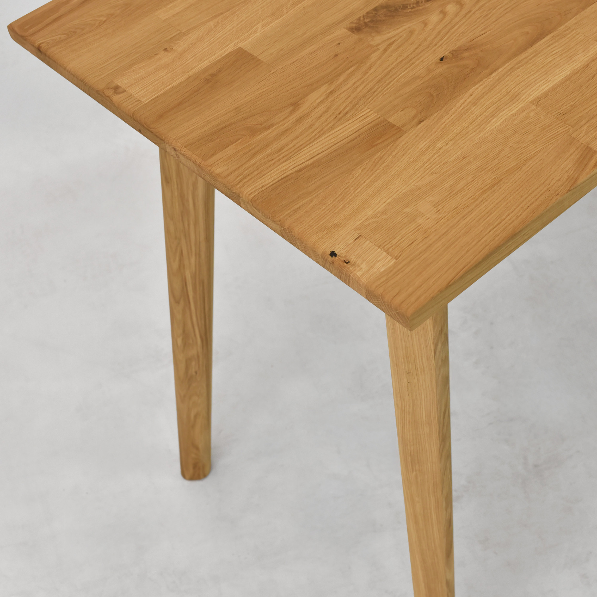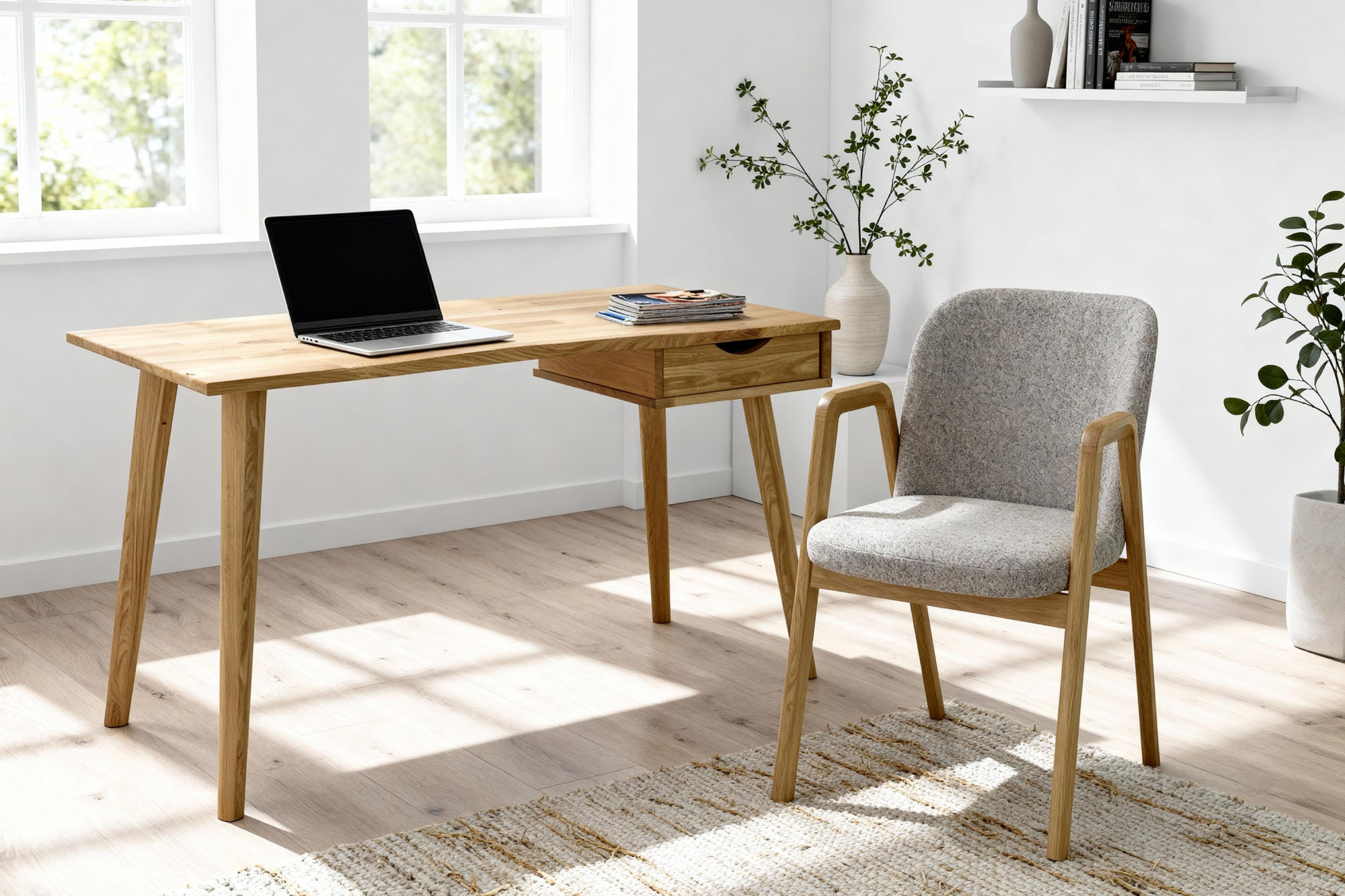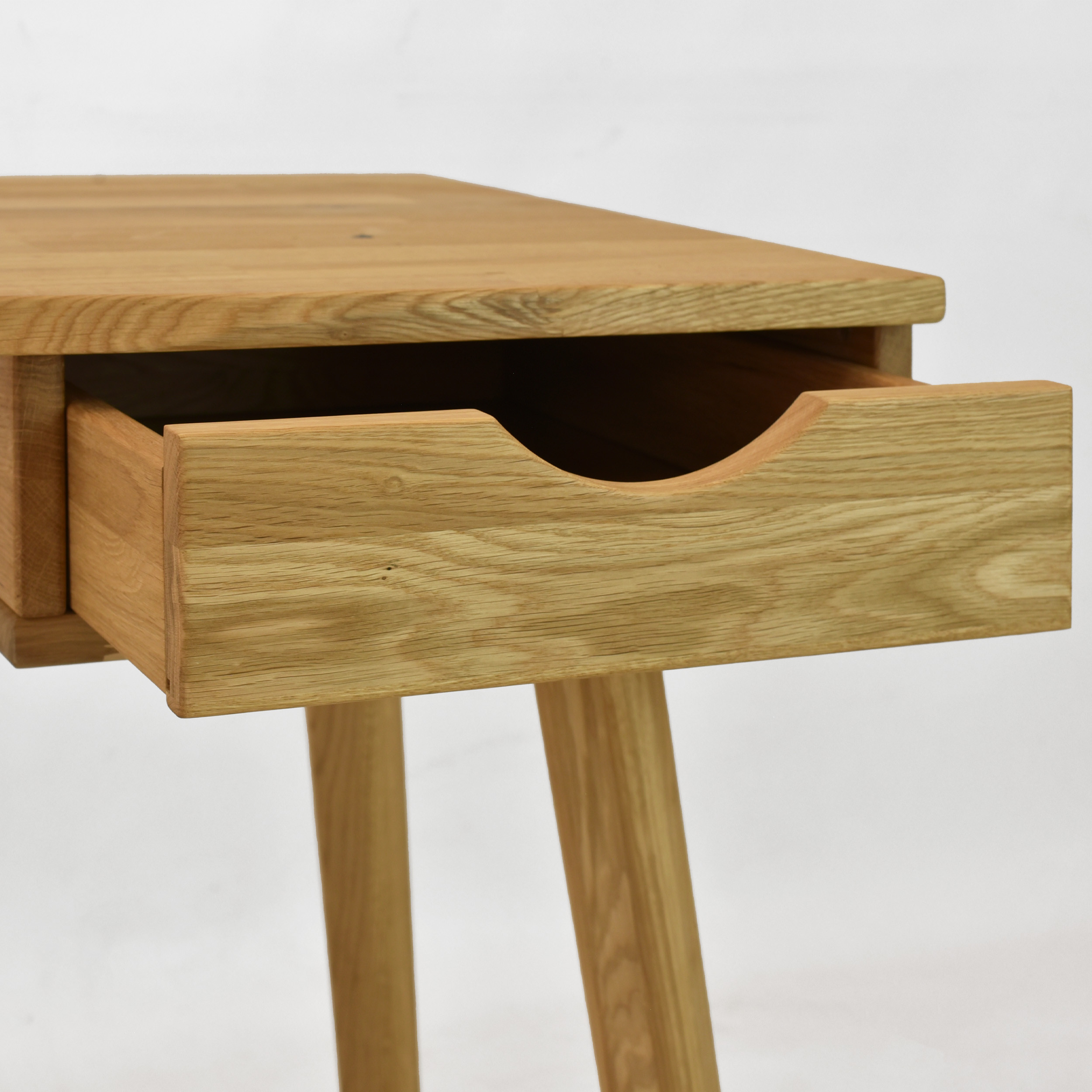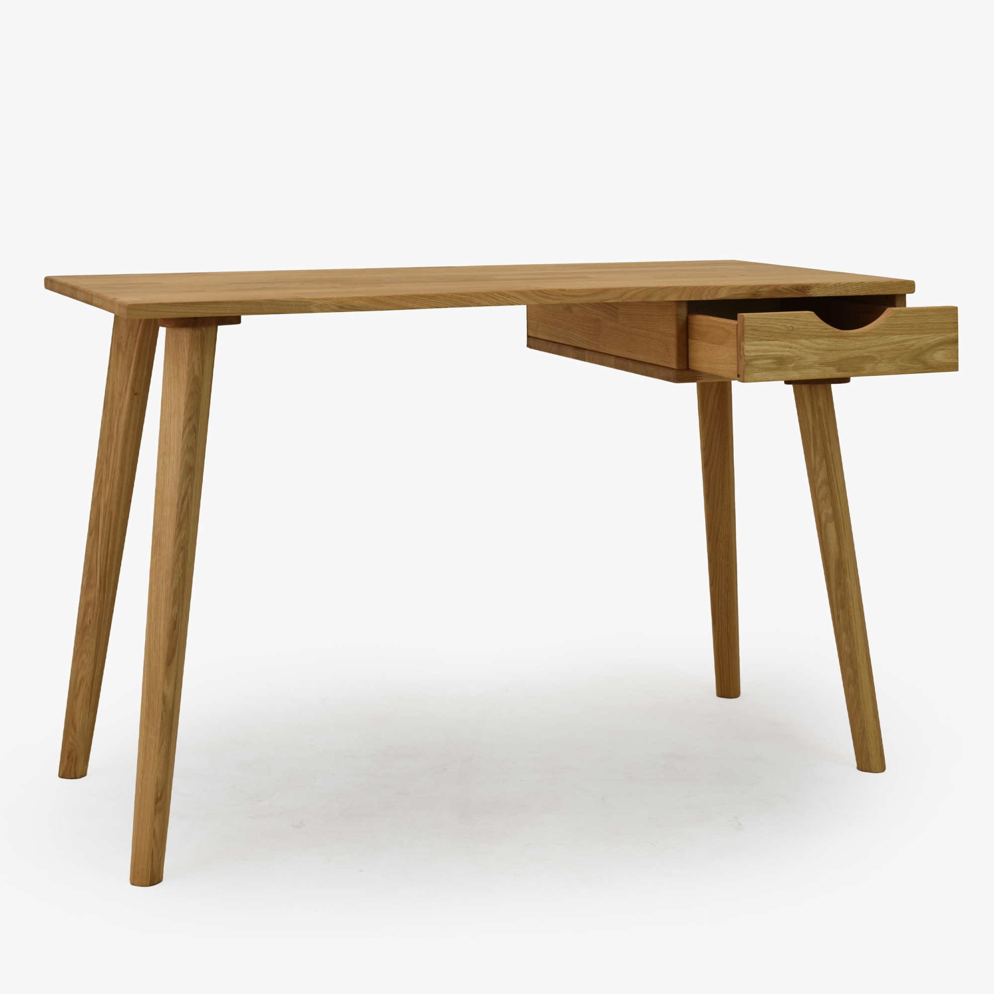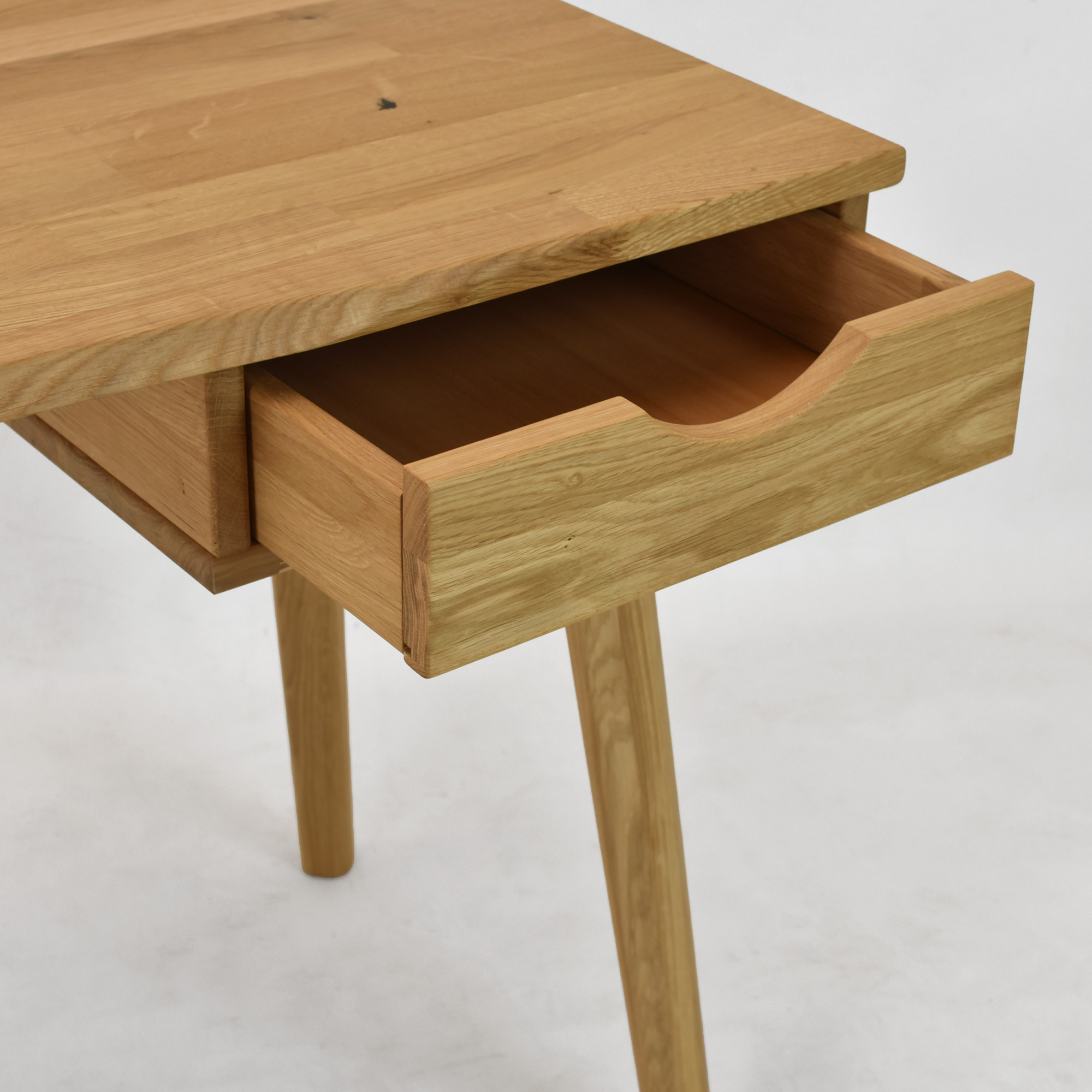 Eleganter Eichen-Schreibtisch Juraj ist die ideale Wahl für alle, die Funktionalität, modernes Design und die Qualität von Naturholz verbinden möchten. Dieser Schreibtisch ist aus massivem Eichenholz in natürlichem Farbton Eiche natur gefertigt, das mit hochwertigem Öl behandelt wurde, welches für lange Haltbarkeit, Abriebfestigkeit und einfache Pflege sorgt. Dank seines minimalistischen Designs passt er perfekt in moderne Wohnungen, Arbeitsecken und Home-Offices. Die praktische Schublade auf der rechten Seite bietet ausreichend Platz zur Aufbewahrung von Dokumenten, Schreibutensilien oder kleinen Accessoires, die Sie immer griffbereit haben möchten.