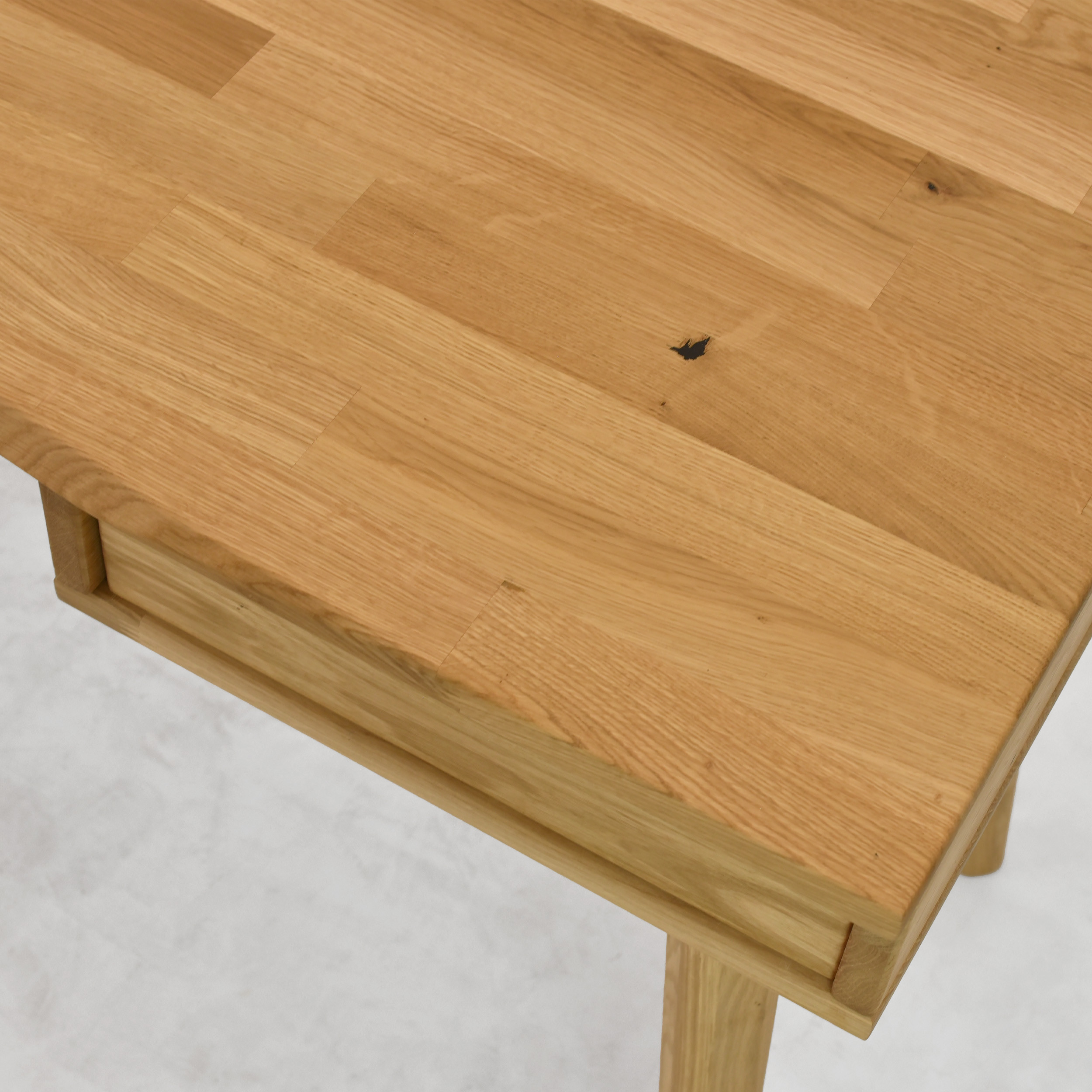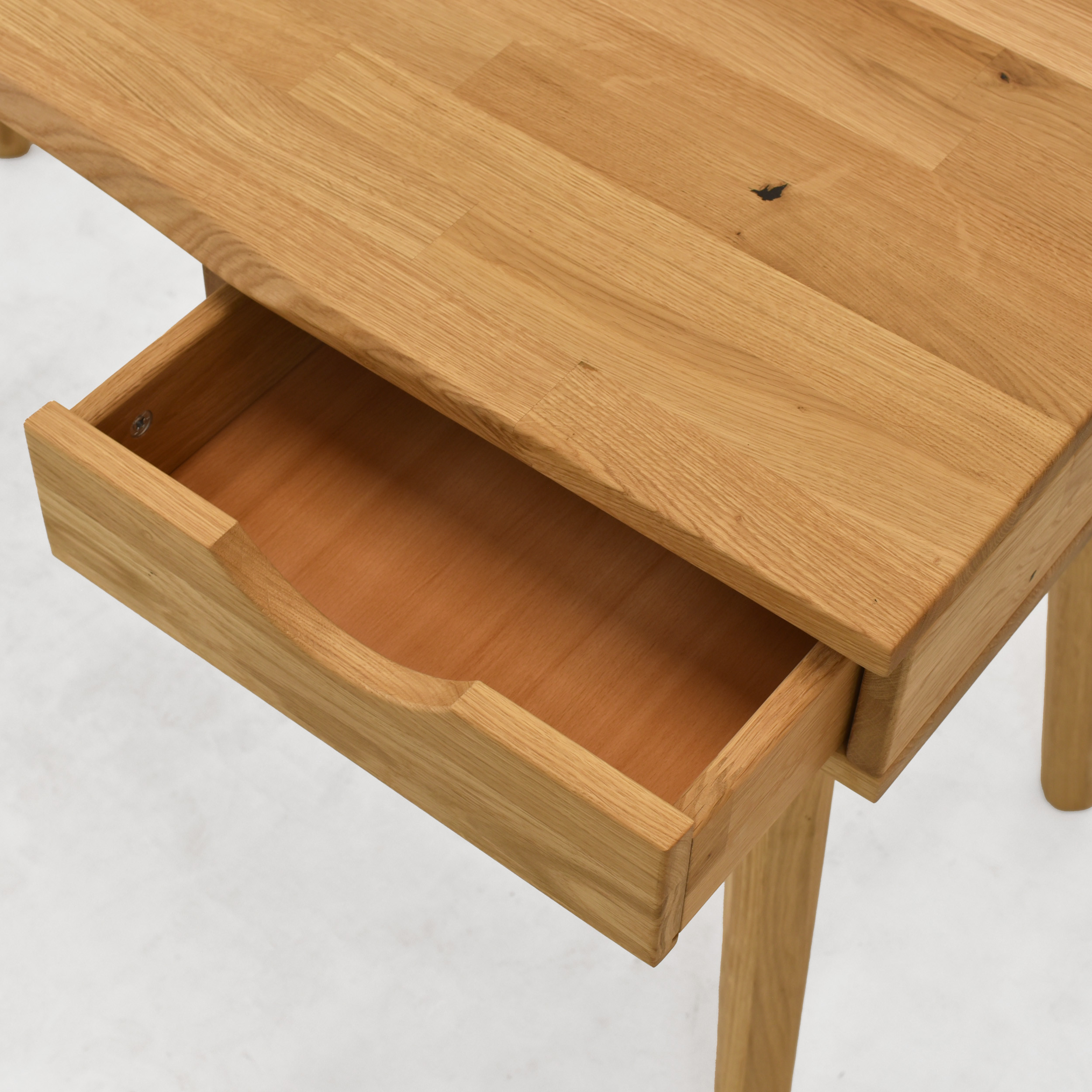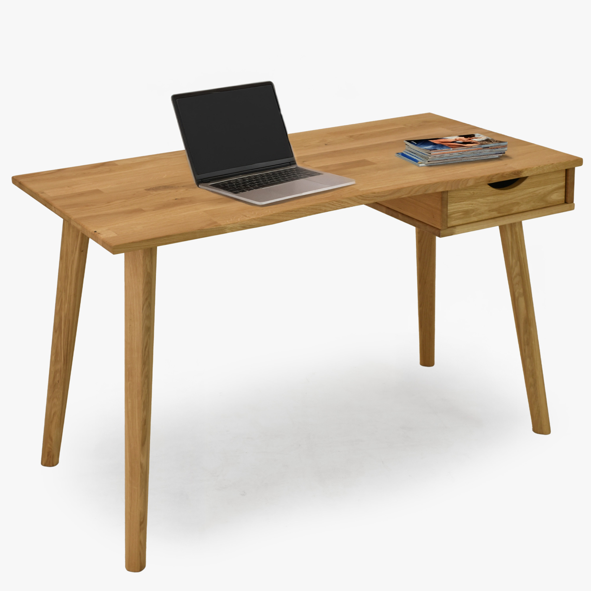 Die Schublade befindet sich auf der rechten Seite des Schreibtisches, was eine praktische Organisation der Arbeitsfläche ermöglicht.