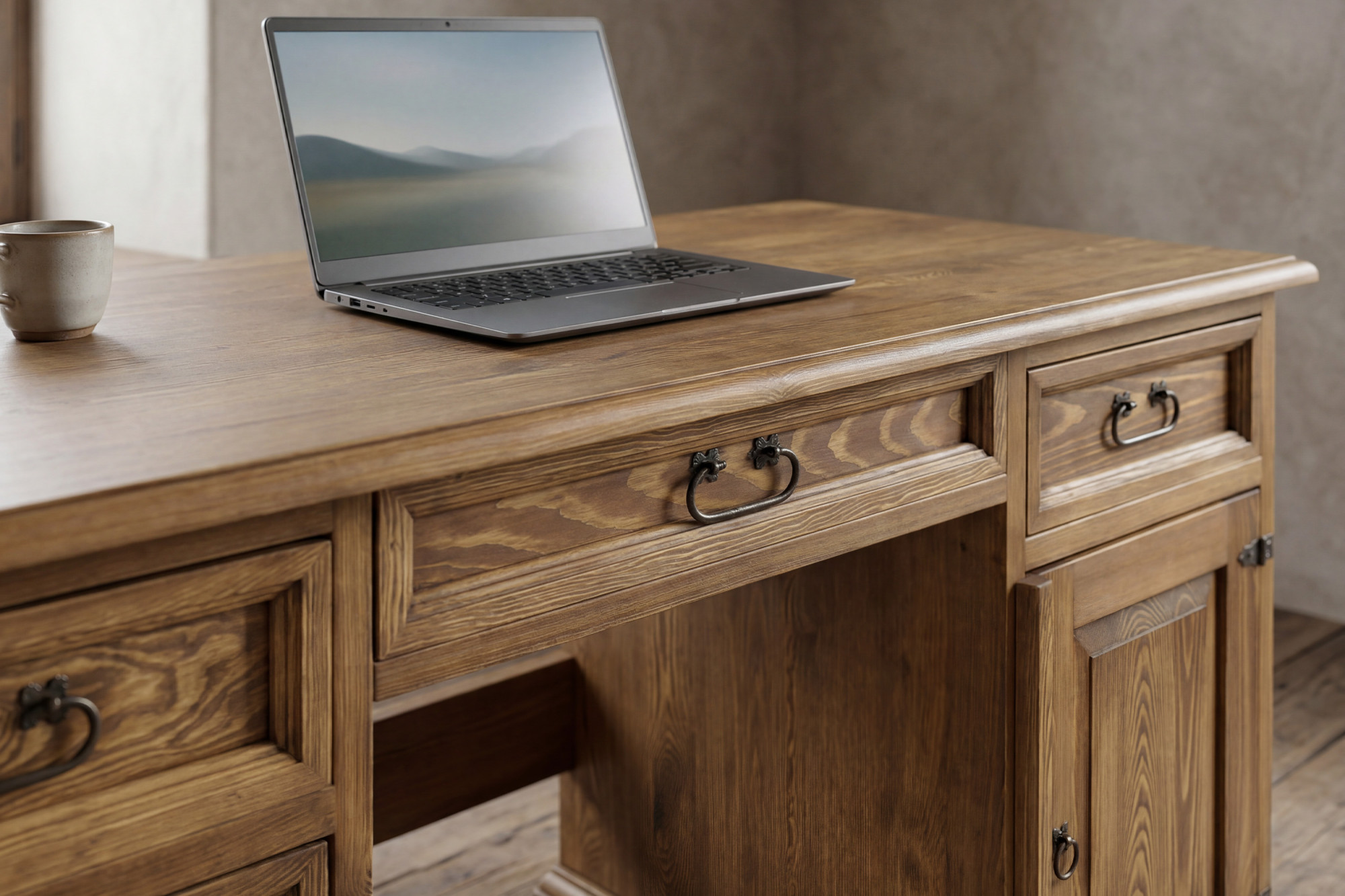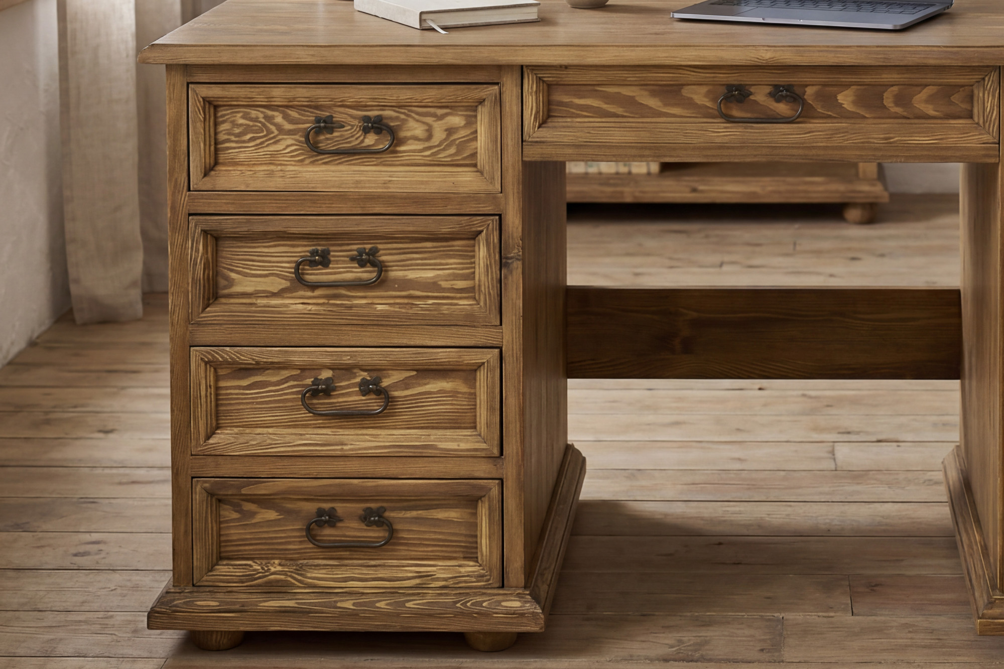 PC-Schreibtisch im französischen Stil – rustikaler Schreibtisch aus massivem Kiefernholz, Serie Venkov