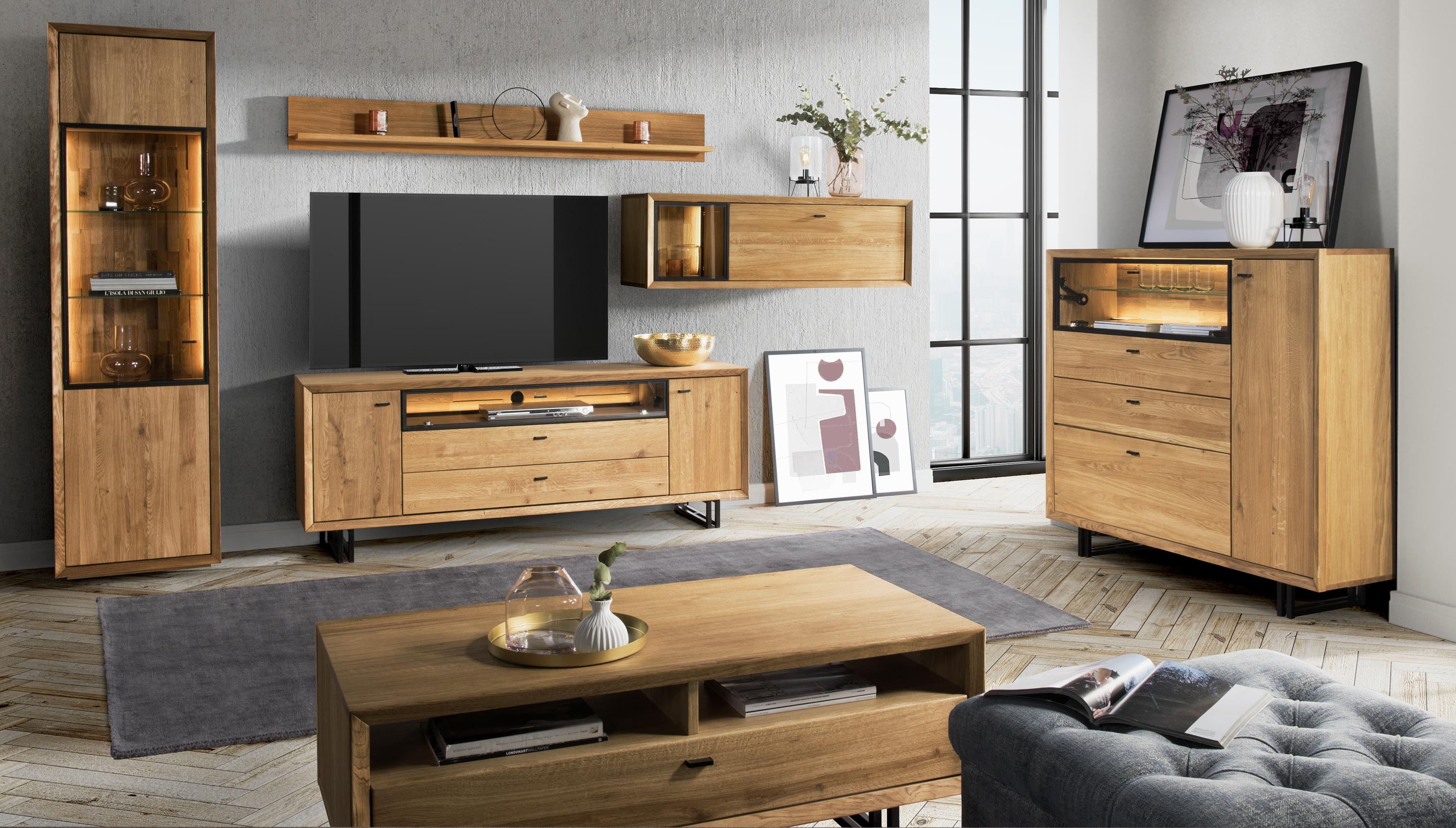 Wirklich exklusiv und designorientiert, das sind die Hauptattribute der Eichenmöbel aus der Kollektion 2020 mit dem Namen VILO. Eichenmöbel Vilo sind vor allem für das Wohnzimmer gedacht, wo Sie innerhalb der Möbeltypen Fernsehschränke, Vitrinen, Regale und einen wirklich stilvollen Couchtisch finden. Das leise Schließen von Türen und Schubladen ist selbstverständlich.
