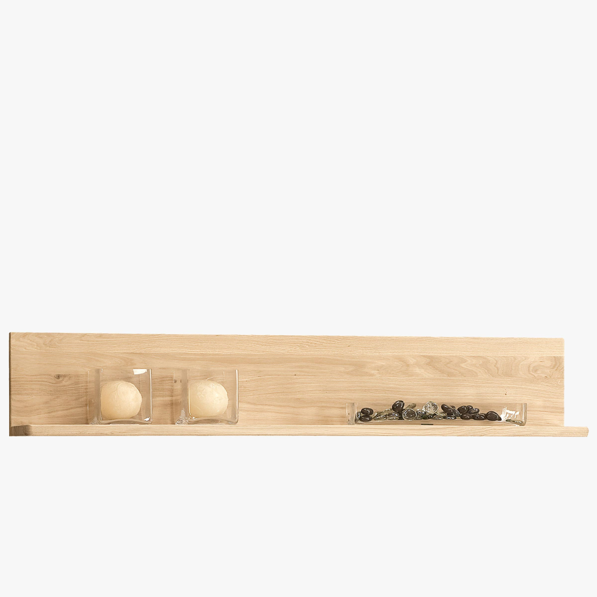 Massives Eichenregal mit einer Länge von 128 cm bietet ausreichend Platz für Ihre Lieblingsbücher, stilvolle Dekorationen und Souvenirs von Ihren Urlaubsreisen. Es hat ein einfaches, aber schönes und elegantes Design, das eine leere Wandfläche gemütlich macht und eine schöne Ergänzung zu einer Wohnkombination darstellt.