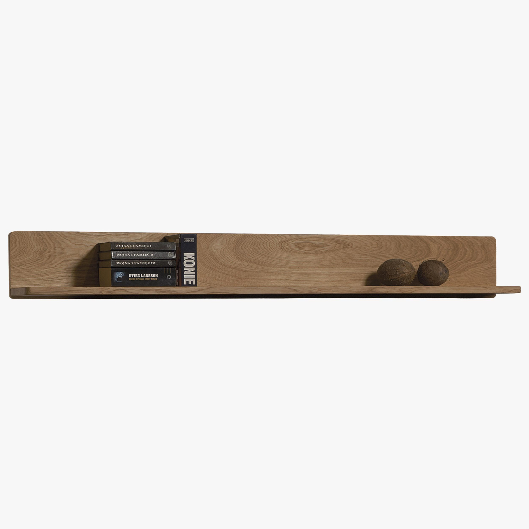 Erweitern Sie die Ablagefläche mit massivem Eichenregal! Es füllt nicht nur geschmackvoll die leere Wandfläche aus, sondern bietet auch Ablagefläche für die Präsentation von Familienfotos oder einer Reihe von Büchern Ihres Lieblingsautors. Auf dem Regal mit der Breite von 174 cm stellen Sie wirklich viele Dekorationen aus. Die Rückwand schützt die Wand vor Beschädigungen durch ausgestellte Gegenstände.