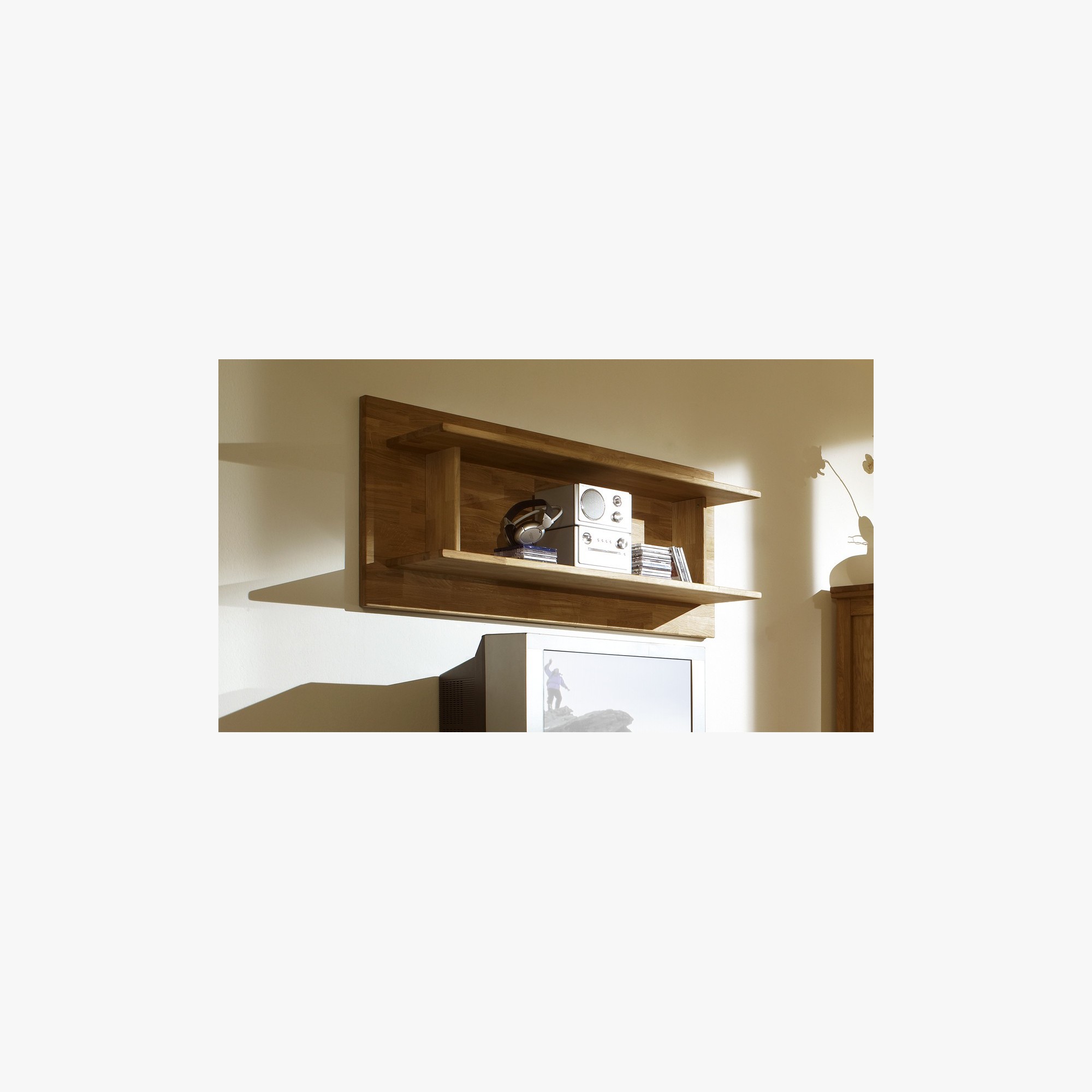 Eichen Wandregal aus Massivholz hängend naturfarben robust modern