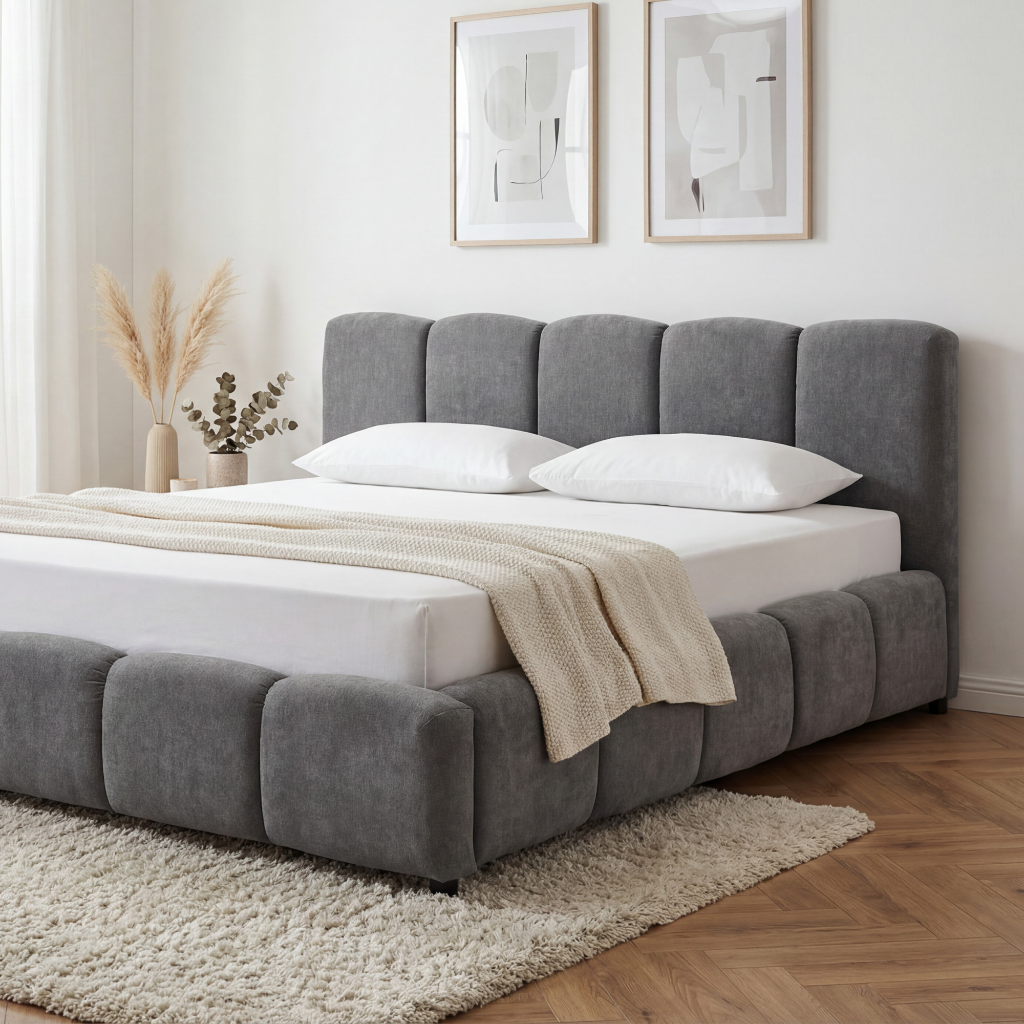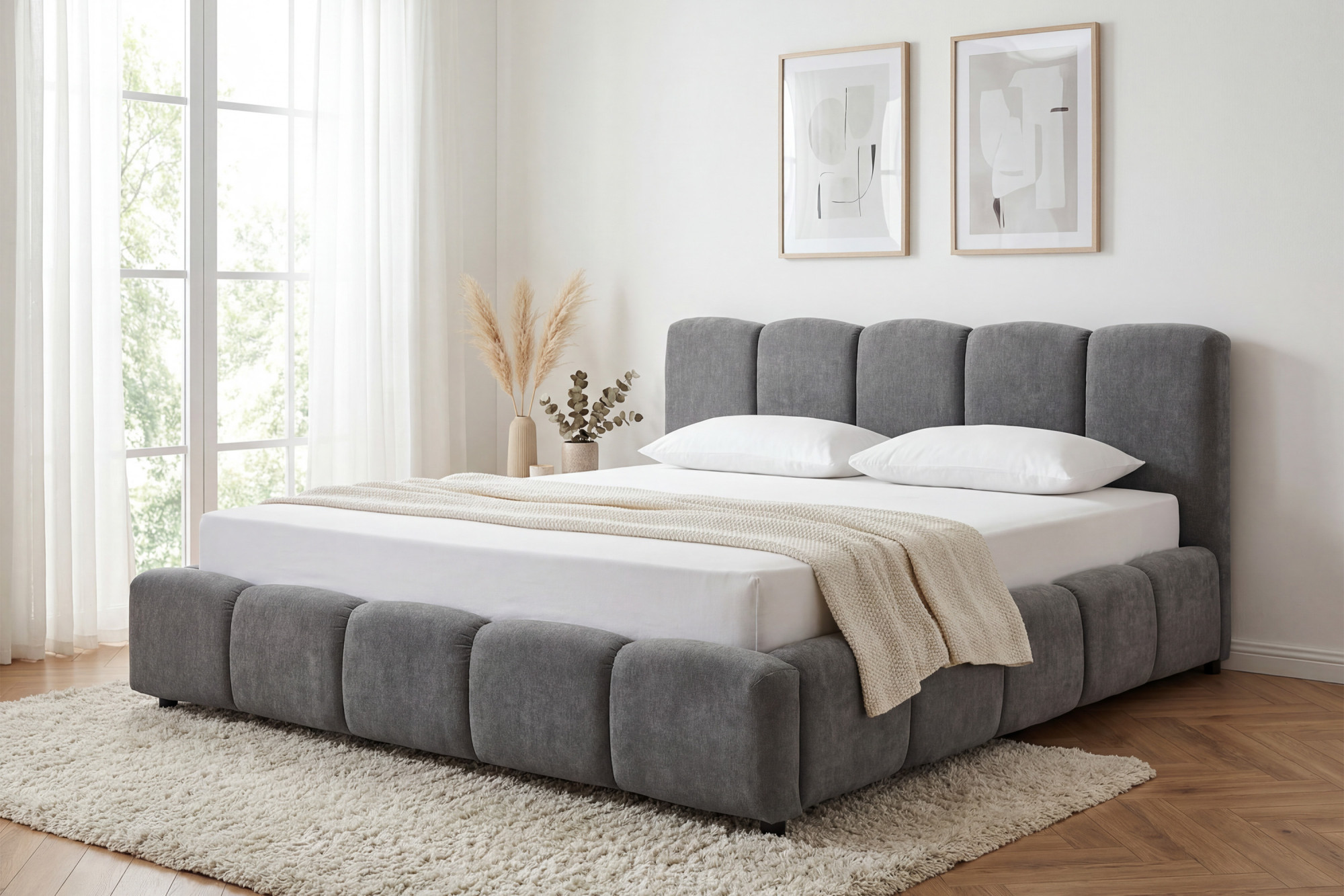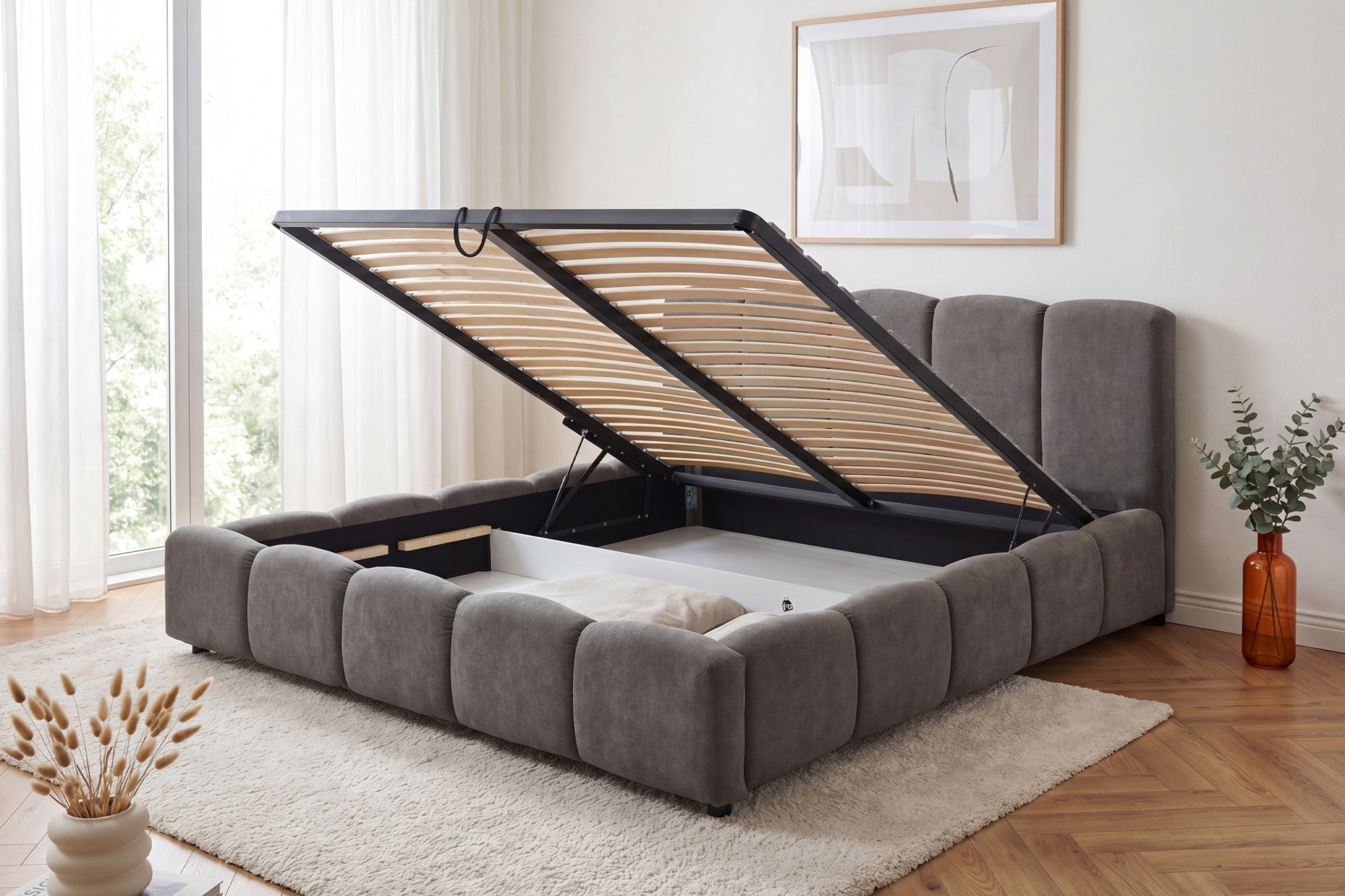 Polsterbett Nubi 180 x 200 cm mit Stauraum – grauer Stoff Casa