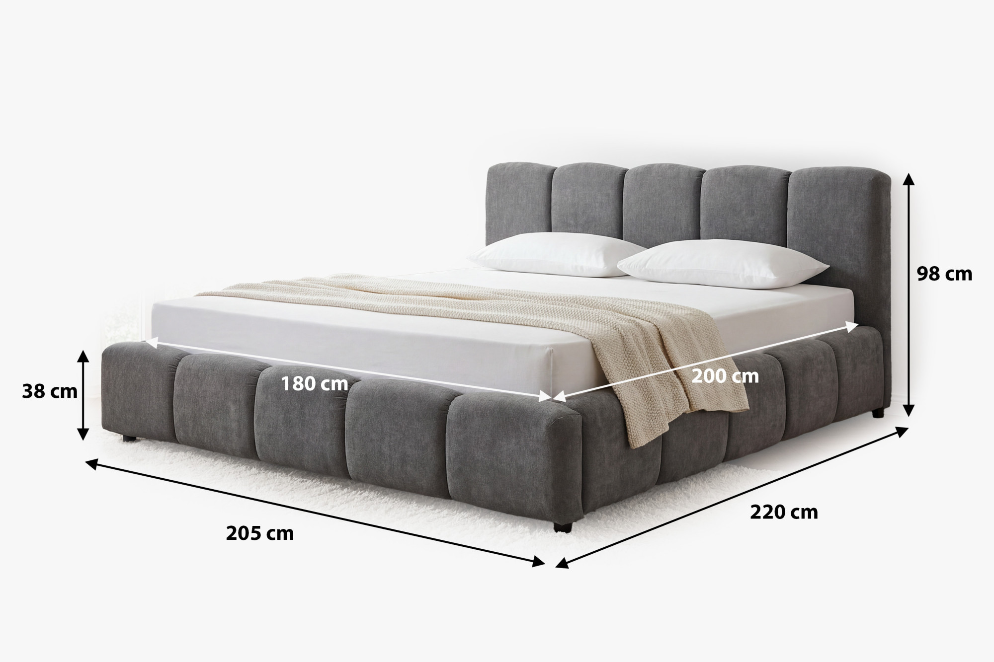 - Bettmaß: 180 x 200 cm