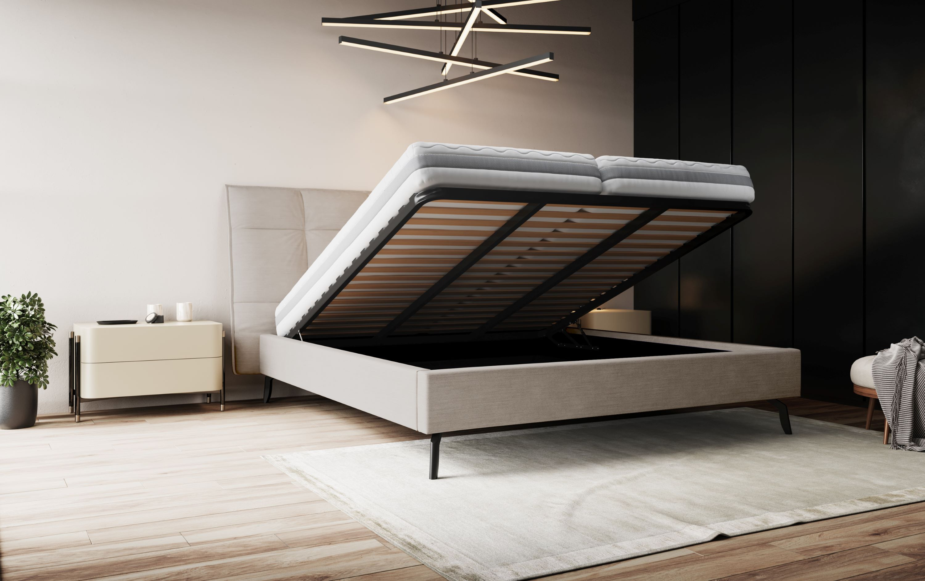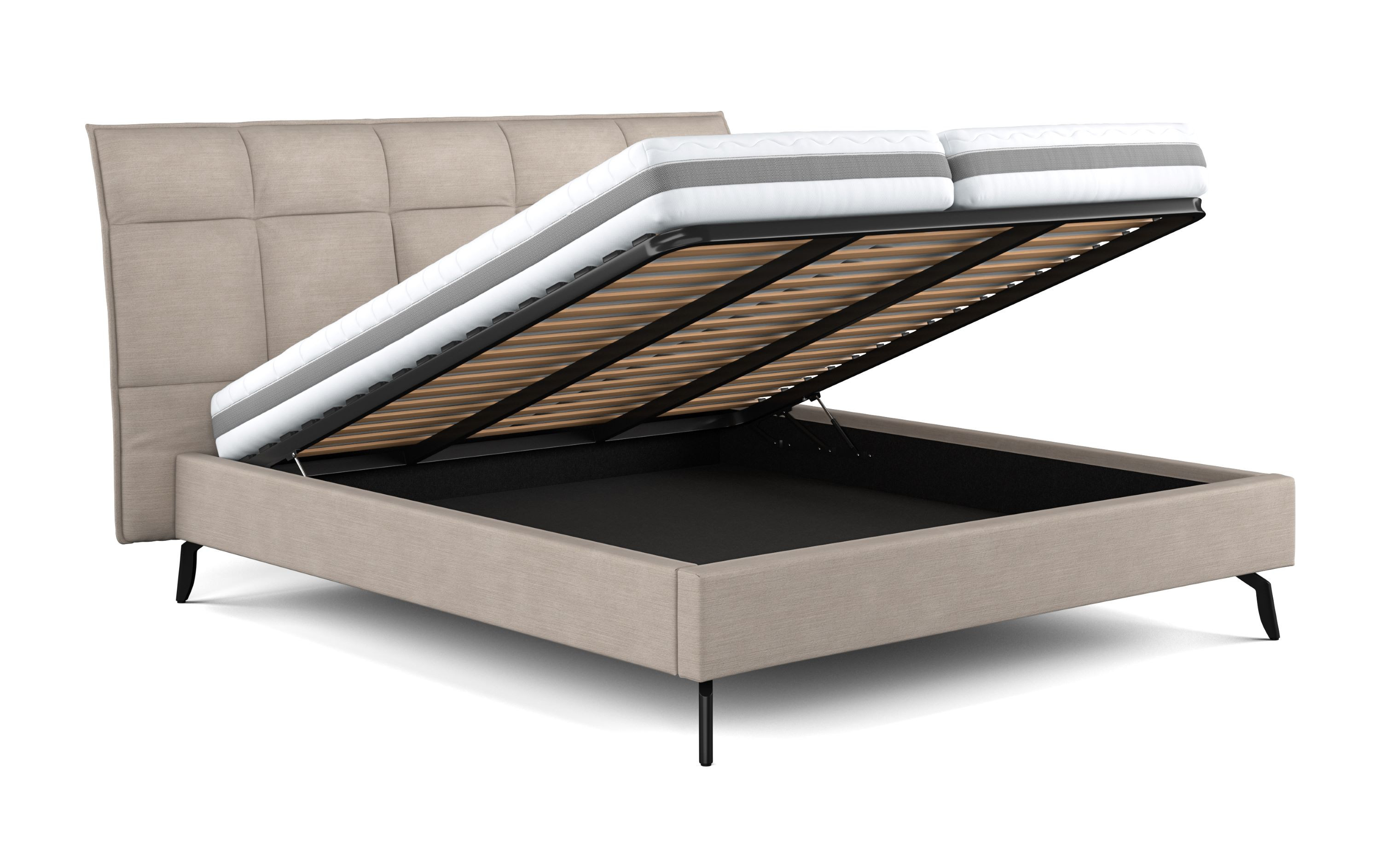 Stoffbett 160x200 cm mit Stauraum und schwarzen Metallfüßen