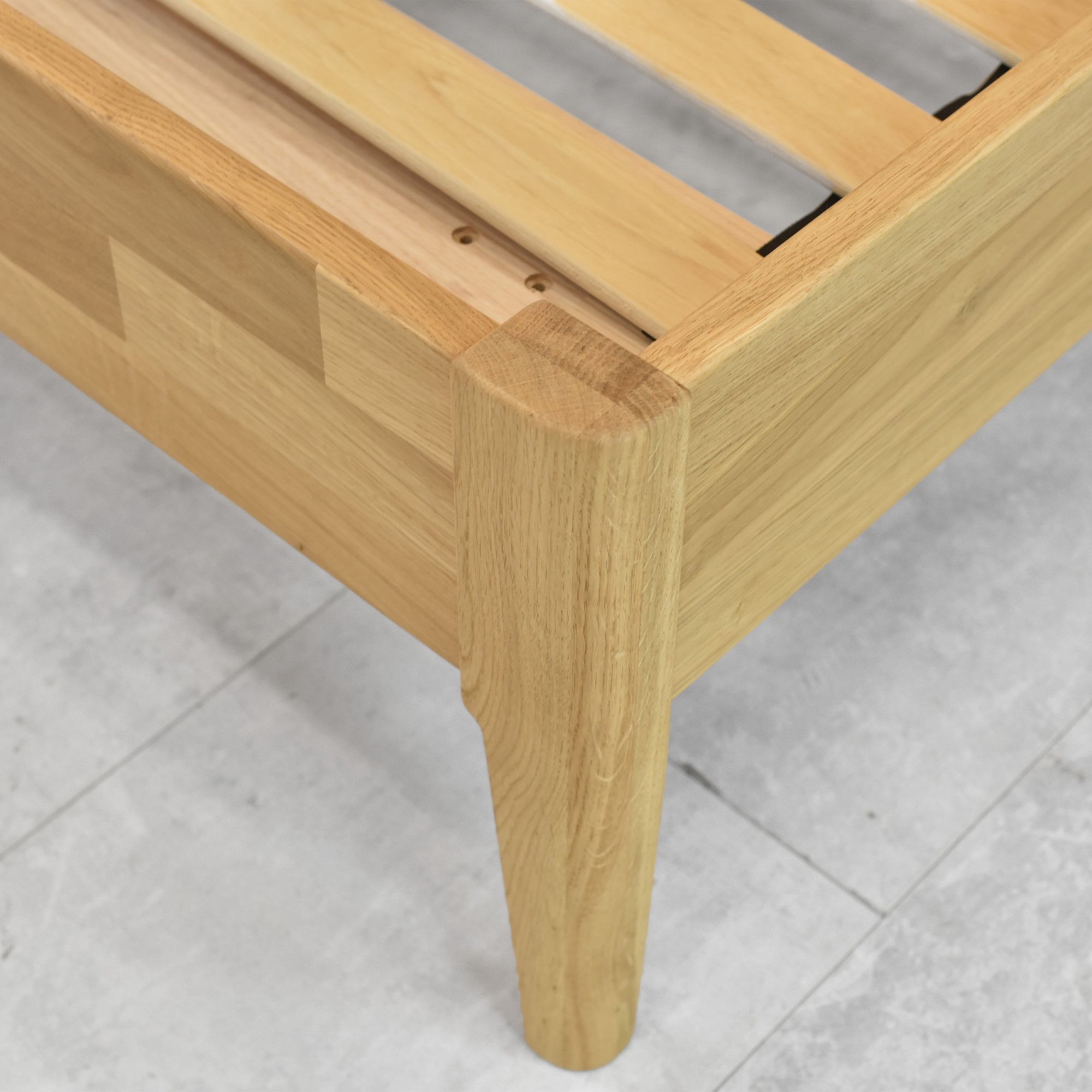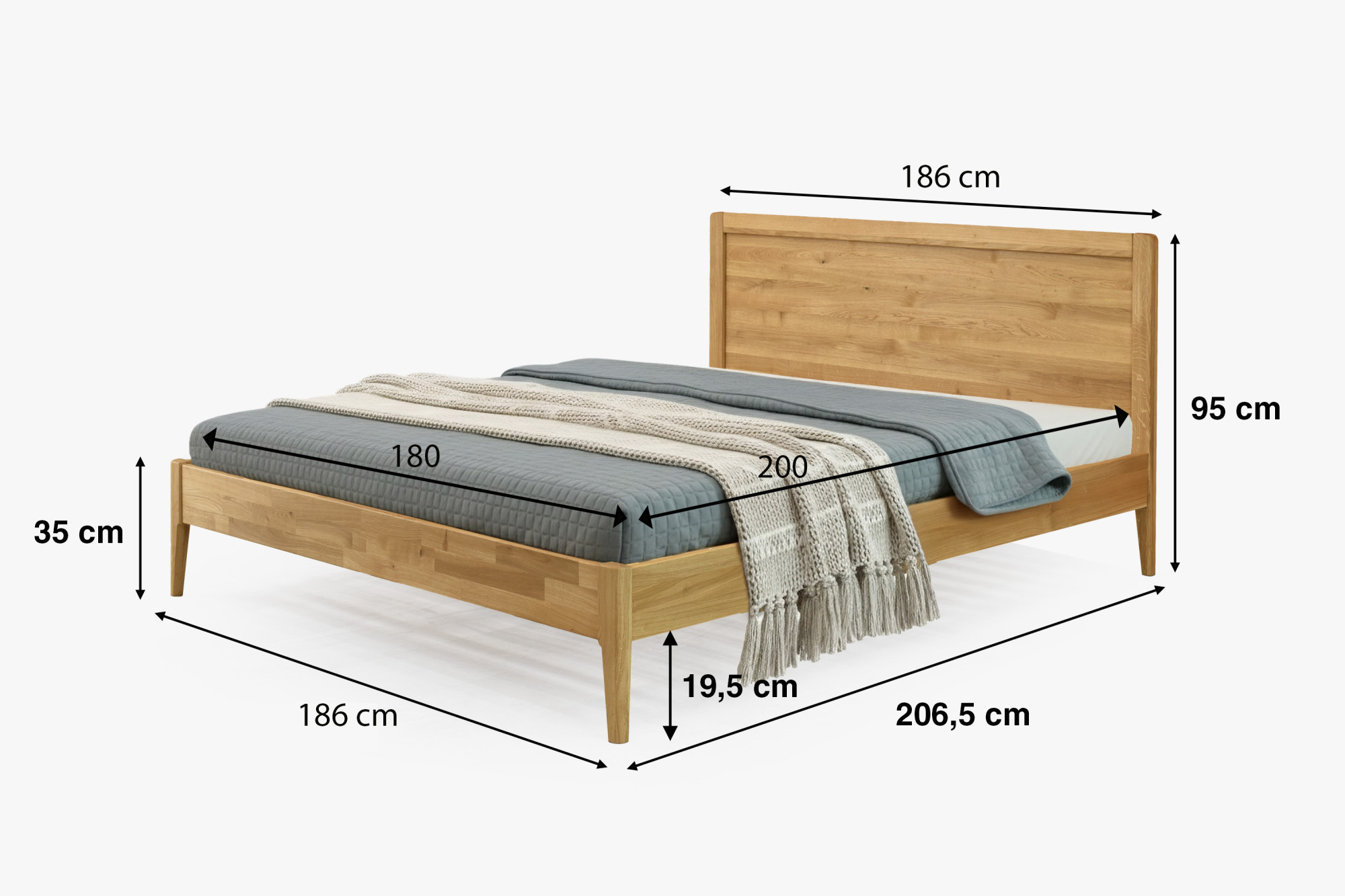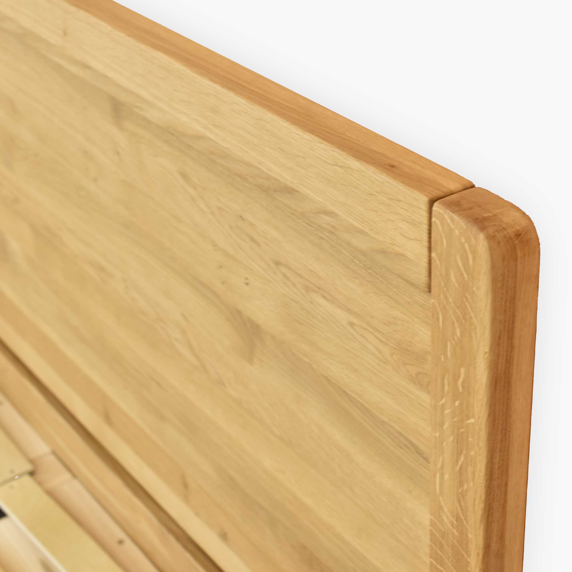 Eichenholz ist ein robustes Naturmaterial mit FSC-Zertifizierung, die eine umweltfreundliche Herstellung garantiert. Das Bett lässt sich problemlos mit weiteren Möbeln aus Eiche kombinieren, um ein harmonisches Gesamtbild im Schlafzimmer zu erzeugen. Die empfohlene Belastbarkeit des Bettes beträgt 230 kg, wobei die maximale Belastbarkeit pro Person 120 kg beträgt. Als Hersteller legen wir Ihnen zudem einen stabilen Lattenrost aus Holz kostenlos bei, sodass Sie für perfekten Schlaf nur noch eine Matratze benötigen.
