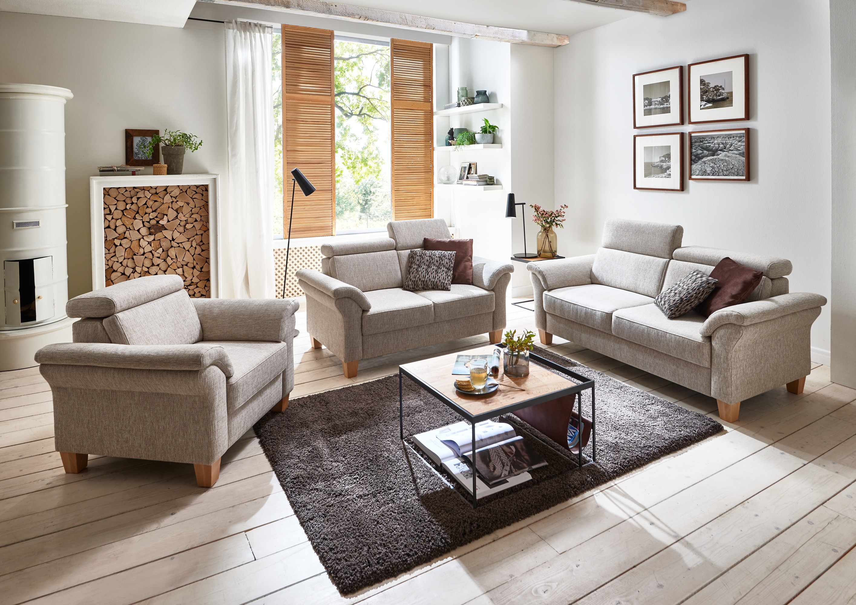 Dreiersofa - moderner Landhausstil auf Beinen